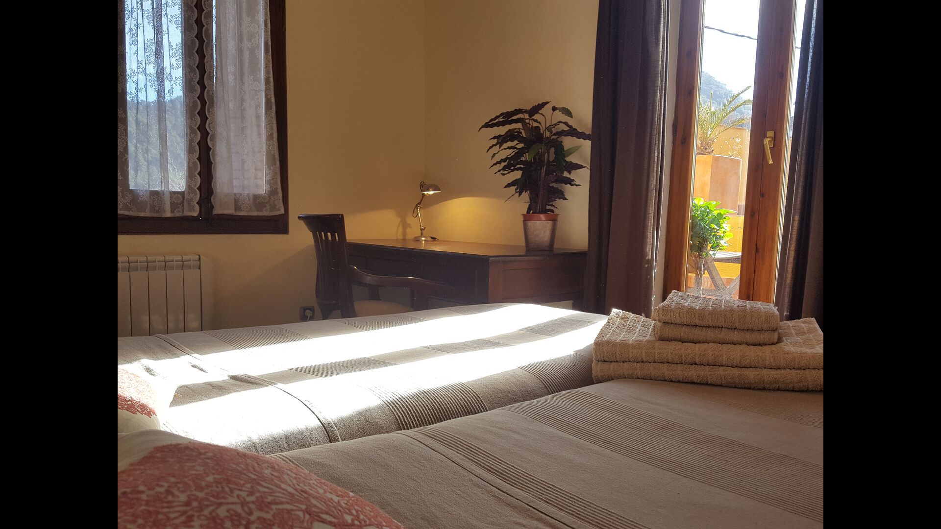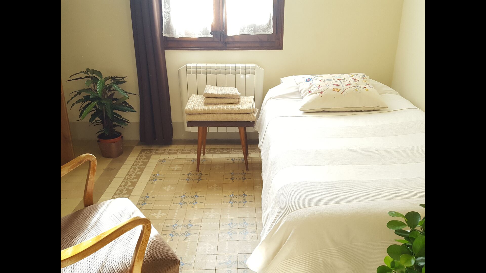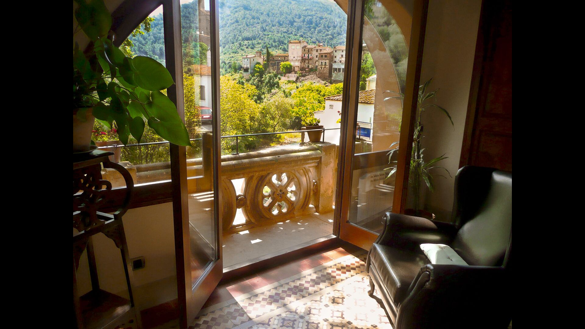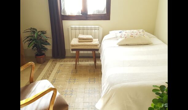 Casa Agentena-Noble 5 + 1P is the apartment on the first floor. It has two double rooms, one with bath, a smaller room, a separate bathroom, a fireplace room with access to the aforementioned balcony and with an unrivaled view of the rest of the village and the castle of Escornalbou, a dining kitchen and access to the garden. All rooms have maintained the original style with the beautiful hydraulic floor tiles and each room has its own flooring.