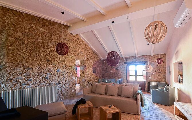 In the garden there are many different spaces and corners, two large porches with barbecue facilities and also a beautiful stone and wood gazebo, all by the pool and jacuzzi, both saltwater. You also find sports equipment such as some bicycles, rackets, net, balls, goal and traditional Catalan bowling. It is also worth mentioning the multitude of routes for hiking, cycling or mountain biking that surround the Mas.