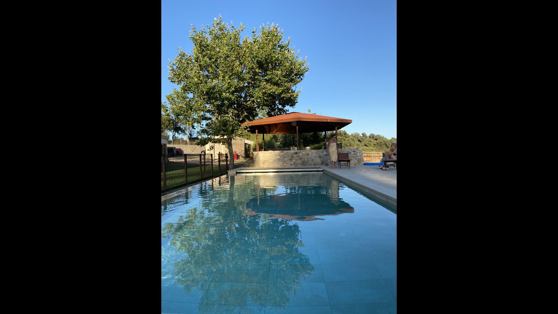 The natural center in the warm Catalan summer is the beautiful pool area. Here you find the swimming pool, of 4 meters x 11 meters, jacuzzi with solarium and a gazebo. Two 2 large porches with gas and/or wood or charcoal BBQ. provide shade and the perfect place for outdoor cooking. There is also a smaller additional porch. The property has private parking and even now with electric chargers, so you can charge the car while relaxing by the pool.