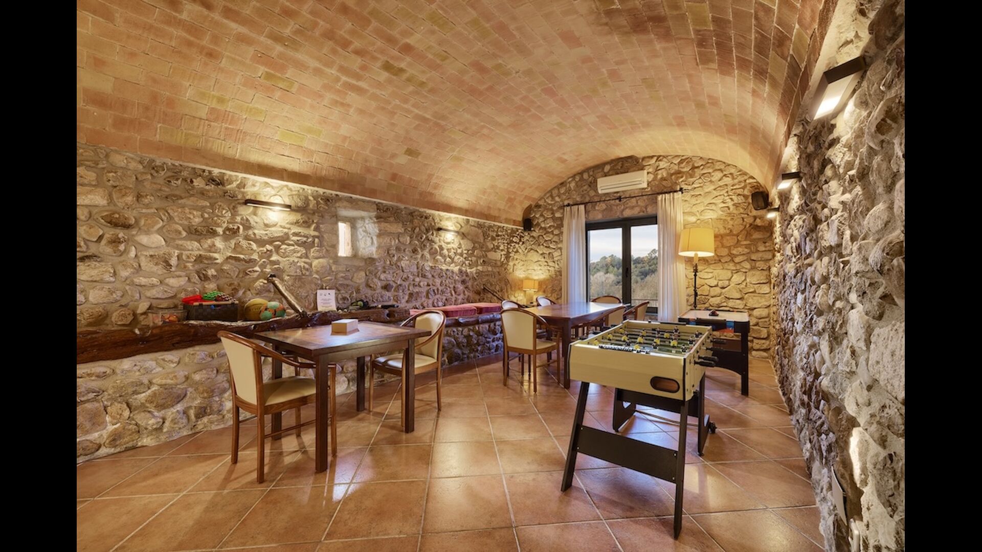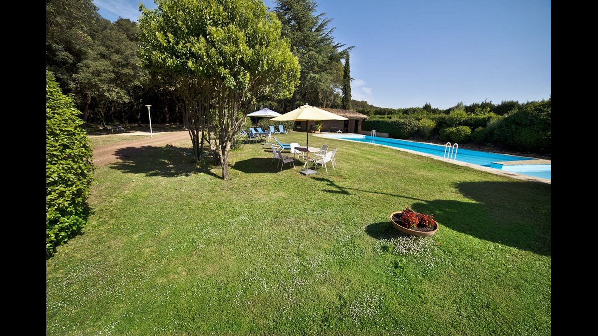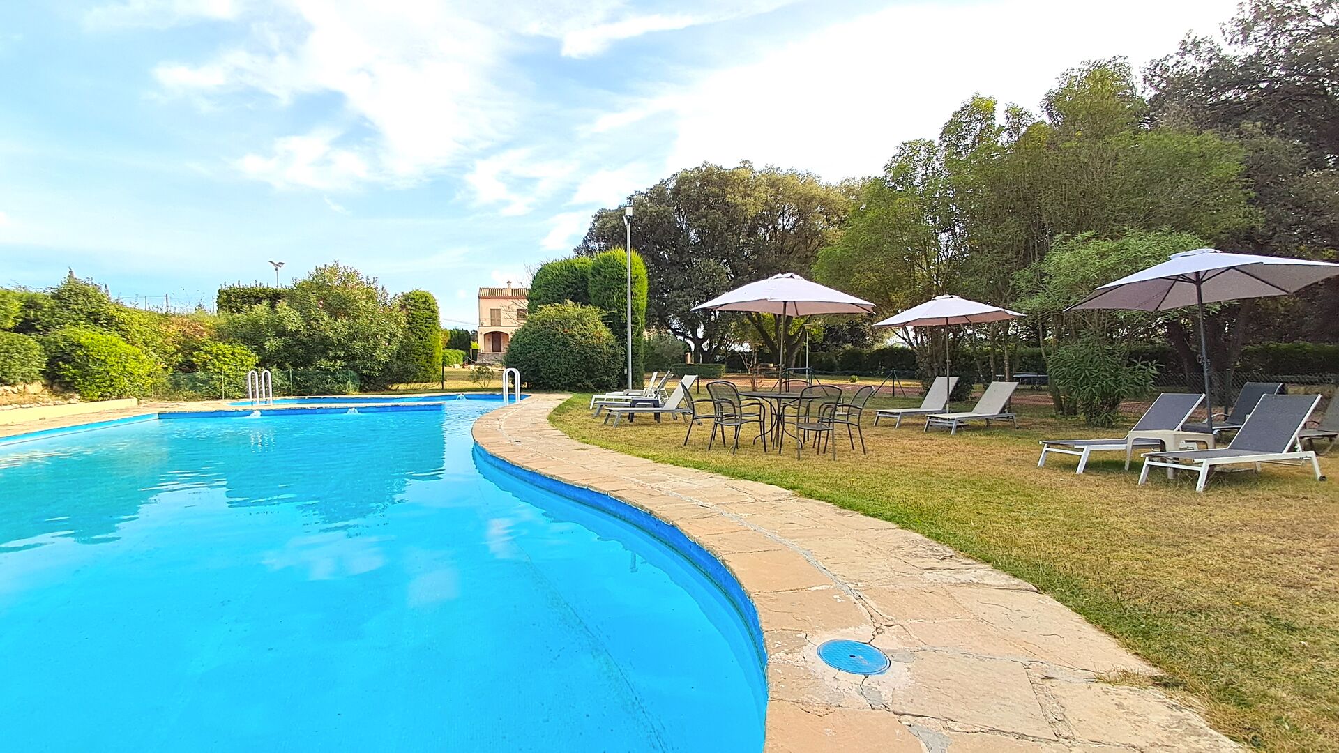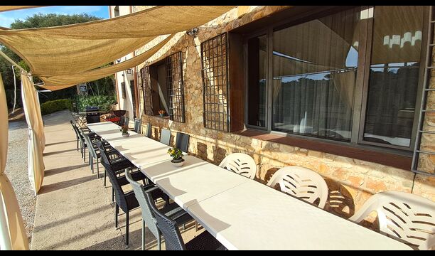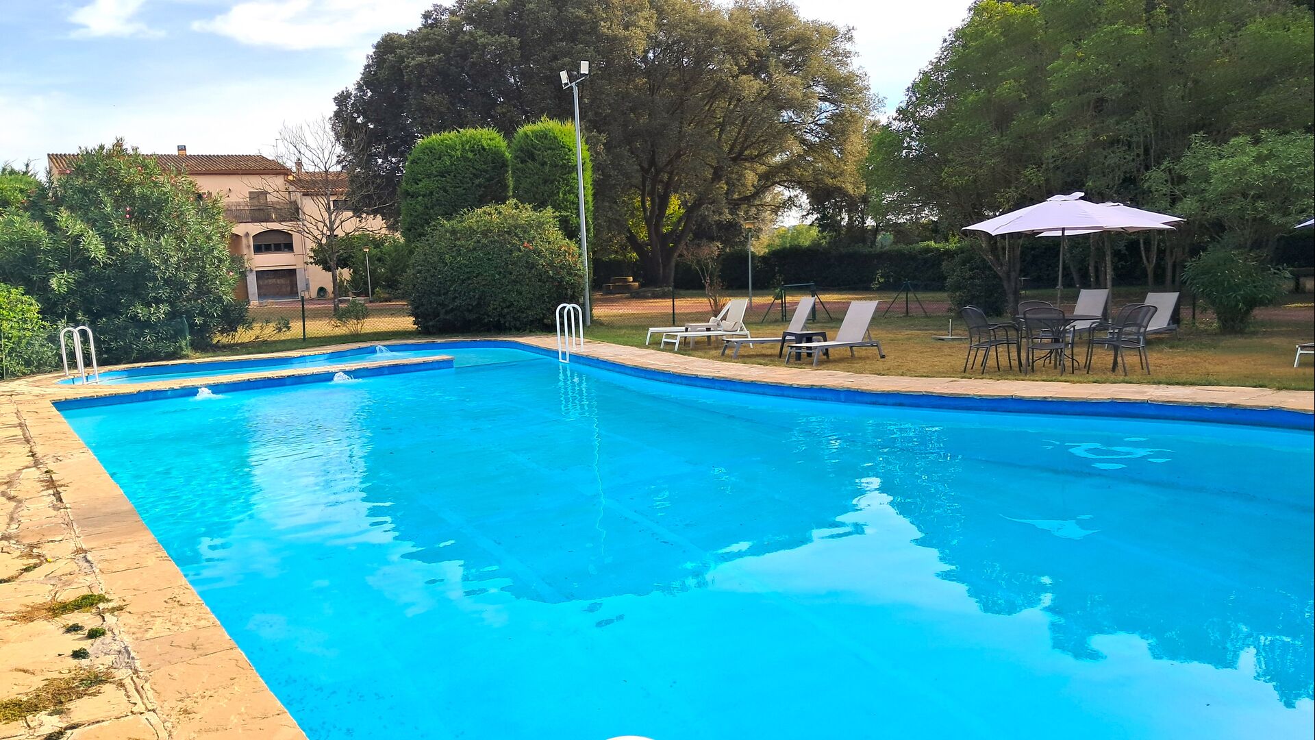 The huge garden covers an area of 8000m2 and has many different outdoor facilities. One of these facilities is the large swimming pool where you can cool down on the many hot days. There are several sun chairs and tables and chairs, where time can be spent relaxing and soaking up some sun rays, whilst easily being able to keep an eye on the children playing around in the pool. The pool area also has two bathrooms, and a fridge located in the pool house. So you will easily be able to grab a cool drink, without having to walk far. There are also many other activitties that can be enjoyed throughout the day in the large garden's facilities such as the private tennis court, the play area for the children with swings in the shadow, table tennis, boules and even a small private football court that has two goals. The garden also has many shaded areas with seating and of course a great BBQ area - all a must when staying in the lovely, warm Catalonia.