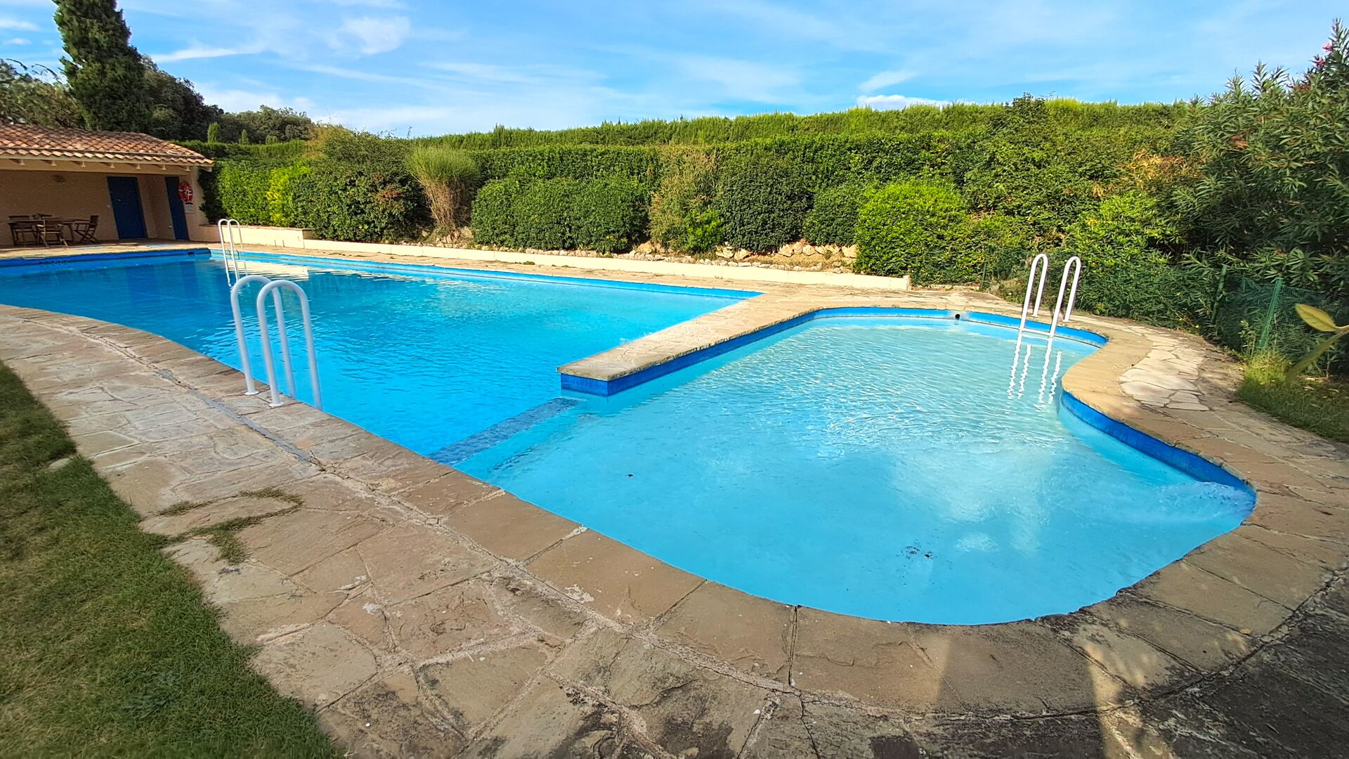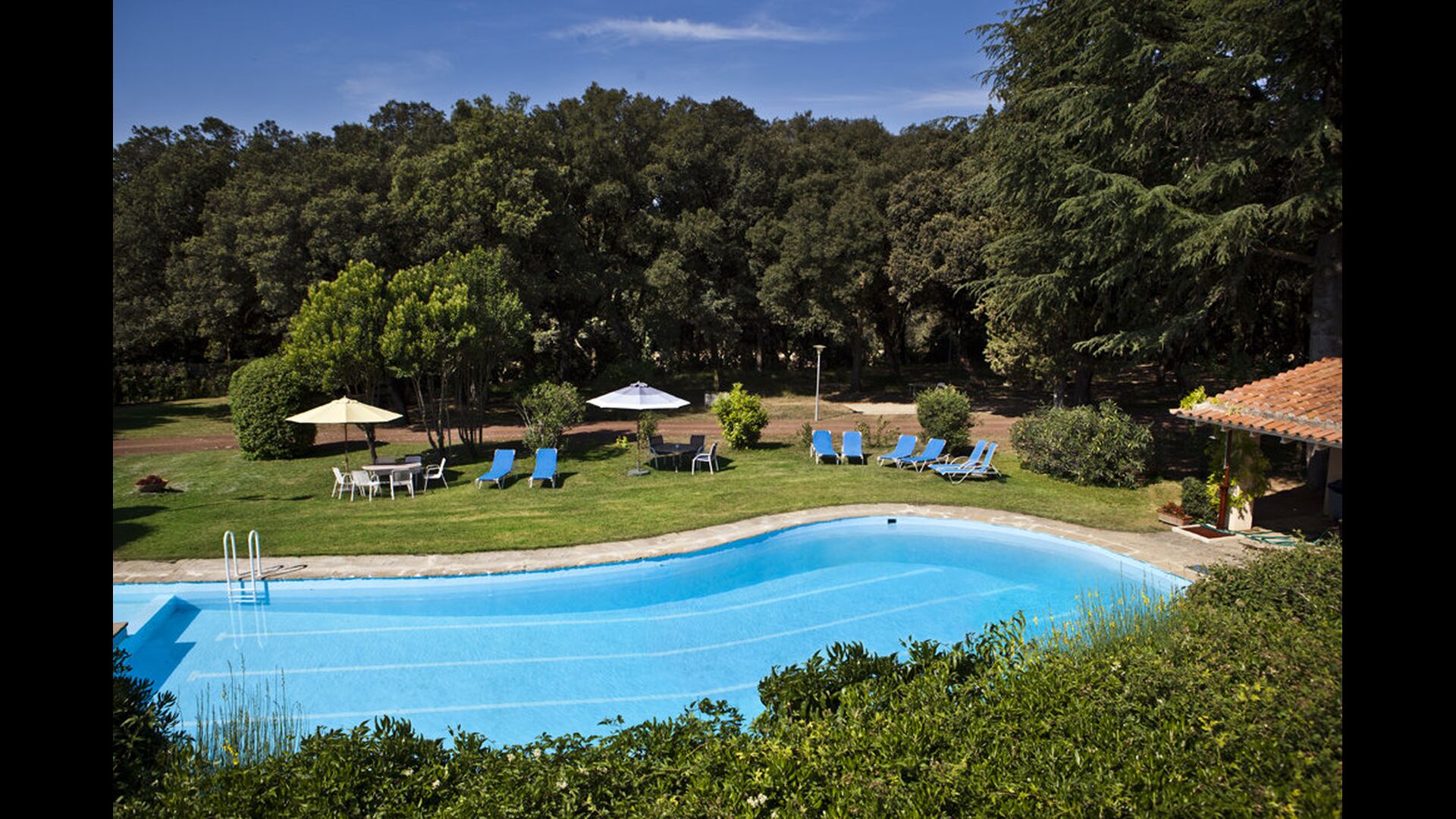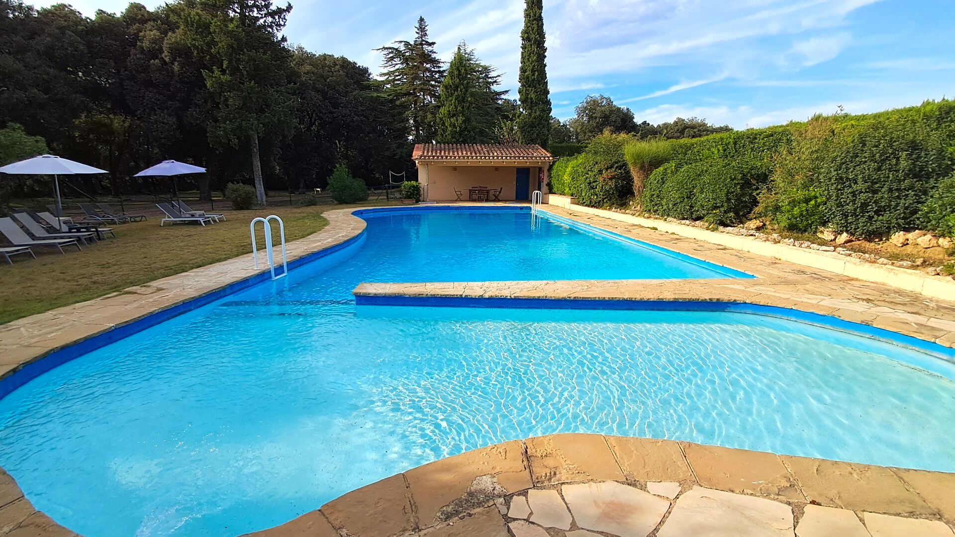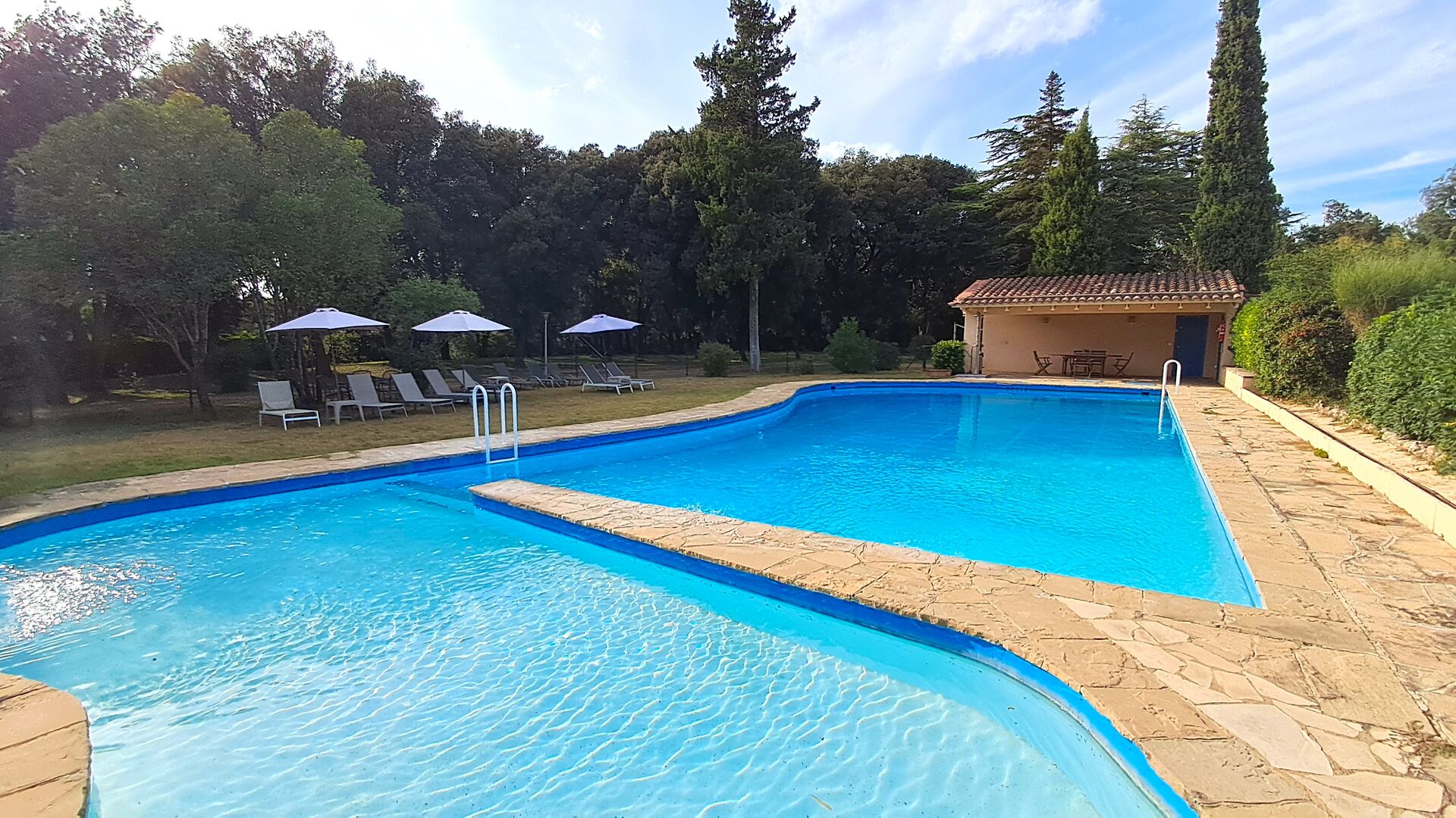 The huge garden covers an area of 8000m2 and has many different outdoor facilities. One of these facilities is the large swimming pool where you can cool down on the many hot days. There are several sun chairs and tables and chairs, where time can be spent relaxing and soaking up some sun rays, whilst easily being able to keep an eye on the children playing around in the pool. The pool area also has two bathrooms, and a fridge located in the pool house. So you will easily be able to grab a cool drink, without having to walk far. There are also many other activitties that can be enjoyed throughout the day in the large garden's facilities such as the private tennis court, the play area for the children with swings in the shadow, table tennis, boules and even a small private football court that has two goals. The garden also has many shaded areas with seating and of course a great BBQ area - all a must when staying in the lovely, warm Catalonia.