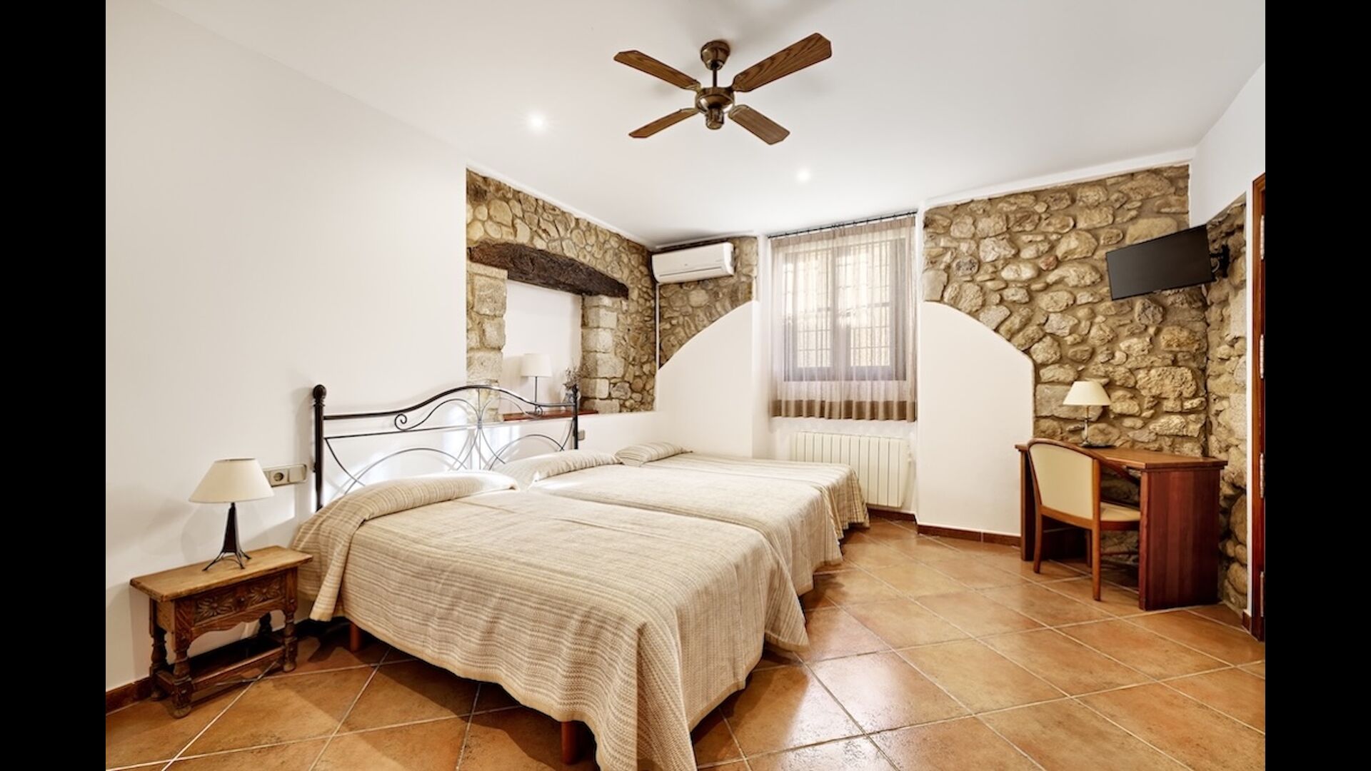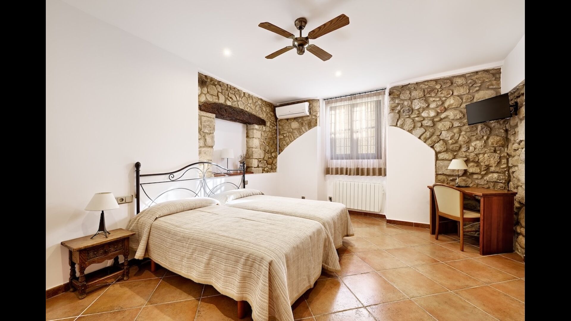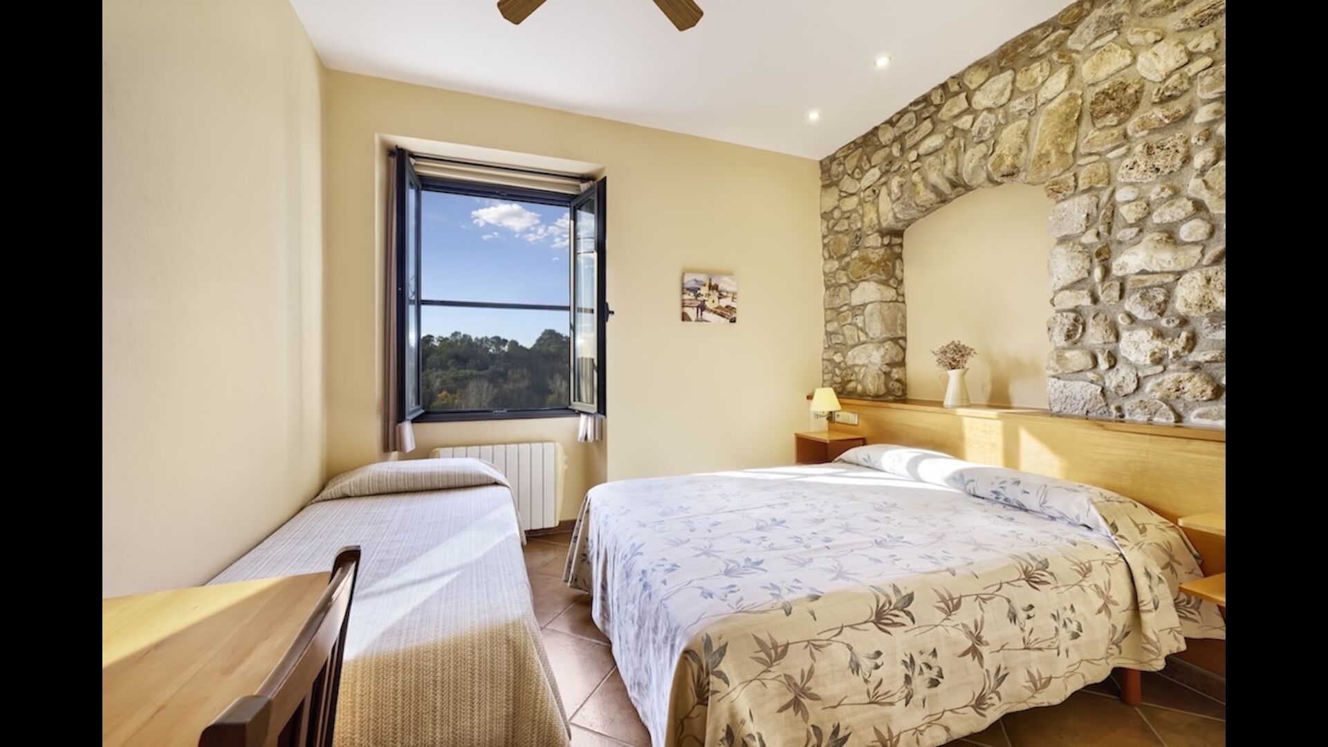 Isabel and her family try to improve things continuously during the many years running the Casa Joaquim. The garden and exterior facilities are from the 60´s, like the tennis court, pool and garden furniture. Every year they repair it and they start to begin to invest to change and improve it (Covid-19 has given a setback due to forced lock-down with no income). It has a lot of charm, but some parts might be a bit worn.