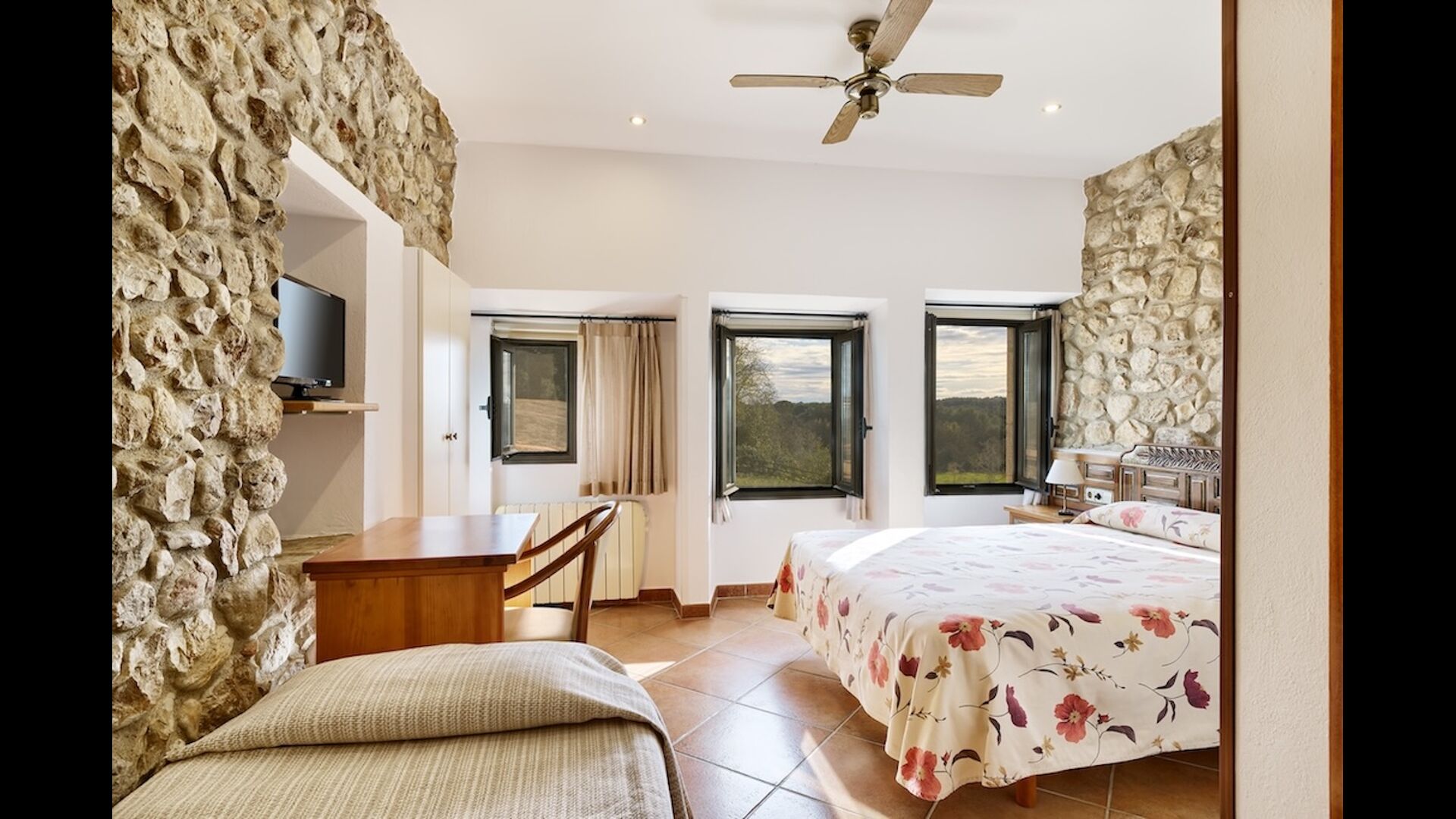 Casa Joaquim is a grand country home situated below the gaze of the Canigó Mountain; hence there is a breathtaking view from the garden and from all of the many rooms. There are 8 spacious bedrooms which combine traditional and modern design. All of the bedrooms have a stunning view along with bathrooms ensuites, aircondition and a television.