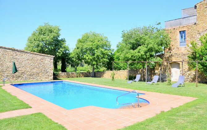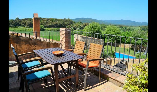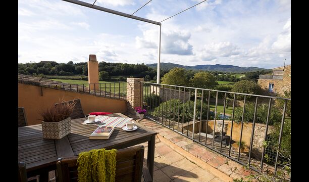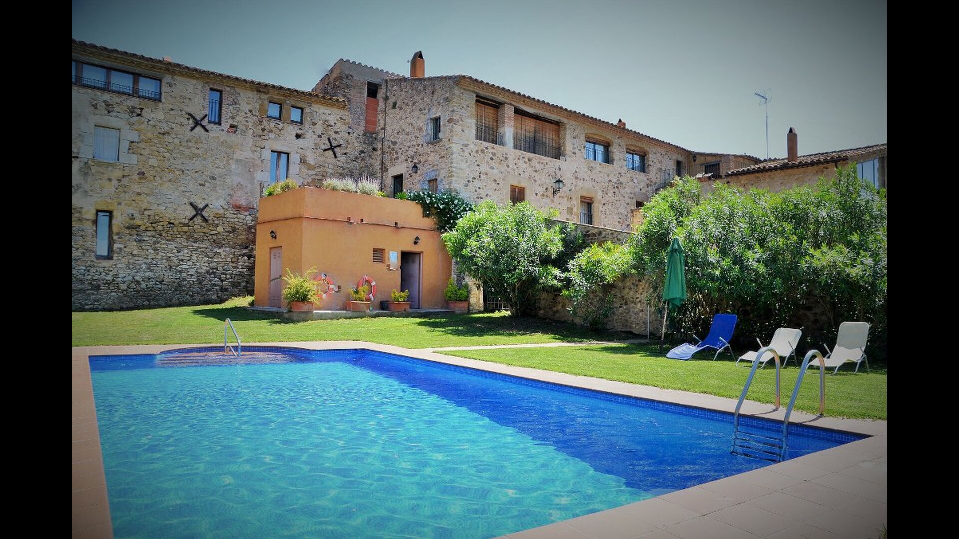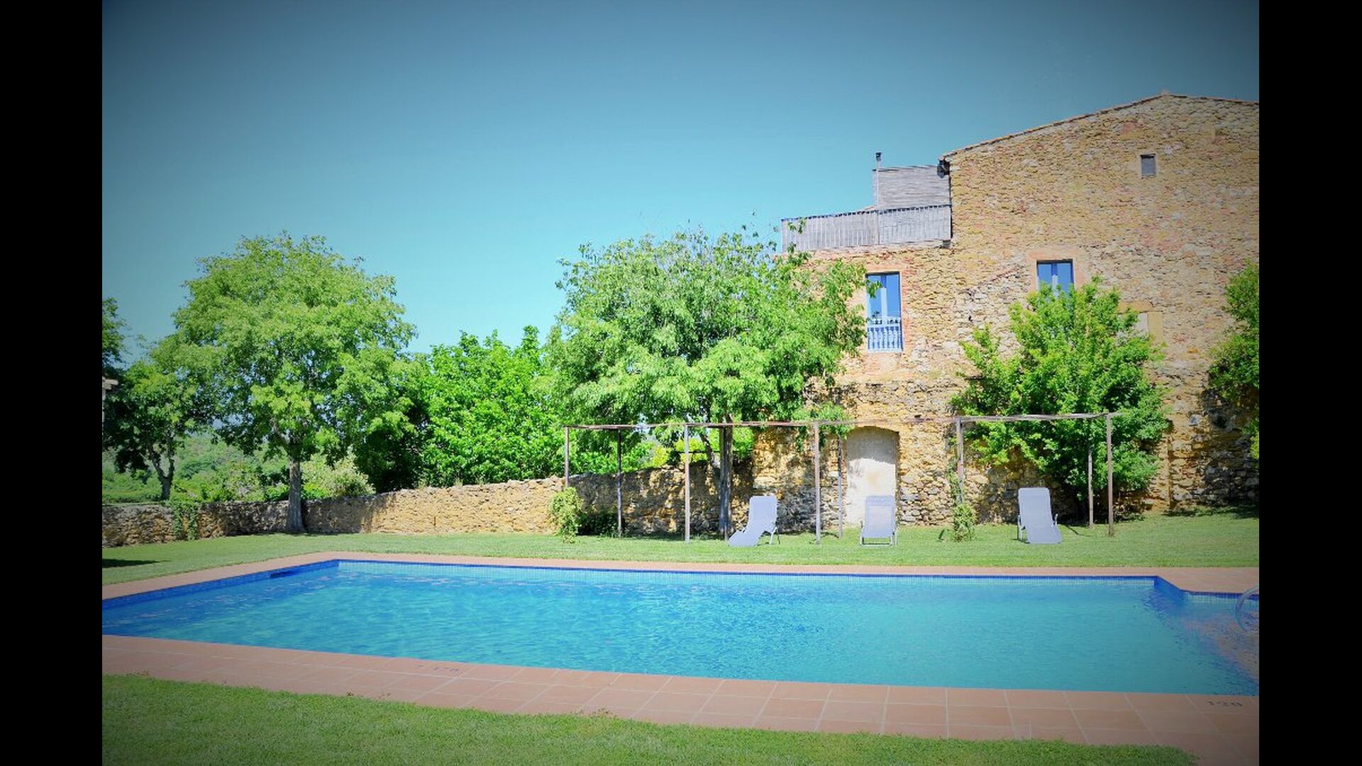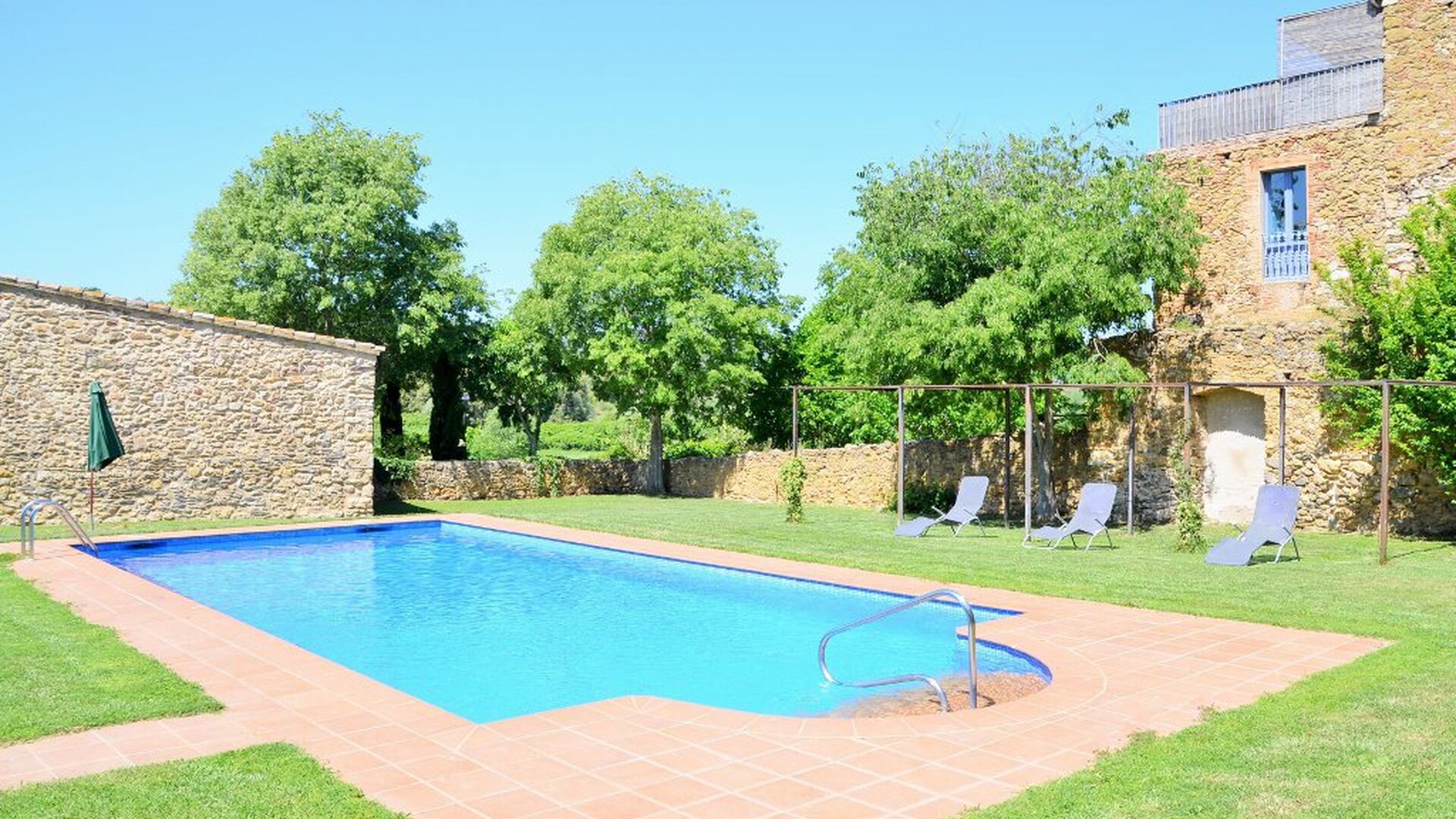 The house has a very large garden with a huge swimming pool, which is secured with a fence and with deck chairs so you can relax, only to be interrupted by a refreshing swim. In the rest of the garden, there are several patio areas and orange and lemon trees provide both shade and a touch of the Mediterranean atmosphere. In the village within walking distance, there are a few restaurants and a shop with a little of everything. Every day at 12:00, a bread van comes to the square, so you can buy fresh bread for lunch. There are larger supermarkets in La Bisbal, which is renowned for its pottery. This town is just 5 km from the house.