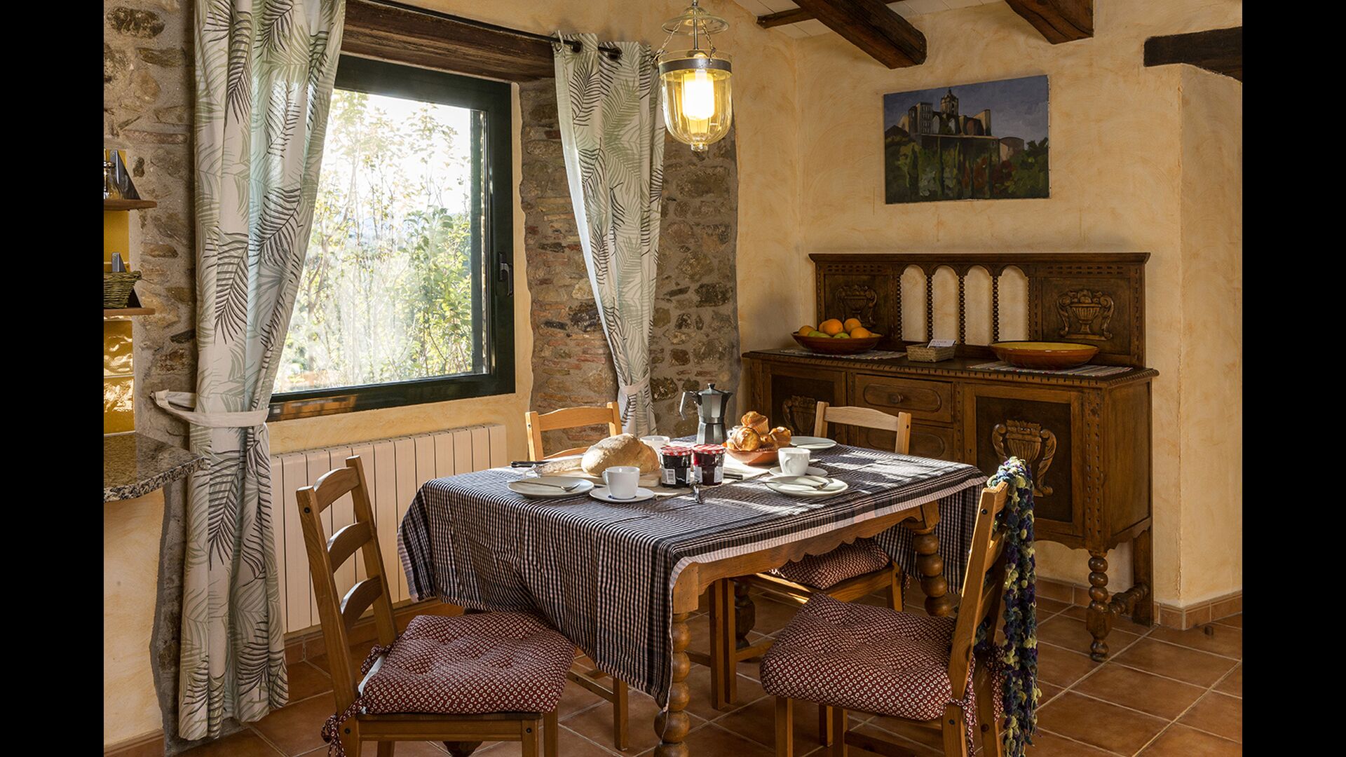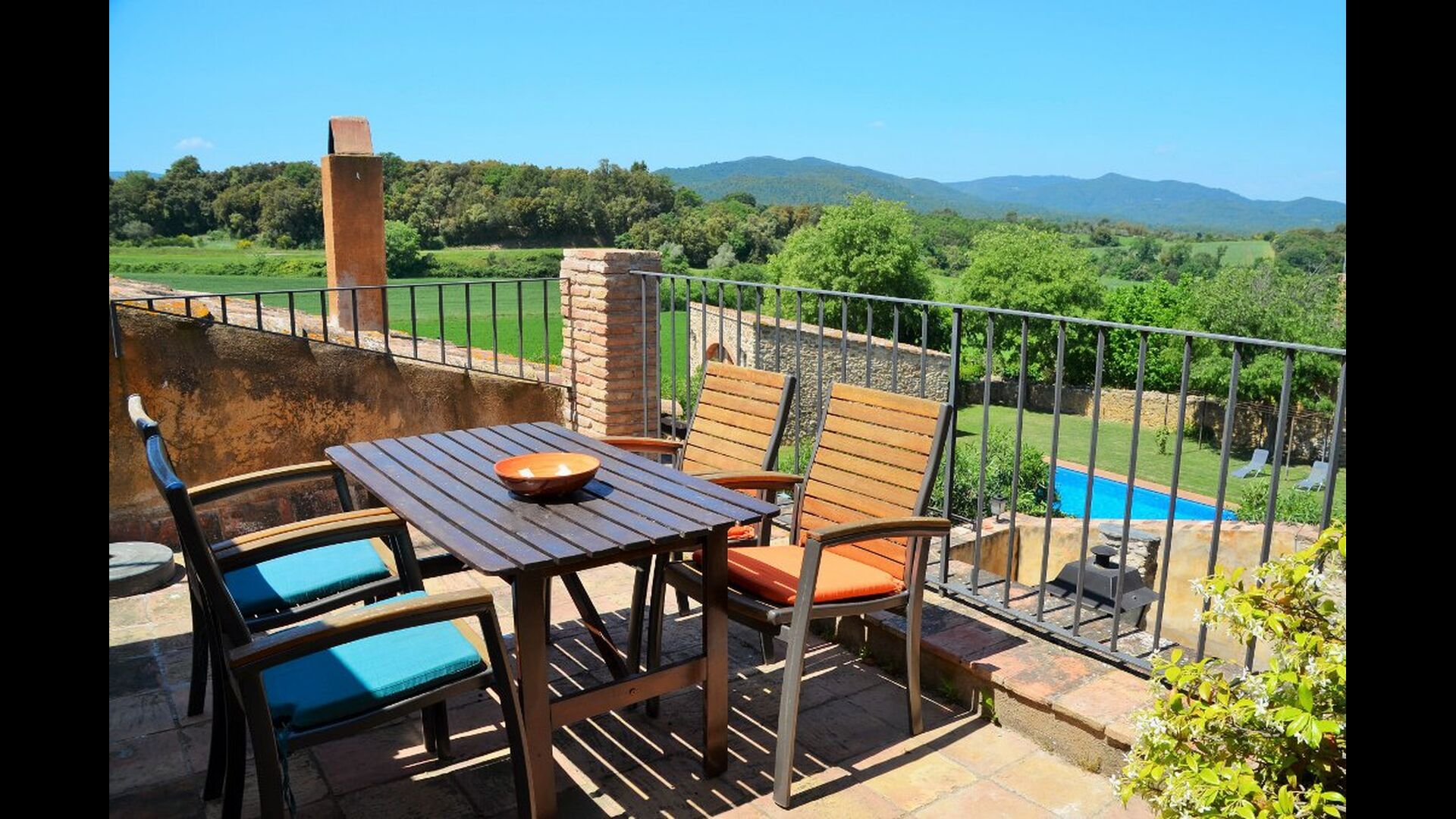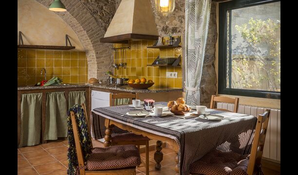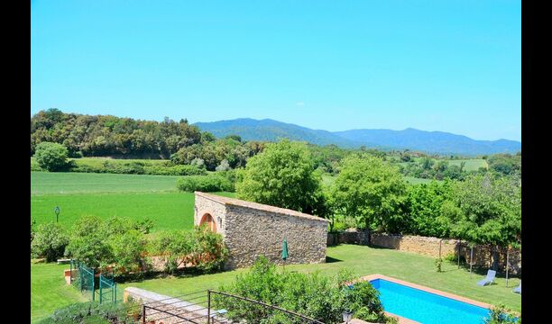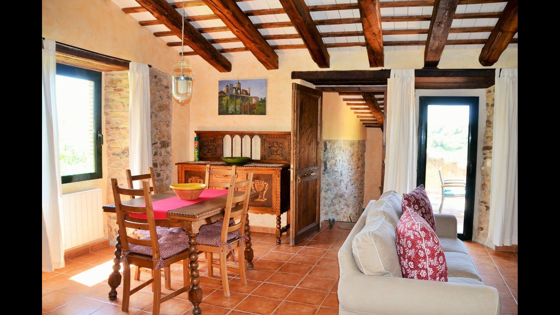 The house has a very large garden with a huge swimming pool, which is secured with a fence and with deck chairs so you can relax, only to be interrupted by a refreshing swim. In the rest of the garden, there are several patio areas and orange and lemon trees provide both shade and a touch of the Mediterranean atmosphere. In the village within walking distance, there are a few restaurants and a shop with a little of everything. Every day at 12:00, a bread van comes to the square, so you can buy fresh bread for lunch. There are larger supermarkets in La Bisbal, which is renowned for its pottery. This town is just 5 km from the house.