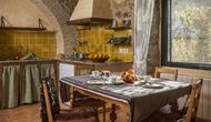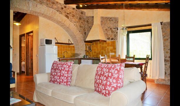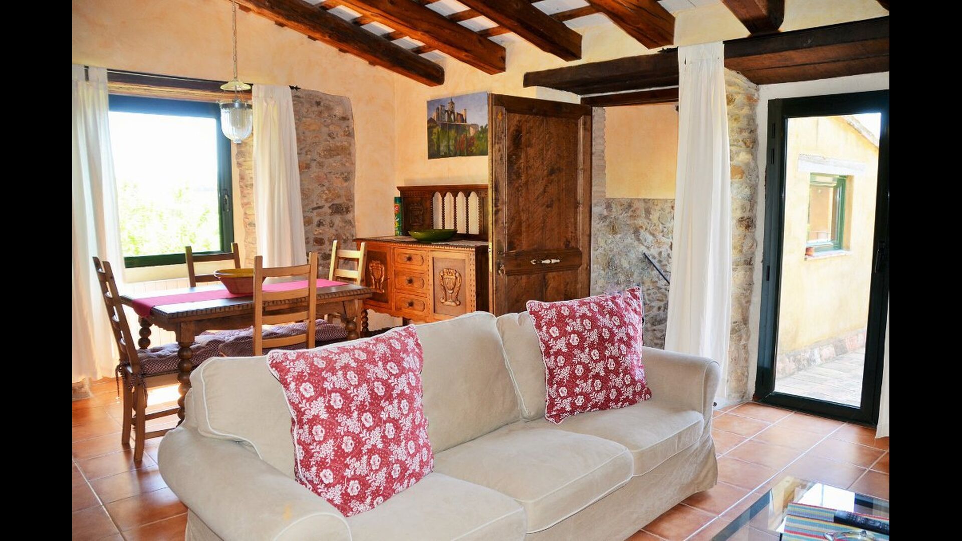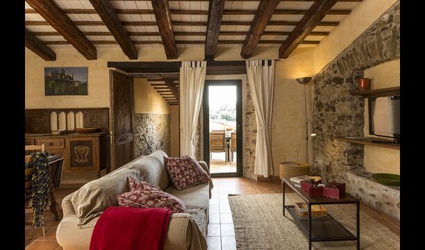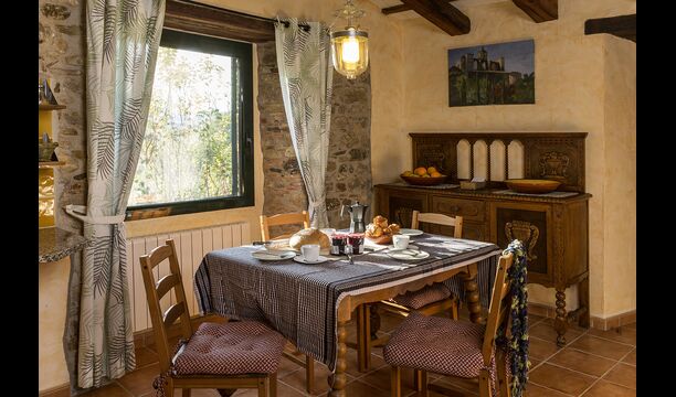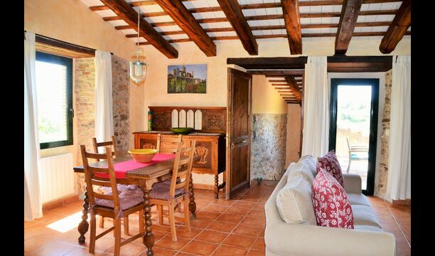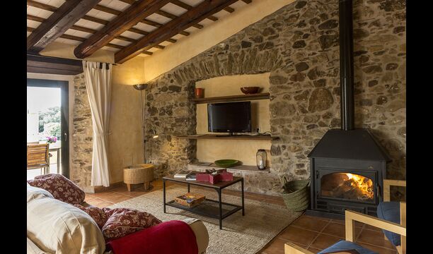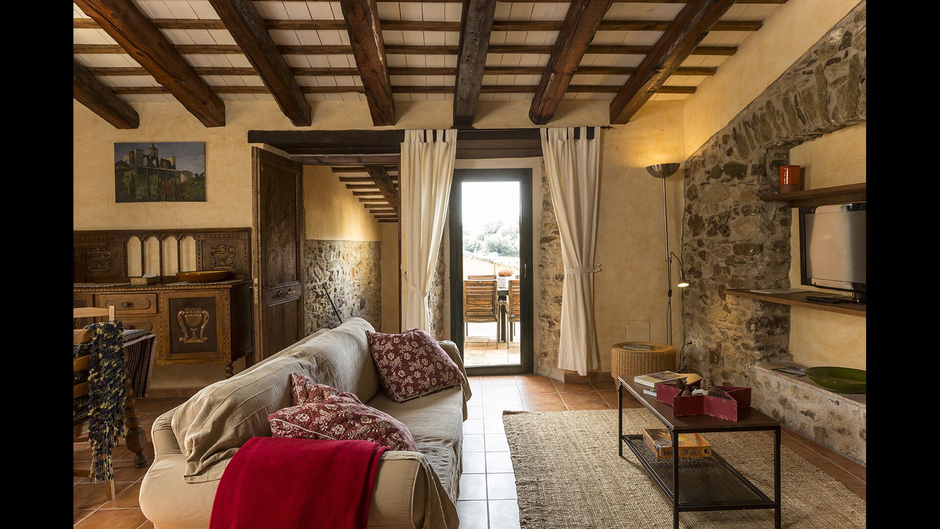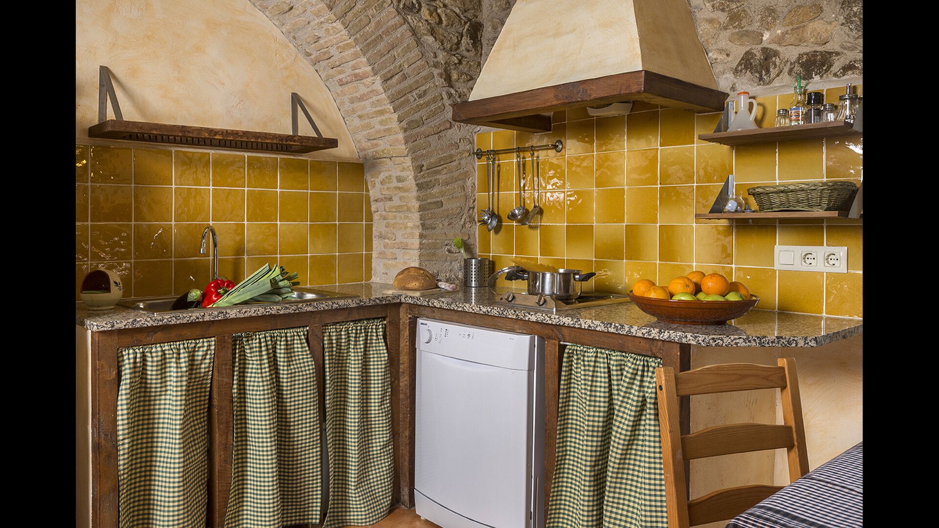 The house has a very large garden with a huge swimming pool, which is secured with a fence and with deck chairs so you can relax, only to be interrupted by a refreshing swim. In the rest of the garden, there are several patio areas and orange and lemon trees provide both shade and a touch of the Mediterranean atmosphere. In the village within walking distance, there are a few restaurants and a shop with a little of everything. Every day at 12:00, a bread van comes to the square, so you can buy fresh bread for lunch. There are larger supermarkets in La Bisbal, which is renowned for its pottery. This town is just 5 km from the house.