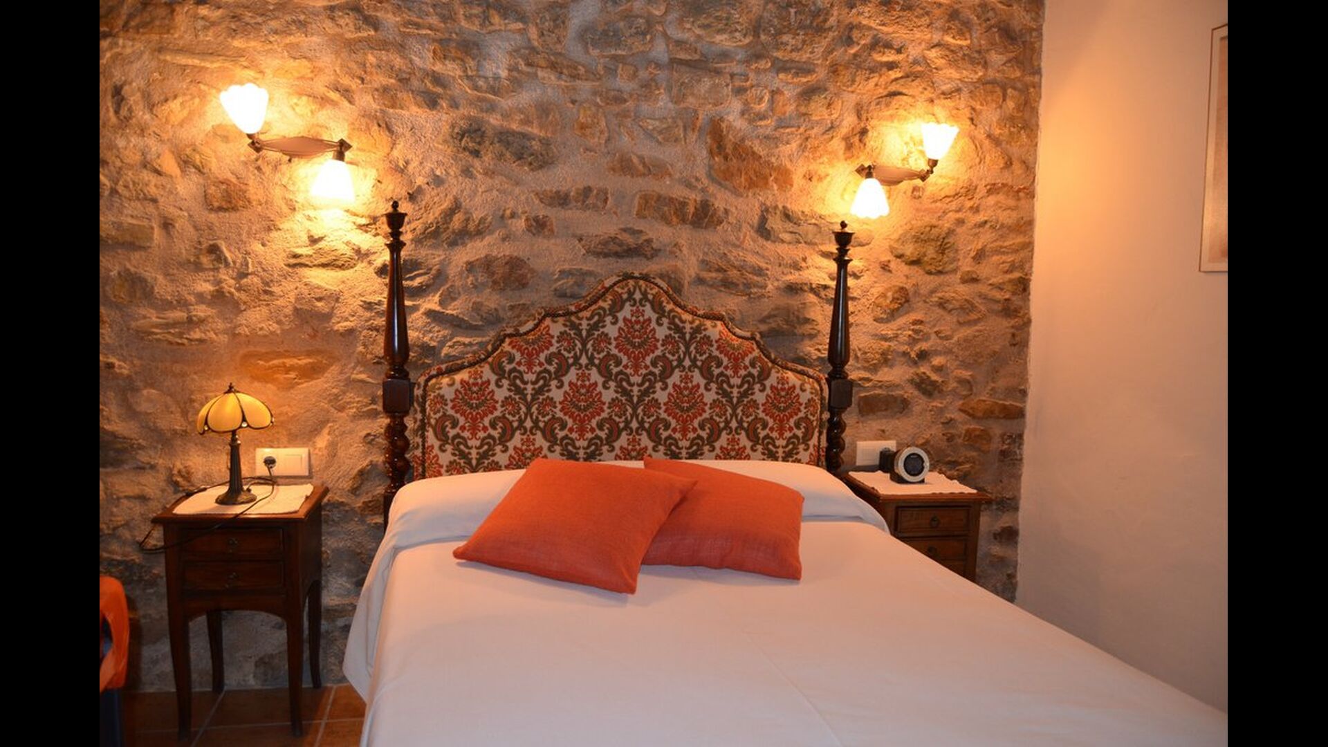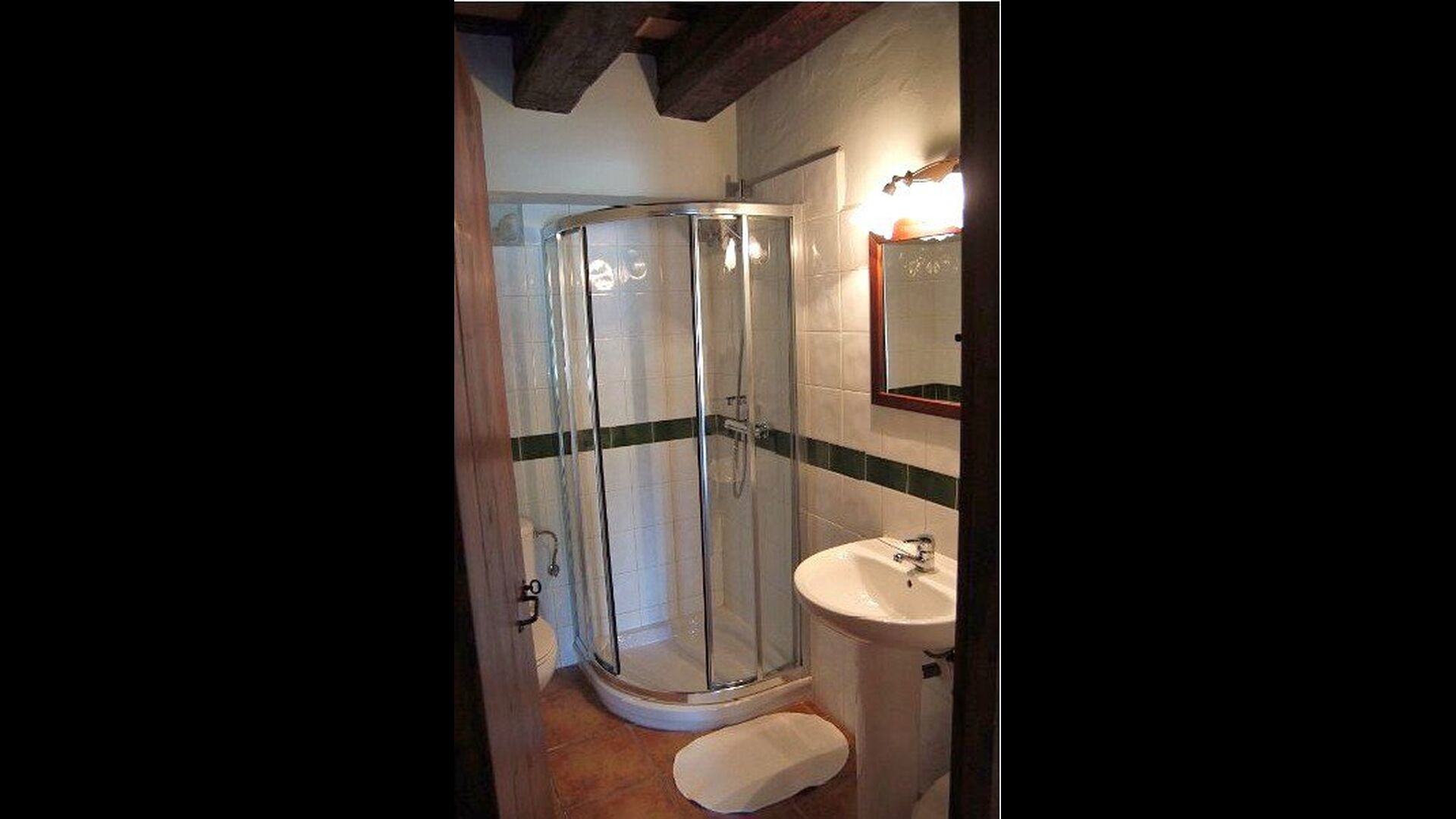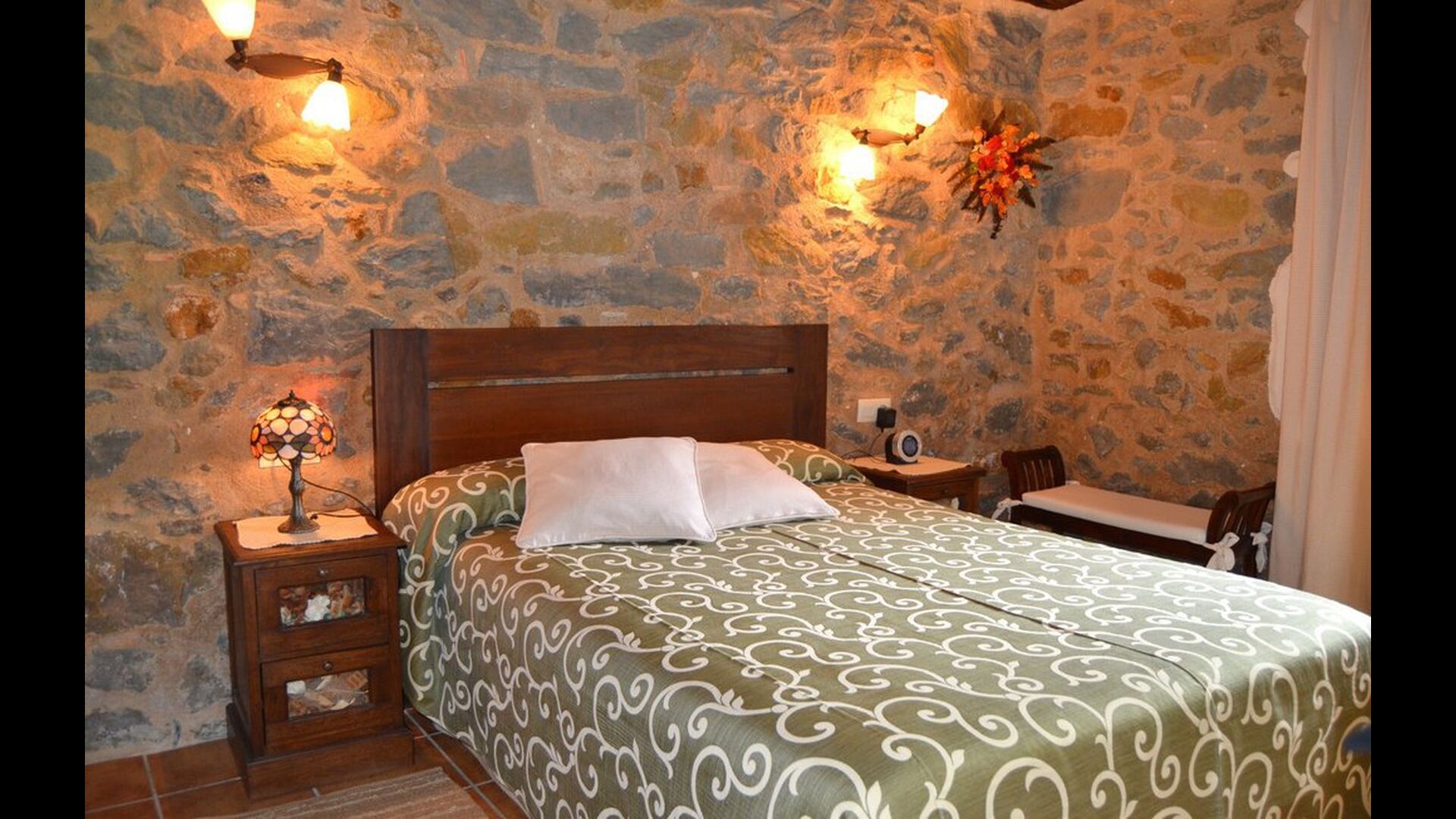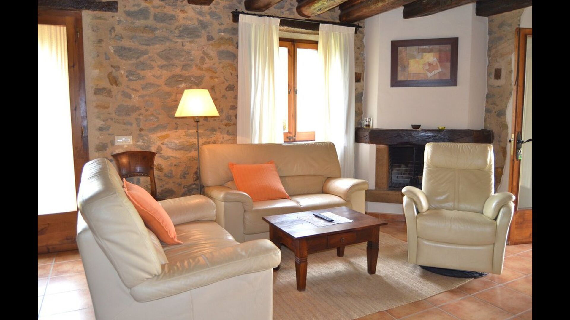Casa Vermellas-Verde is a ground floor apartment. It has a private cosy covered terrace in front of the entrance. One enter the common room, where there is a sofa corner with leather furniture facing the flat-screen TV and a dining table of massive woods and matching chairs. Next, the kitchen with ceramic hotplates, oven, dishwasher, fridge, microwave and toaster. There are 2 double bedrooms, one of them with double bed and one with two single beds. For families with small children, there is a cot and a high chair available. This authentic and high quality rural apartment is as well equipped with WIFI internet.