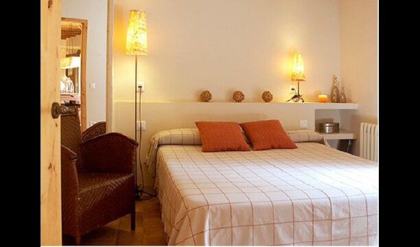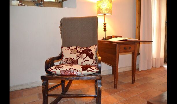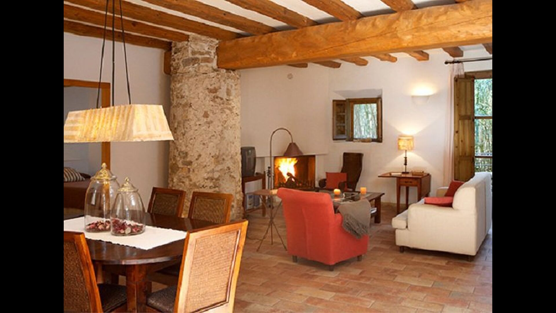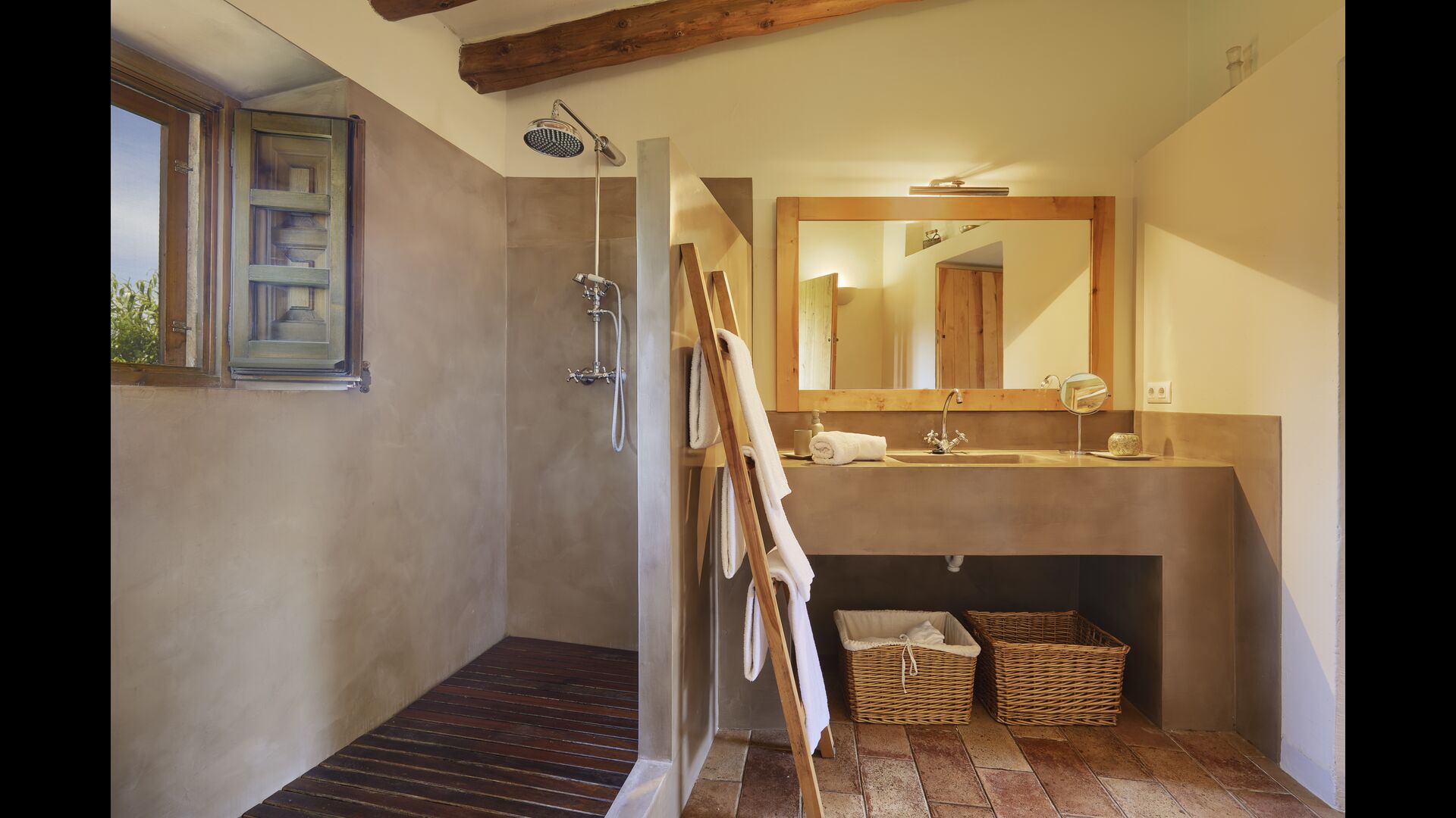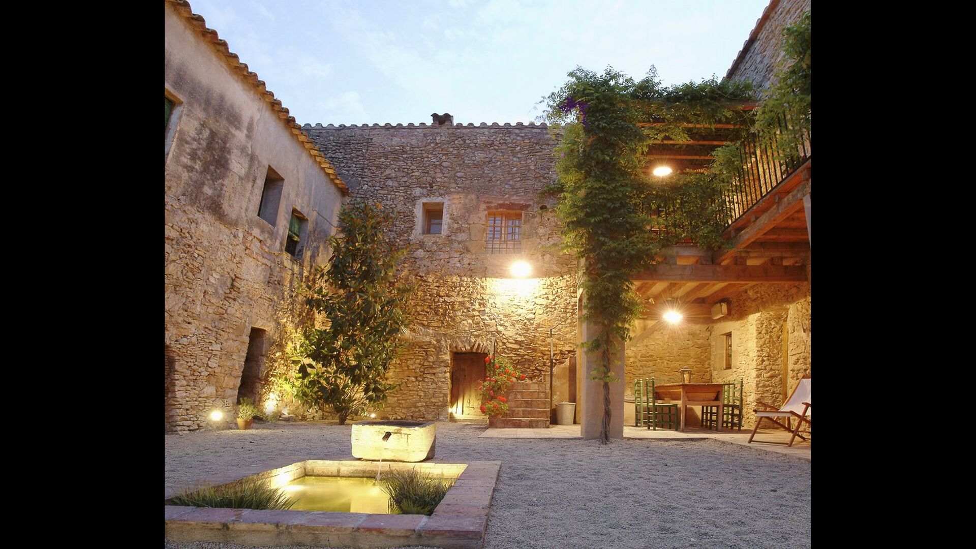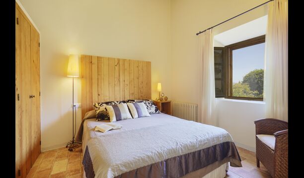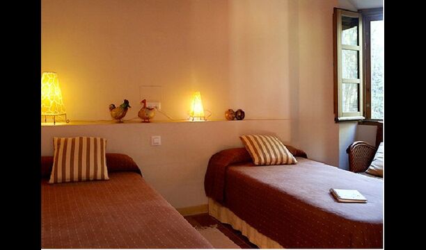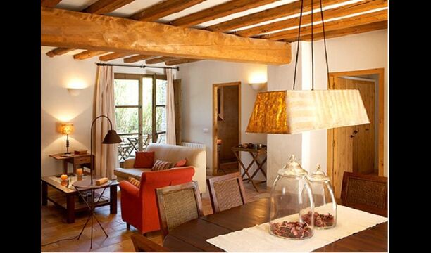 This first floor apartment is located on the lower right side of the large courtyard you are met by after the large wooden gate. The courtyard and the houses are built of stone, which gives a rustic and authentic atmosphere. This apartment has a cosy covered patio in the courtyard, where it is obvious to enjoy the homemade meals during the warm Catalan evenings. In the daytime, it is also a perfect place to relax, as there is a cooling shade.