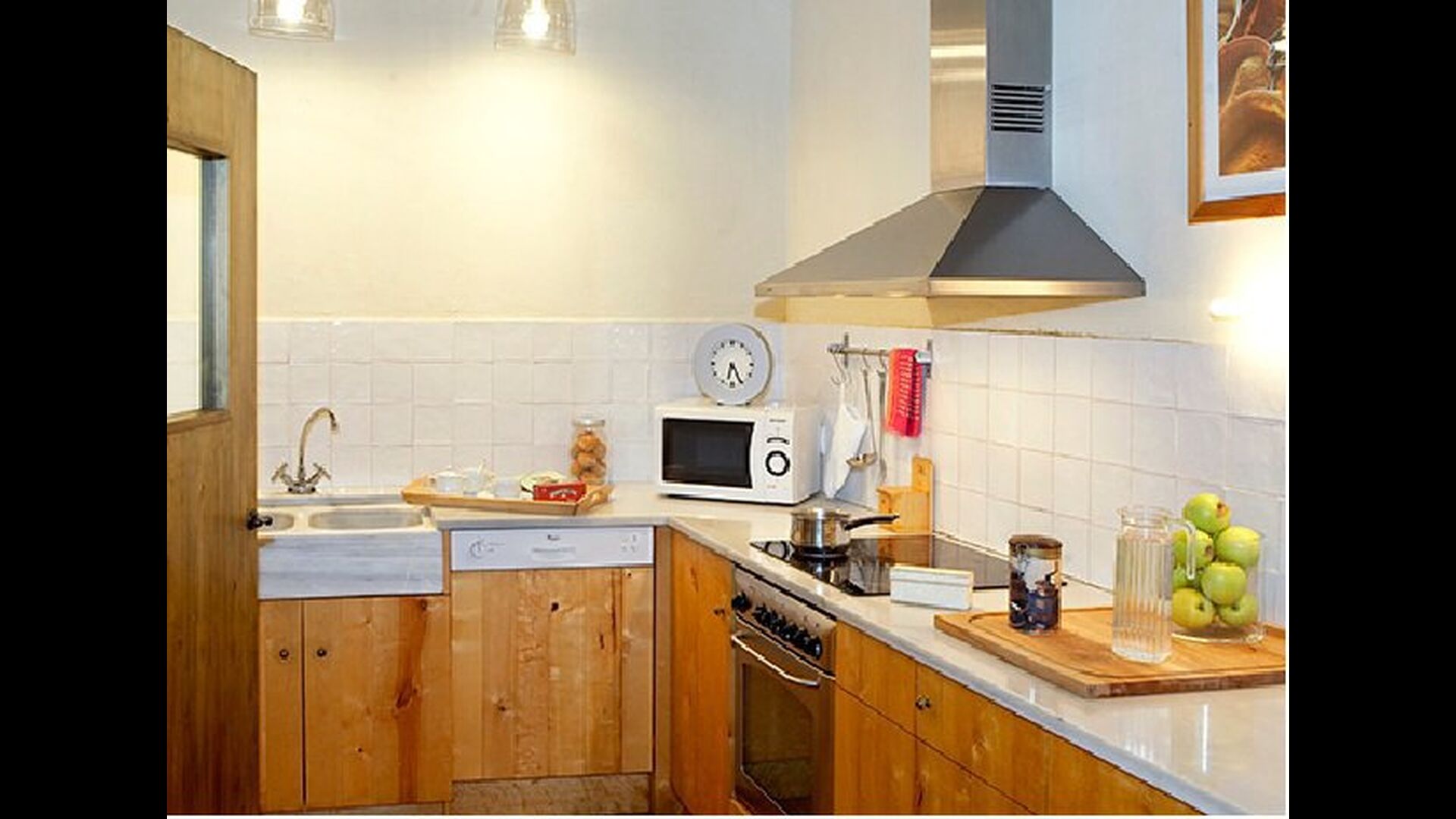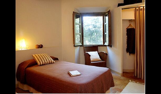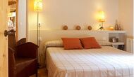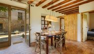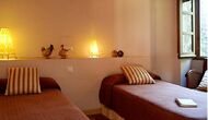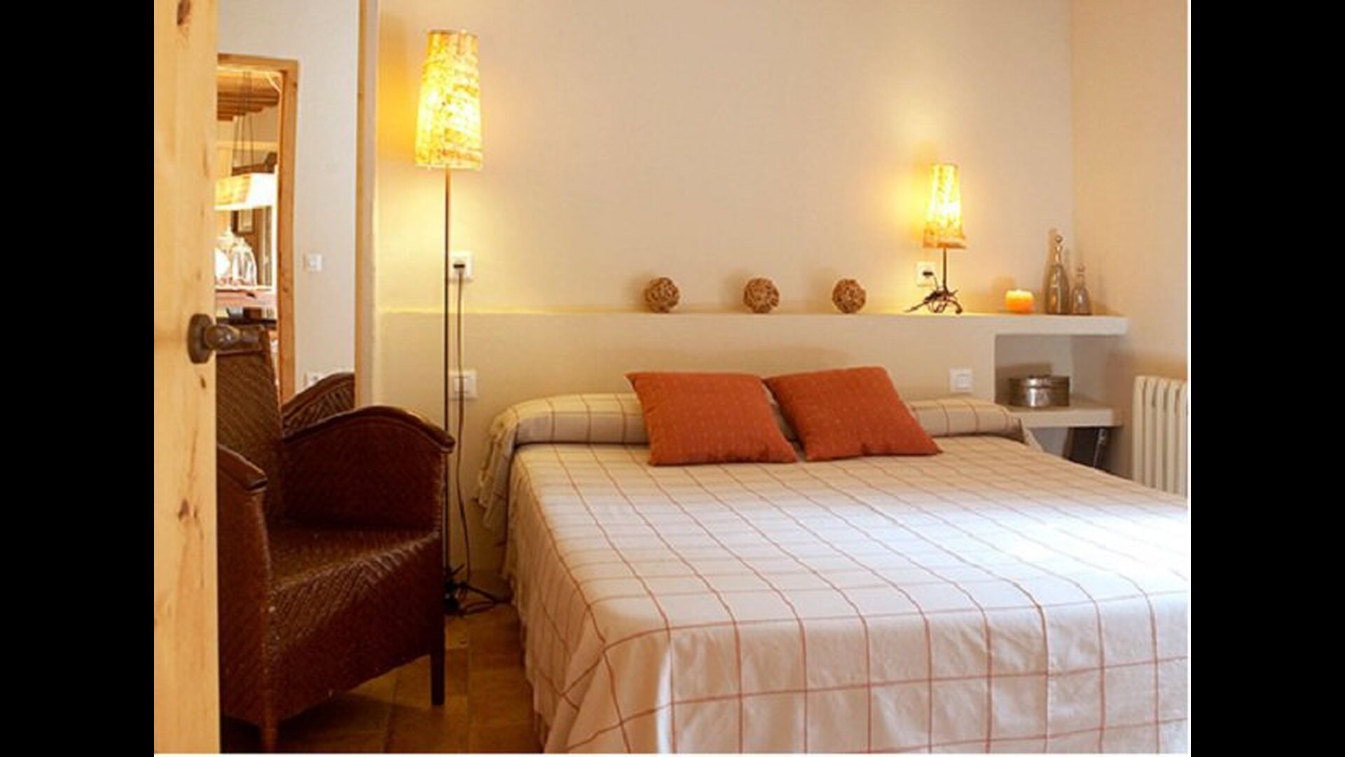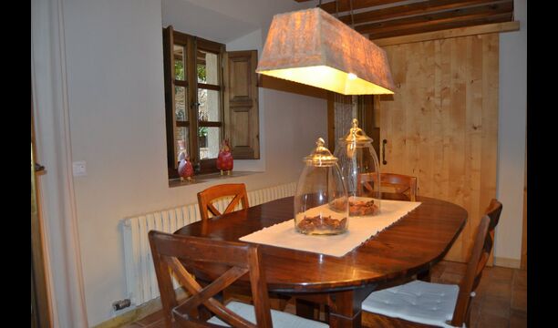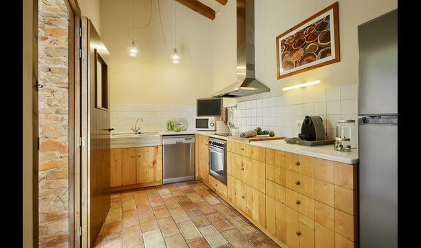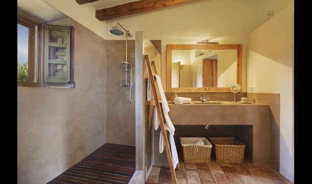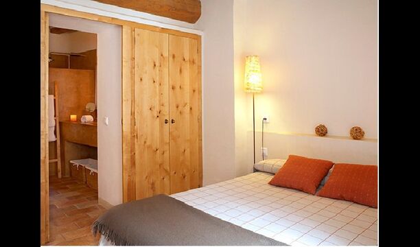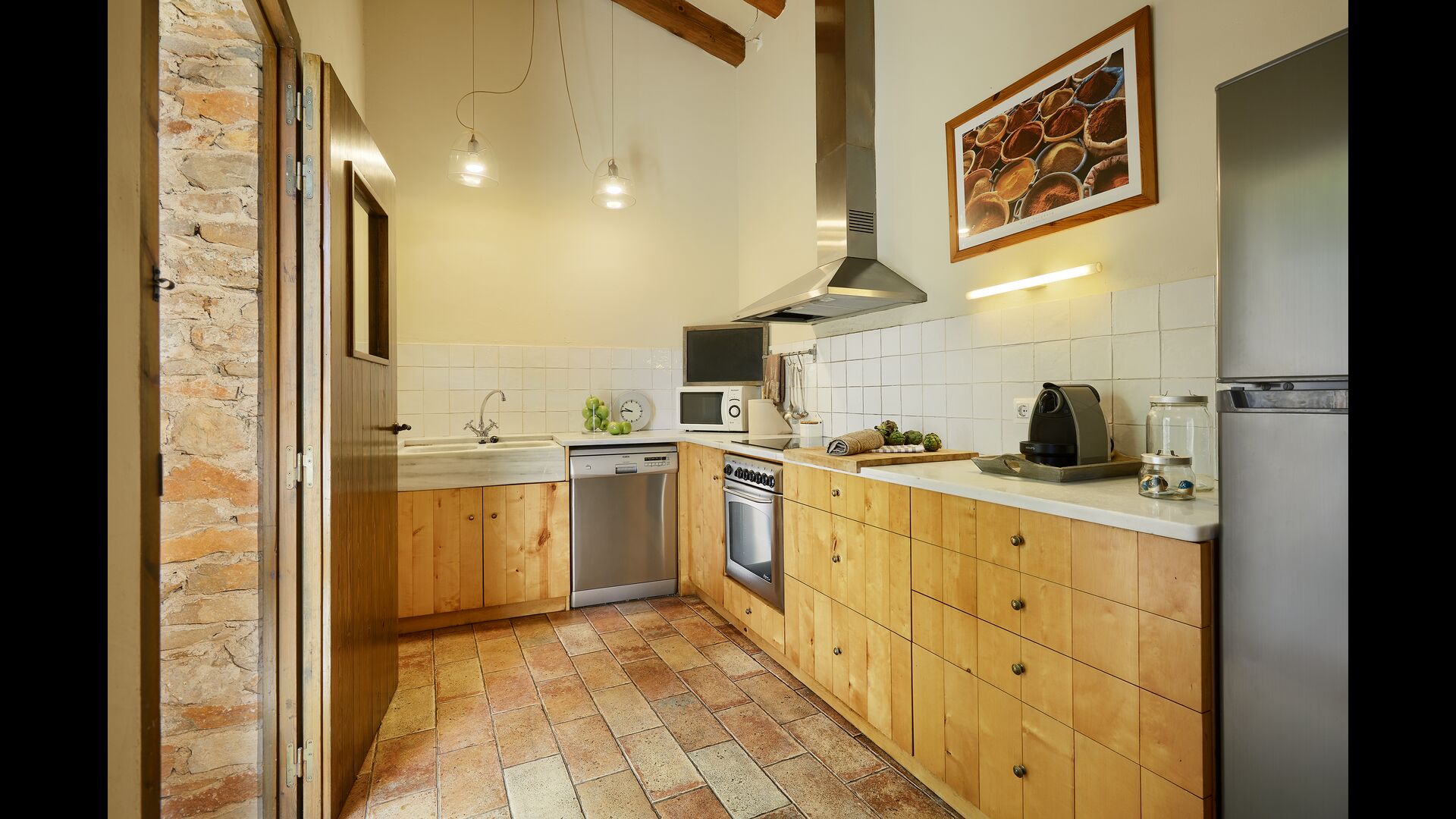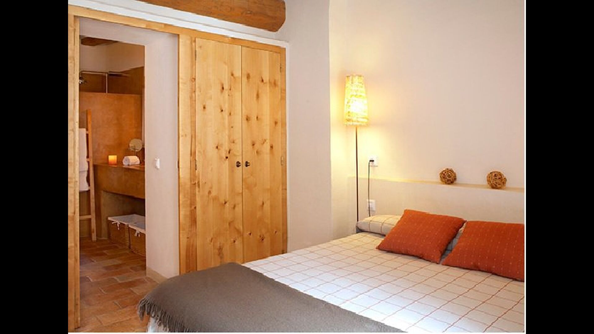 This first floor apartment is located on the lower right side of the large courtyard you are met by after the large wooden gate. The courtyard and the houses are built of stone, which gives a rustic and authentic atmosphere. This apartment has a cosy covered patio in the courtyard, where it is obvious to enjoy the homemade meals during the warm Catalan evenings. In the daytime, it is also a perfect place to relax, as there is a cooling shade.