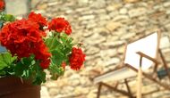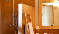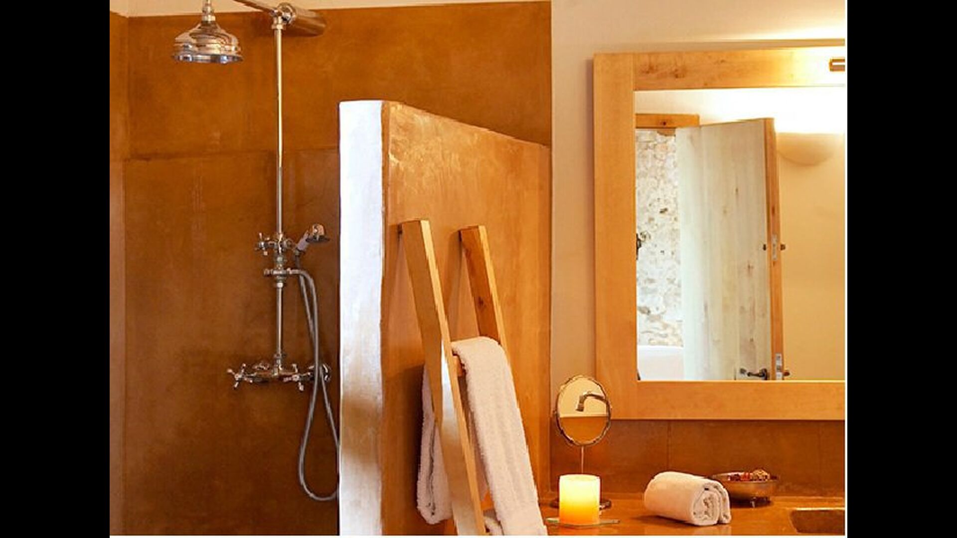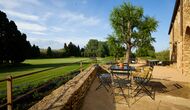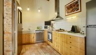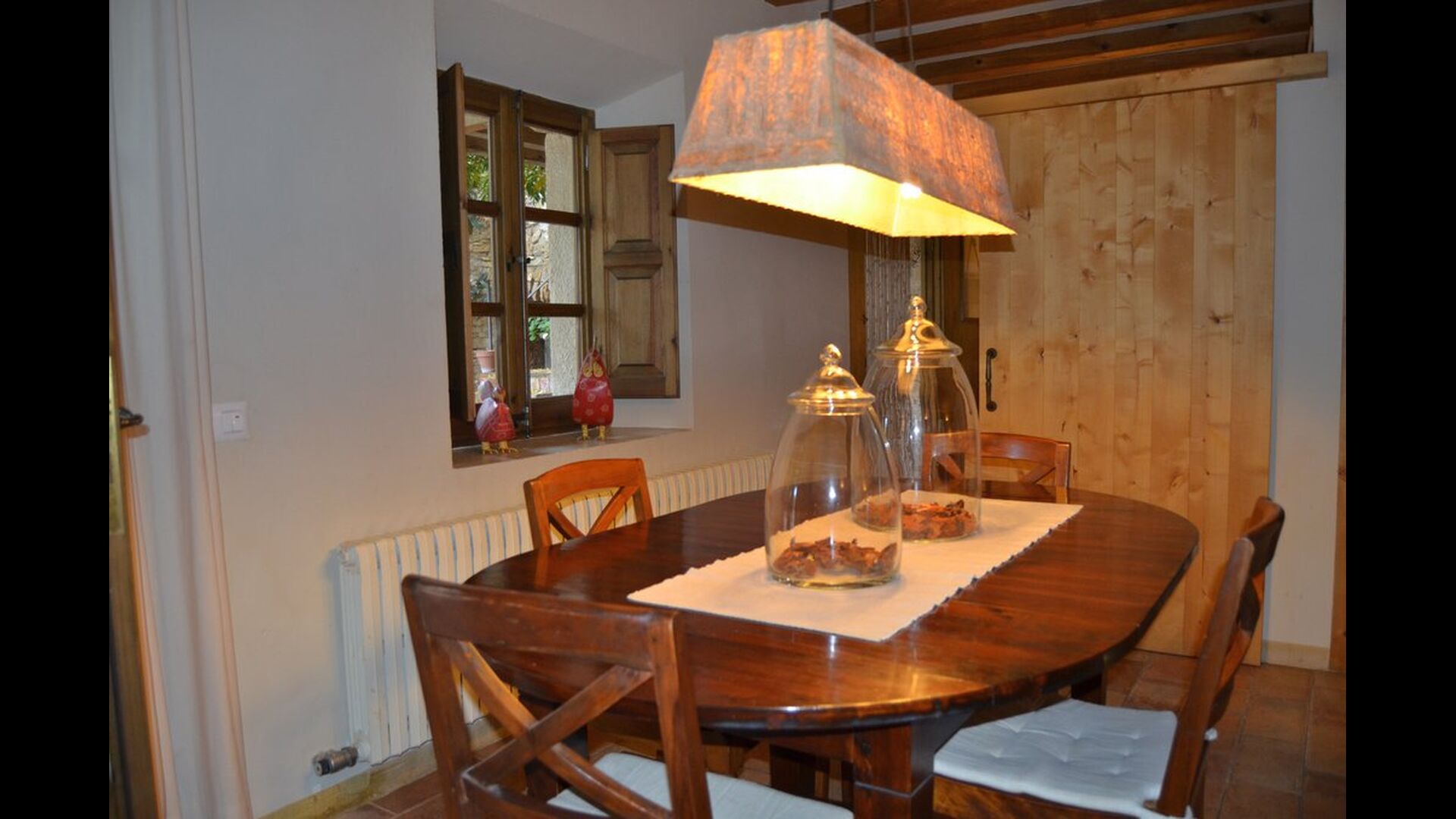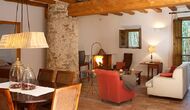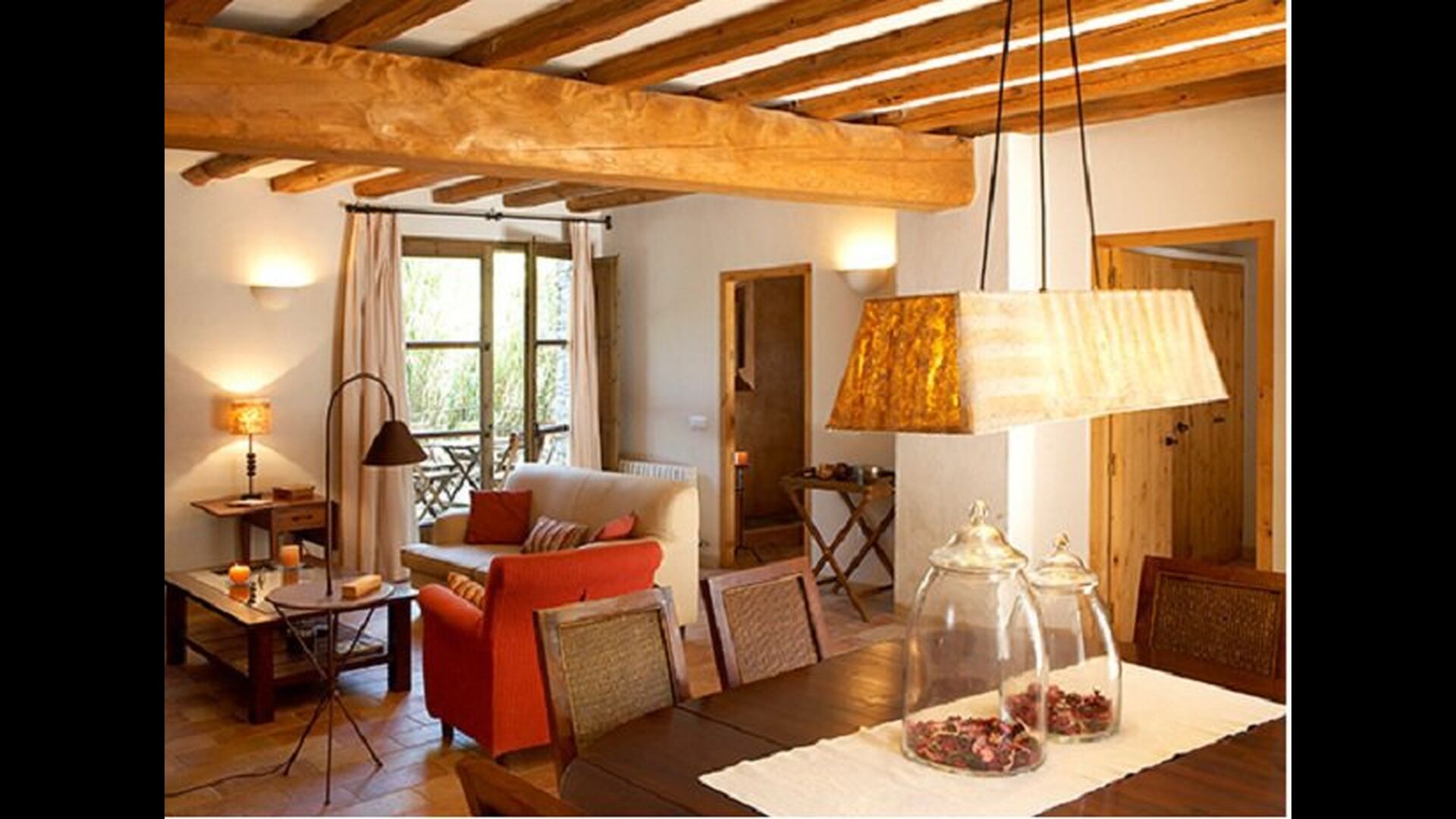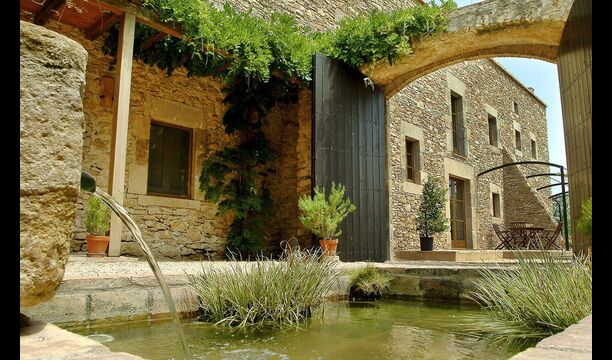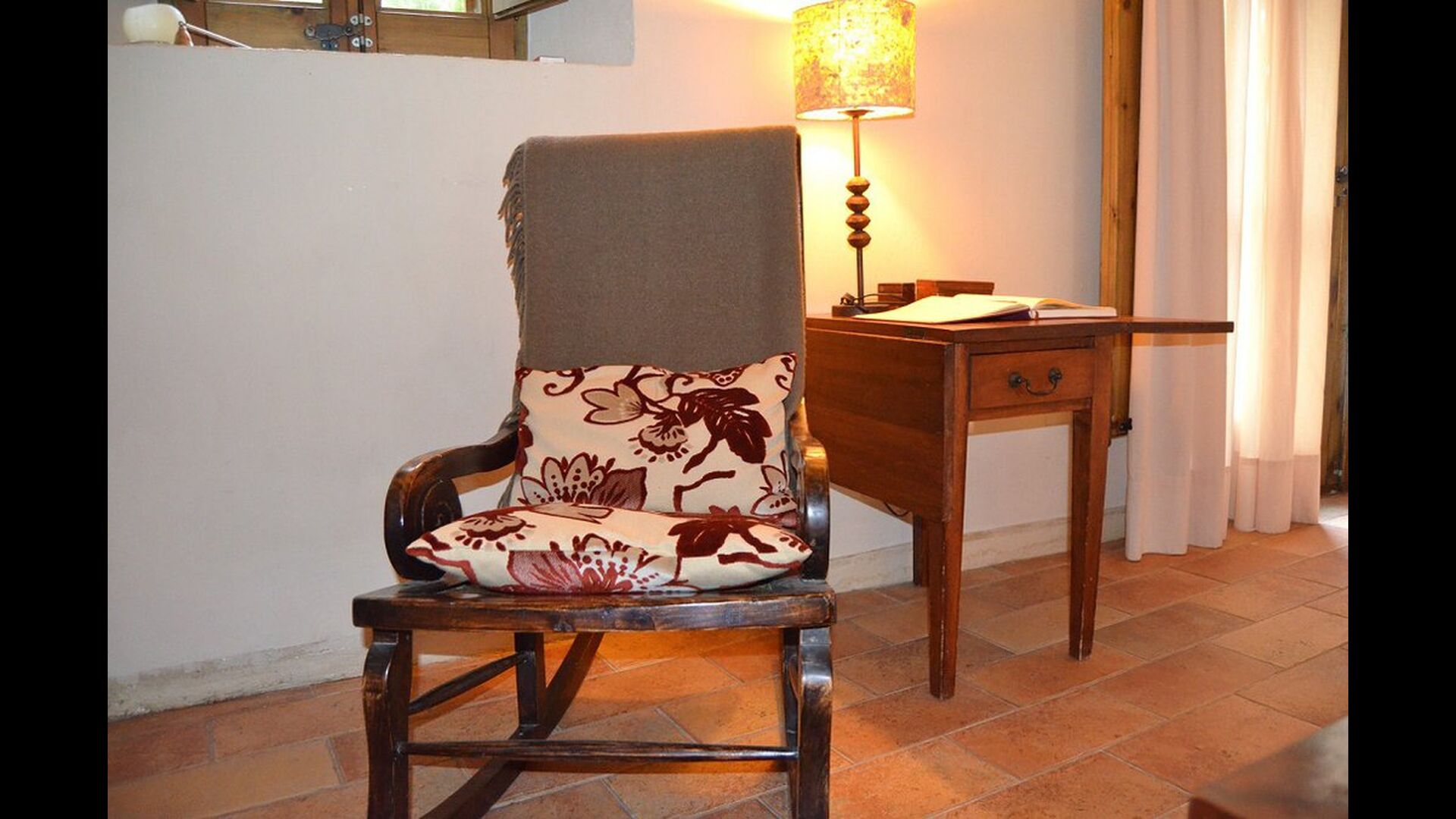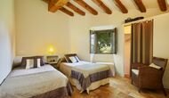 This first floor apartment is located on the lower right side of the large courtyard you are met by after the large wooden gate. The courtyard and the houses are built of stone, which gives a rustic and authentic atmosphere. This apartment has a cosy covered patio in the courtyard, where it is obvious to enjoy the homemade meals during the warm Catalan evenings. In the daytime, it is also a perfect place to relax, as there is a cooling shade.
