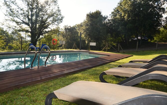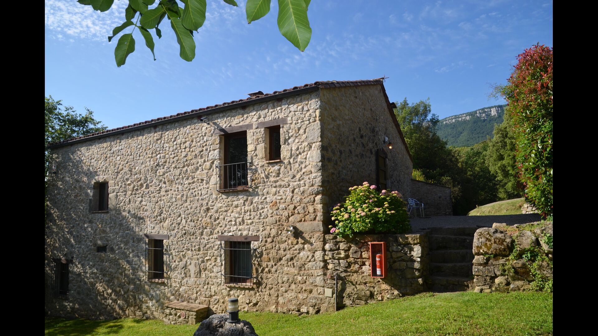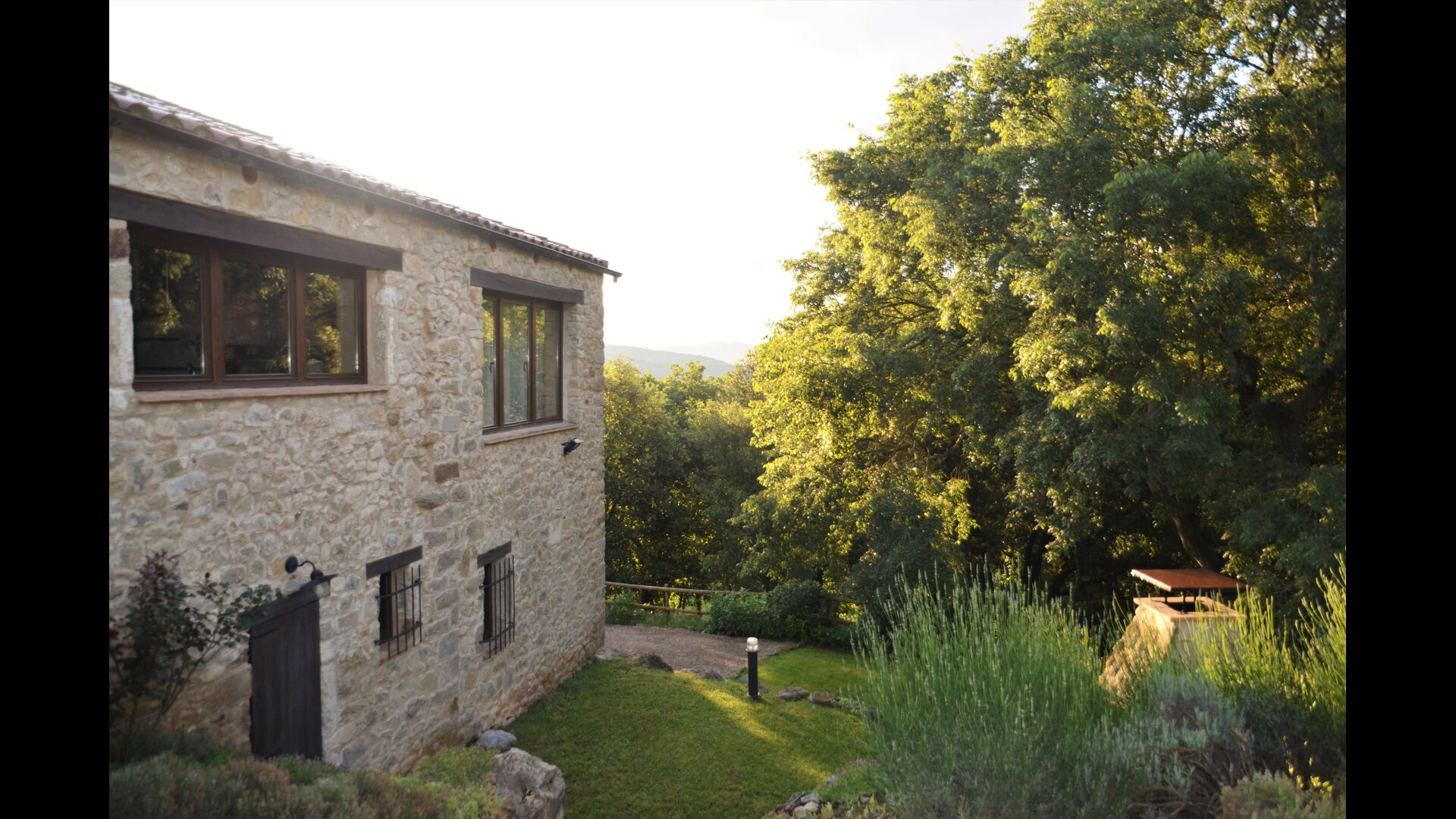 The holiday home is one of two holiday homes on the property. Can Bosquita - The Mirador is the smaller of the two buildings that make up Can Bosquita. The two buildings are located on the sloping property, which extends over more than 4,000 m2, where you can move freely. First Can Bosquita - Spruce and directly opposite, separated by terrace, Can Bosquita - Mirador. Both houses have their own private terrace, barbecue and outdoor areas, secluded from the other holiday home. The shared pool area is one level below the two holiday homes, and is fenced so that small children can not get to the pool area on their own. From both houses, you have a fantastic view of the valley below, where the Brugent river works its way down towards Girona and above the house rises the beautiful Guilleries mountain massif.