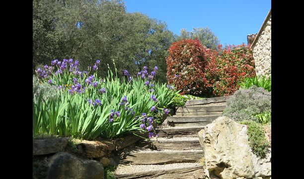 Just below the house, is the lovely, shared pool area, perfect for children of all ages. If you have small children, you can relax as the swimming pool is fenced. In addition, they will enjoy the pool because the pool has steps so they can move down into the water at their own pace. One level below the pool area, there is a large lawn where there is the opportunity to play football, volleyball, badminton or basketball.