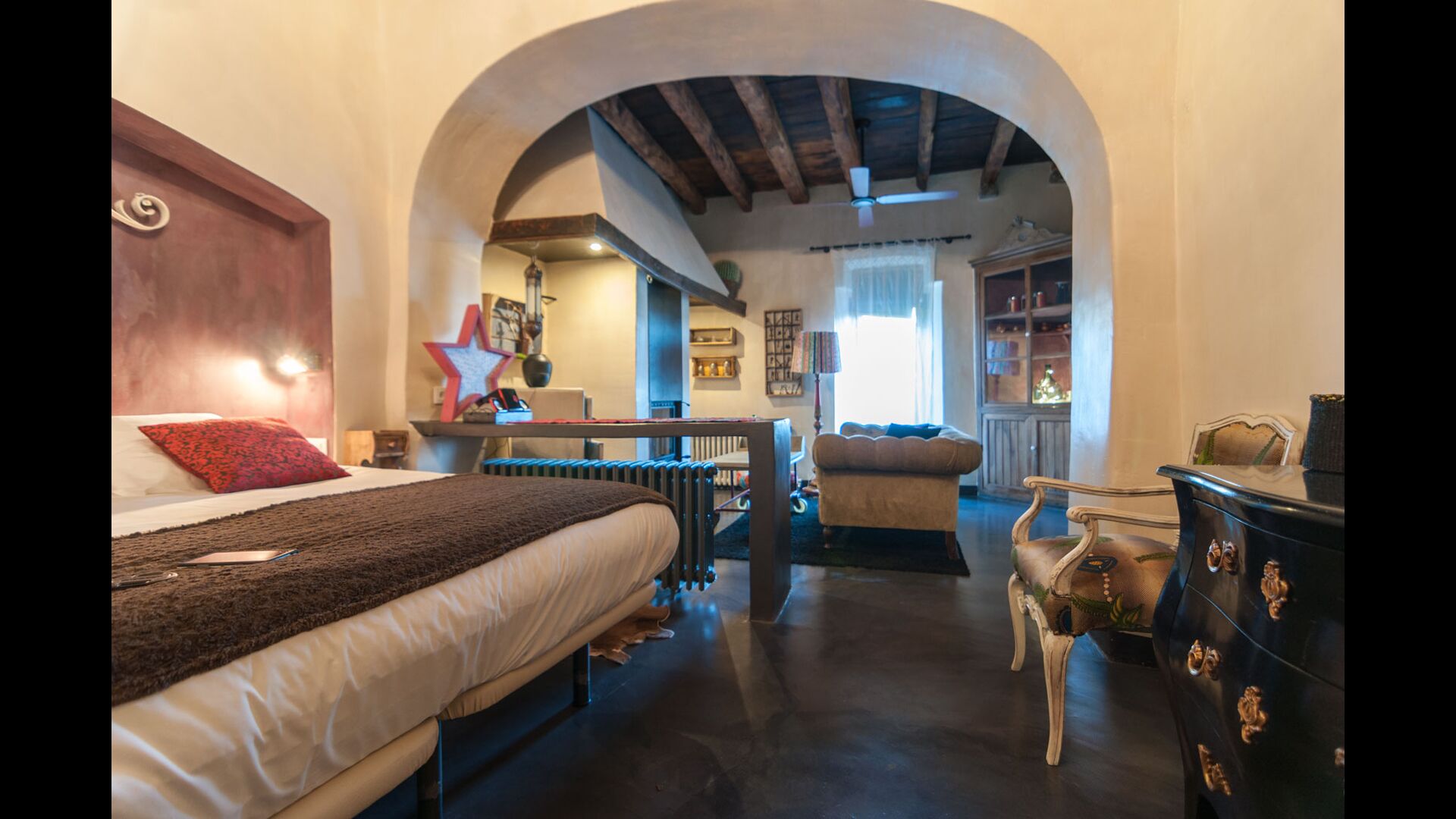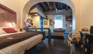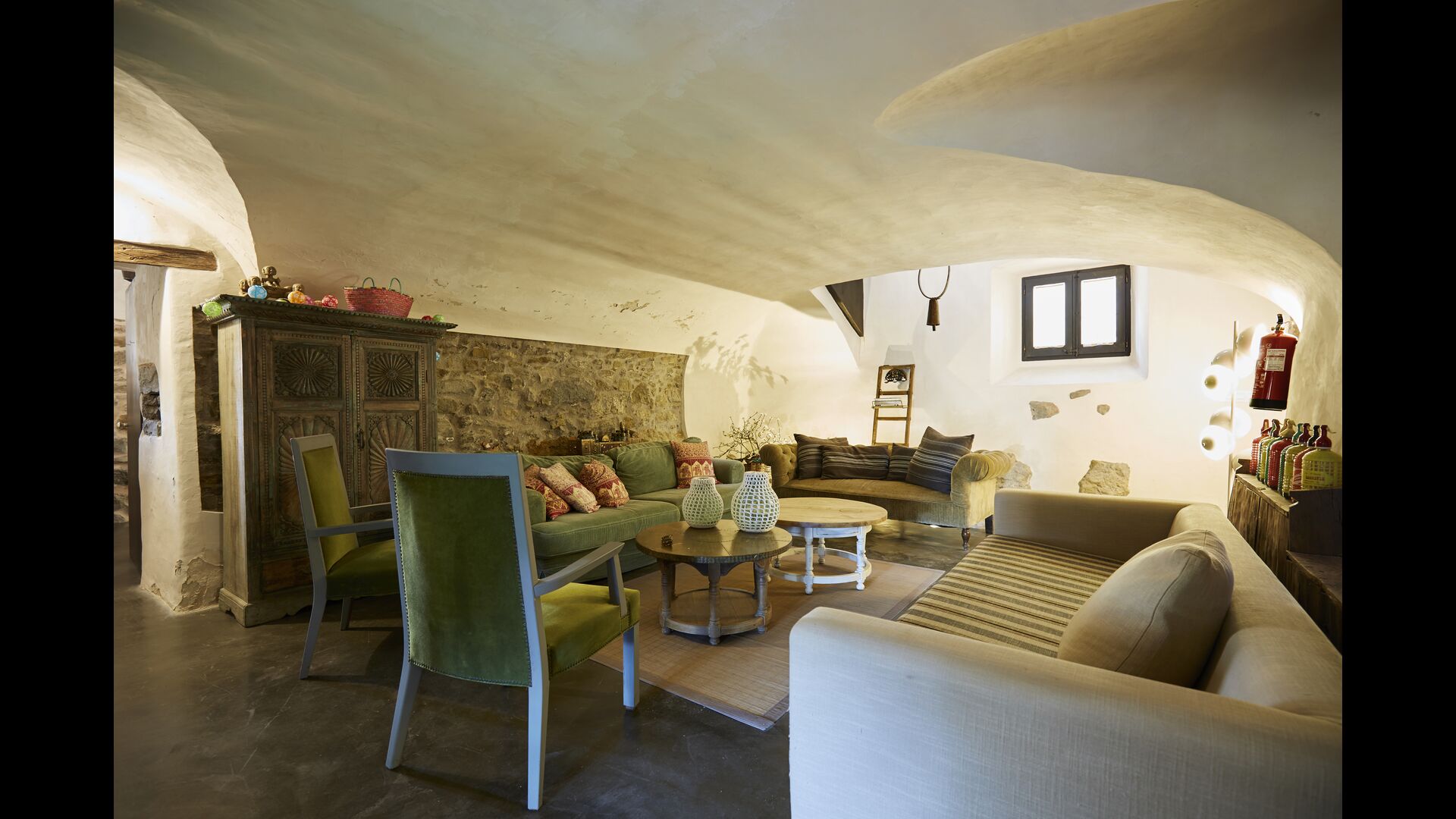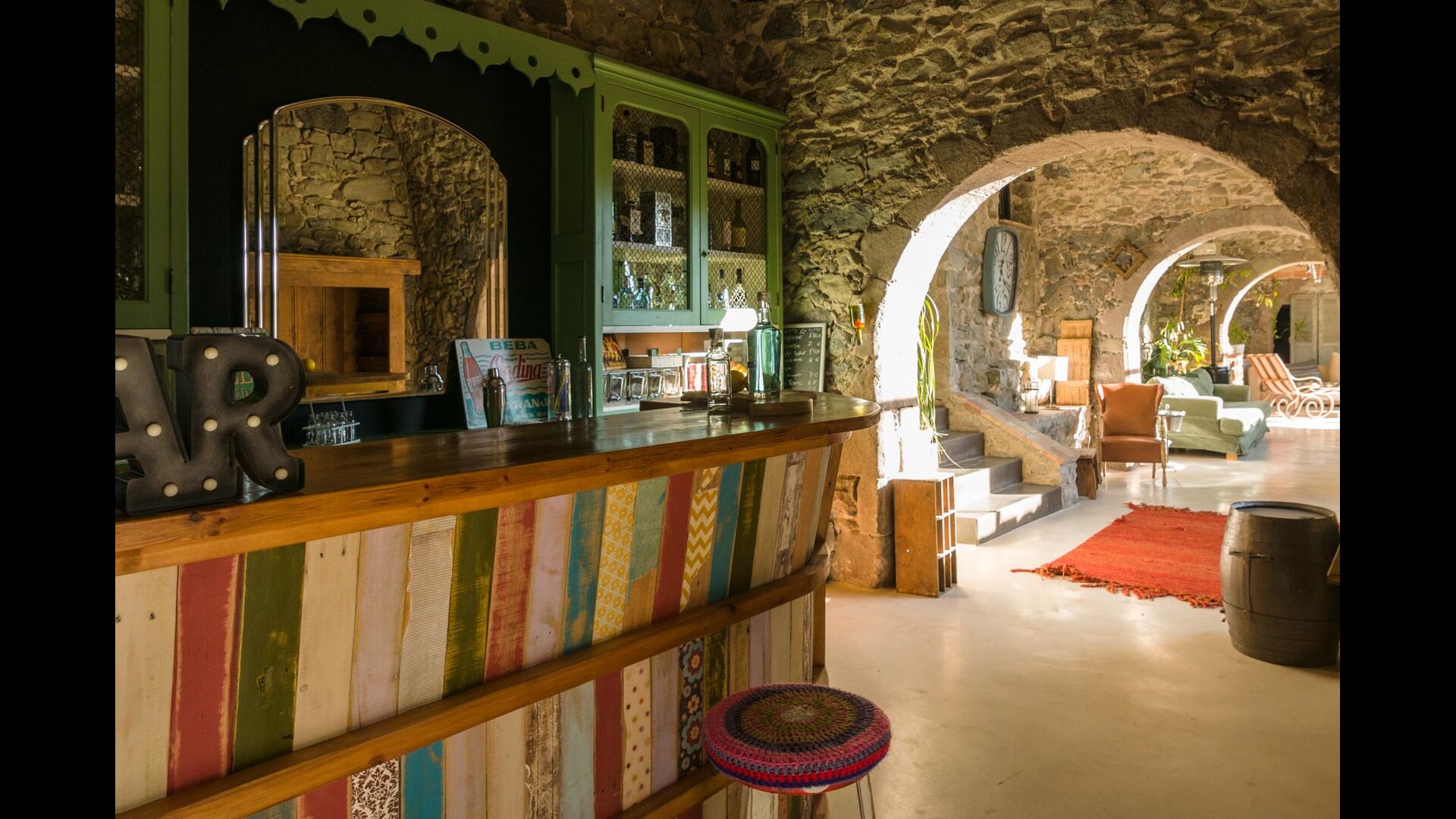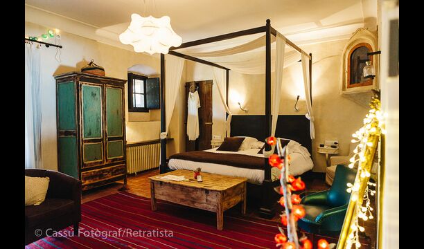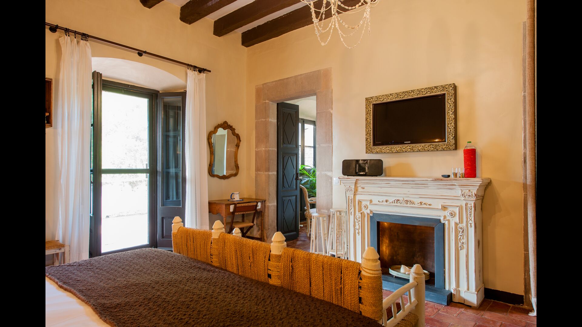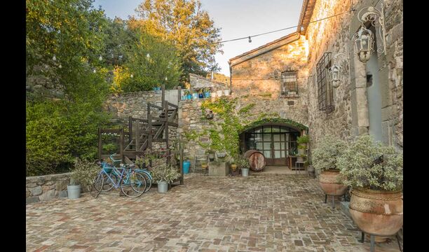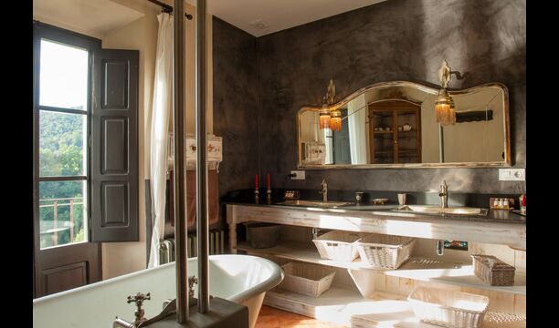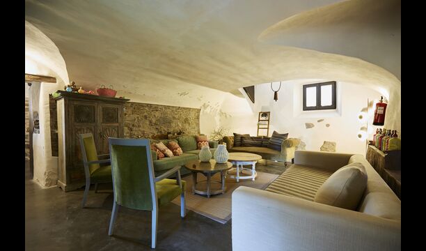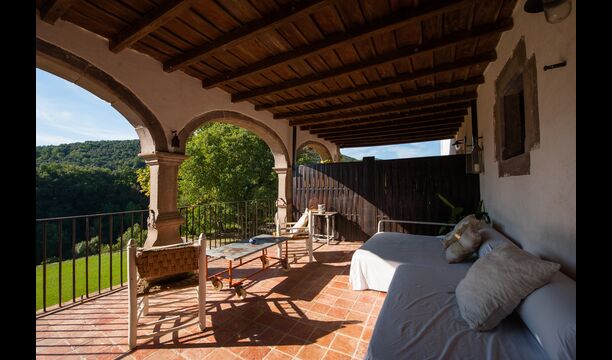 The holiday home, which originally is from the 10th century, provides 5 master suite bedrooms and a small bedroom with 2 bunk beds. The suites have their own private bathroom and they all have a private terrace or balcony and one even has its own patio. Beds are king size with white cotton linen. There are multiple common rooms around the house, including a chill-out room with a fire place, library, a lovely dining room, a huge kitchen and even a bar if you fancy a couple of drinks and a bit of music. The house comes with all the necessary amenities for a complete vacation.
