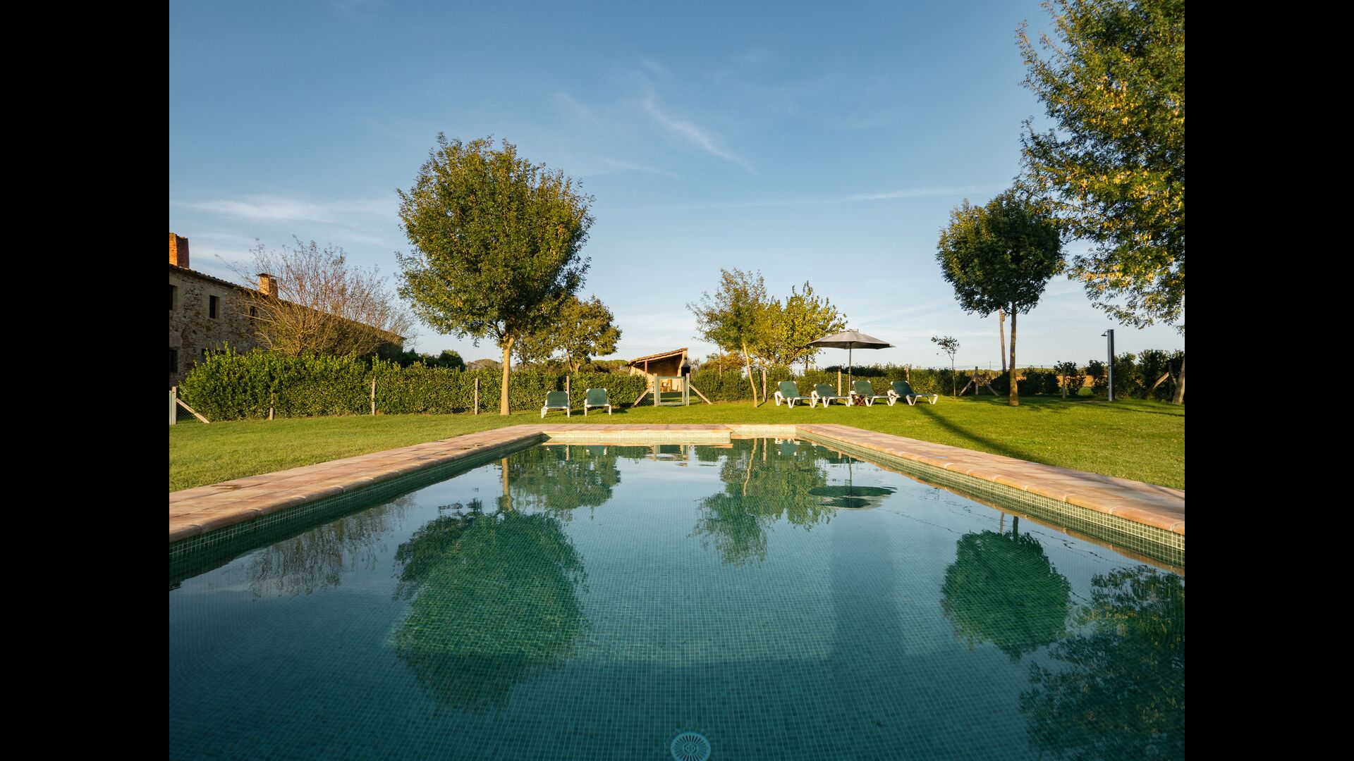 The house stands in a marvellous location that combines farmland with woods of oak, holm oak and pine and streams and brooks lined with vegetation. The farmhouse itself is surrounded by a large green area with trees and fields of crops. It has exceptional views of the Montseny, the plain of La Selva and a good proportion of the Catalan Pyrenees and their foothills.