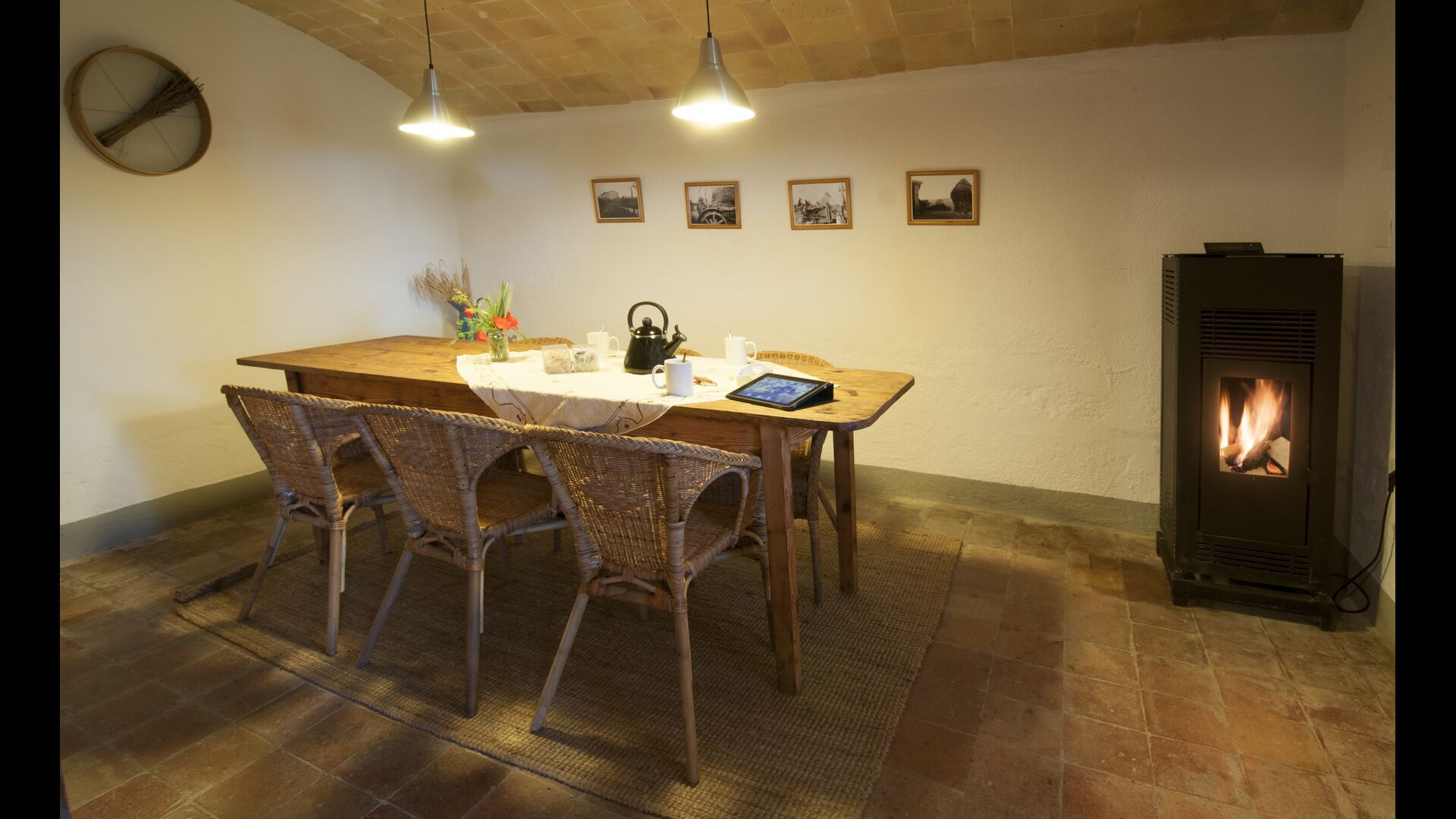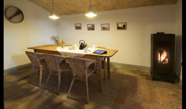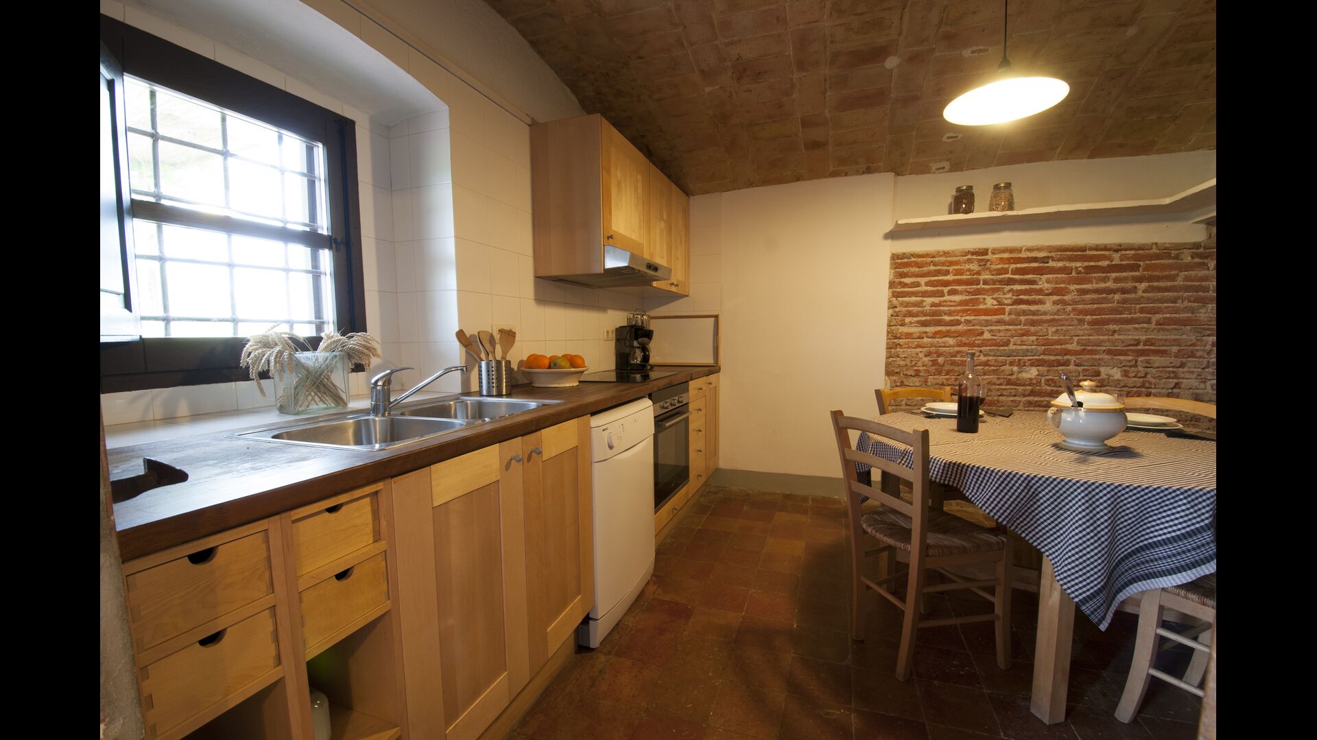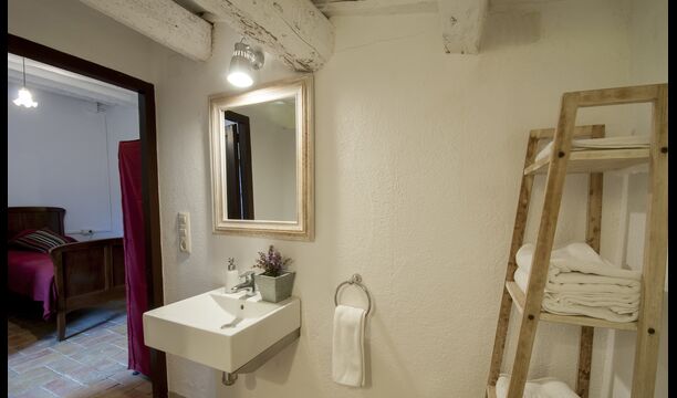 Outside there is a covered terrace with BBQ and a cool, shady porch, surrounded by a large gardened area with trees. The house shares a swimming pool with Casa Piferan, which is situated 200 meters from the house. Casa Piferan is a traditional holiday home with 3 independent holiday apartments. You can see one of the apartments here.