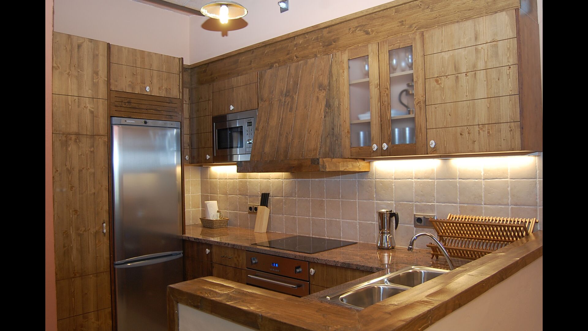 You enter the big common where you find the kitchen, dining area, sofa corner and exit to the terrace, all integrated. The kitchen is well-equipped and have fridge and freezer, ceramic hotplates, oven, microwave, dishwasher and more.