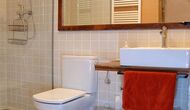 An aisle leads you to a double room with a double bed and a triple room with 3 single beds. Finally, the apartment has a beautiful bathroom with shower. Here, you also find a washing machine and a tumble dryer.