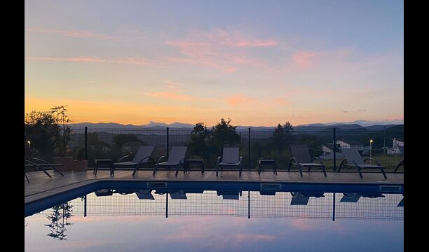 In addition, the back of the house was turned into the fantastic swimming pool area with the big swimming pool (17 x 5 meters), café tables, toilets and changing rooms, and shady corners and sunny spots. The view is stunning, directly to the Pyrenees.