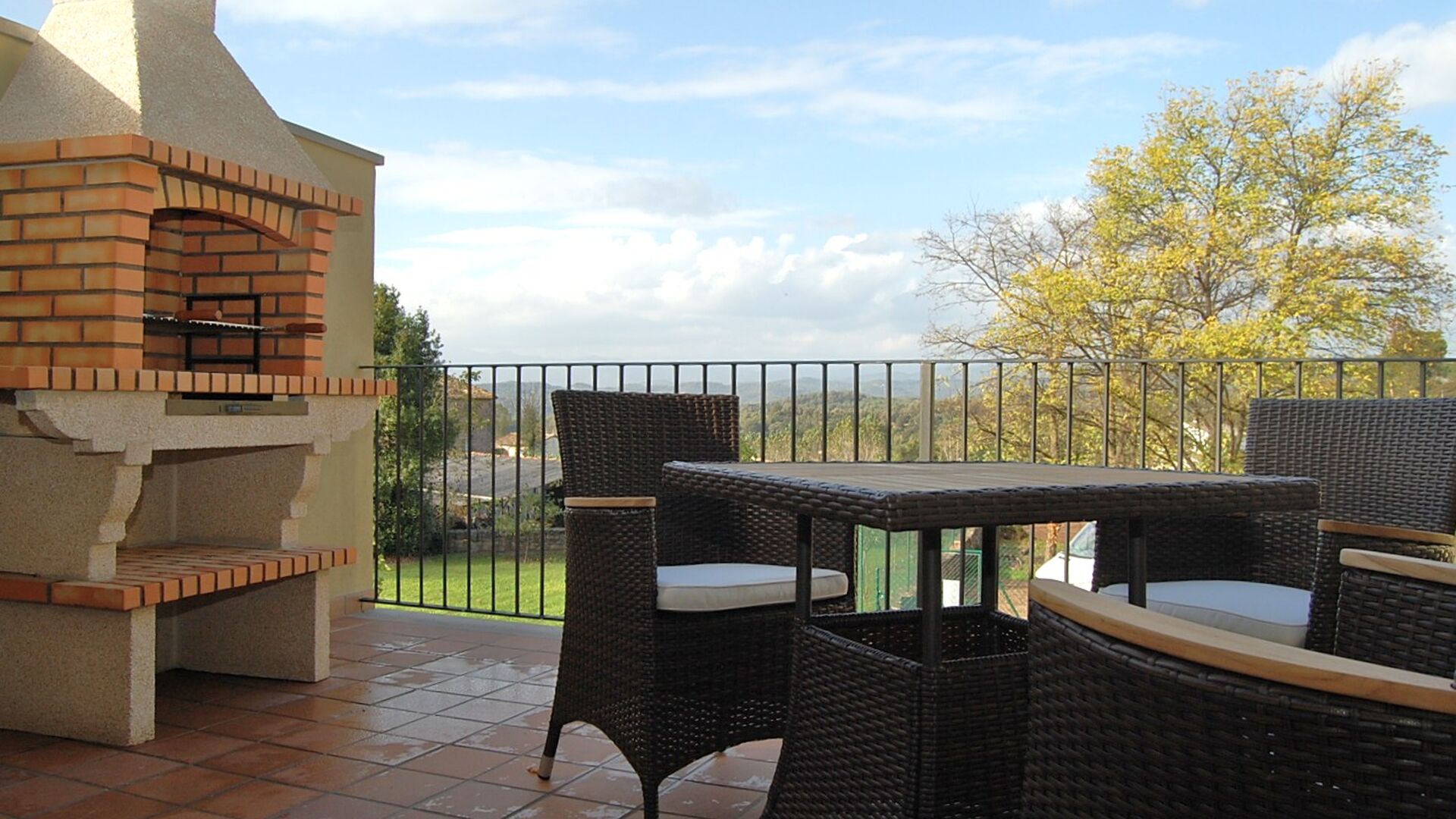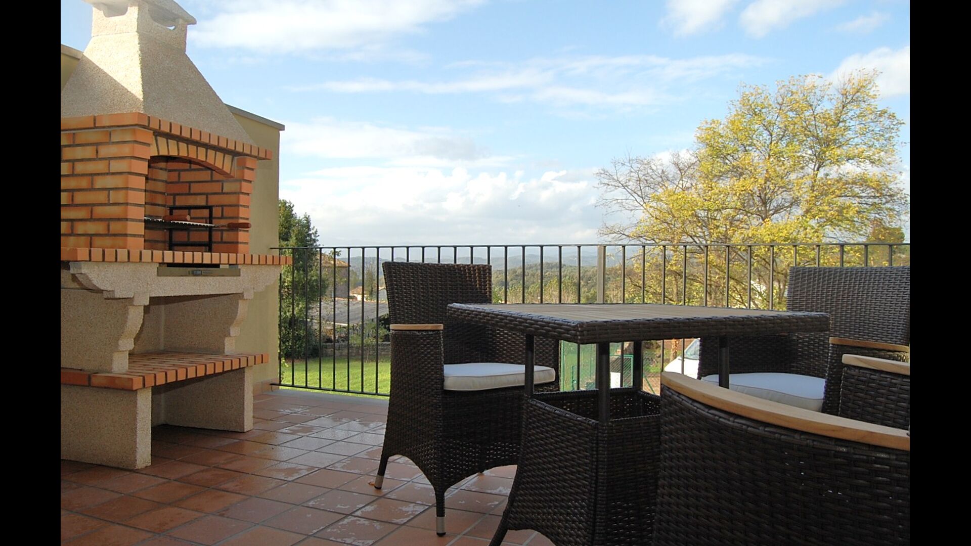 The sofa corner is nice, as you can from there also enjoy the view, and there is also a television. The terrace is equipped with terrace table and chairs and a barbecue, so you can make your own meat overviewing the pool area and the mountains in the distance.