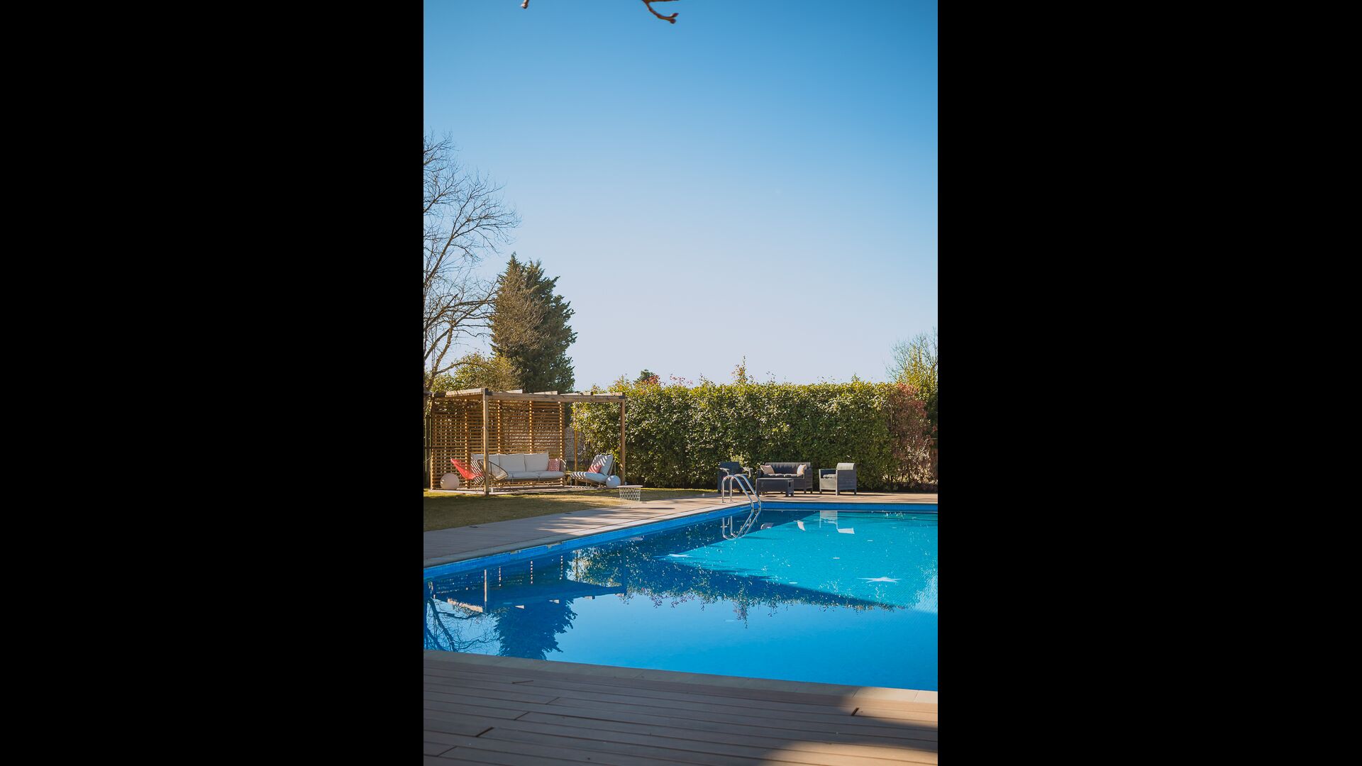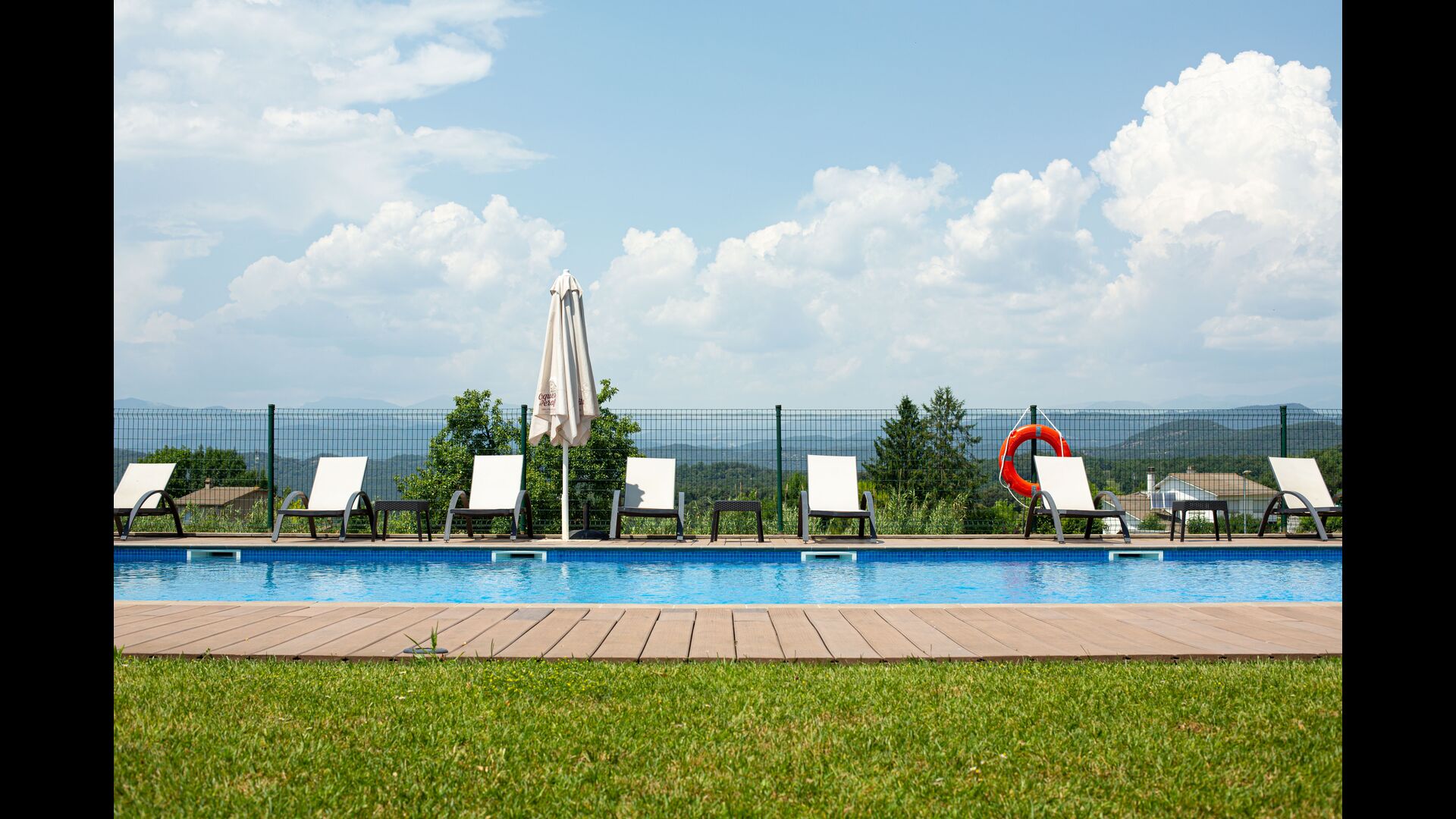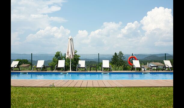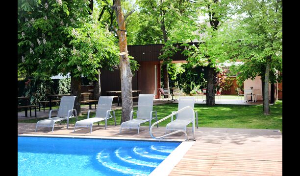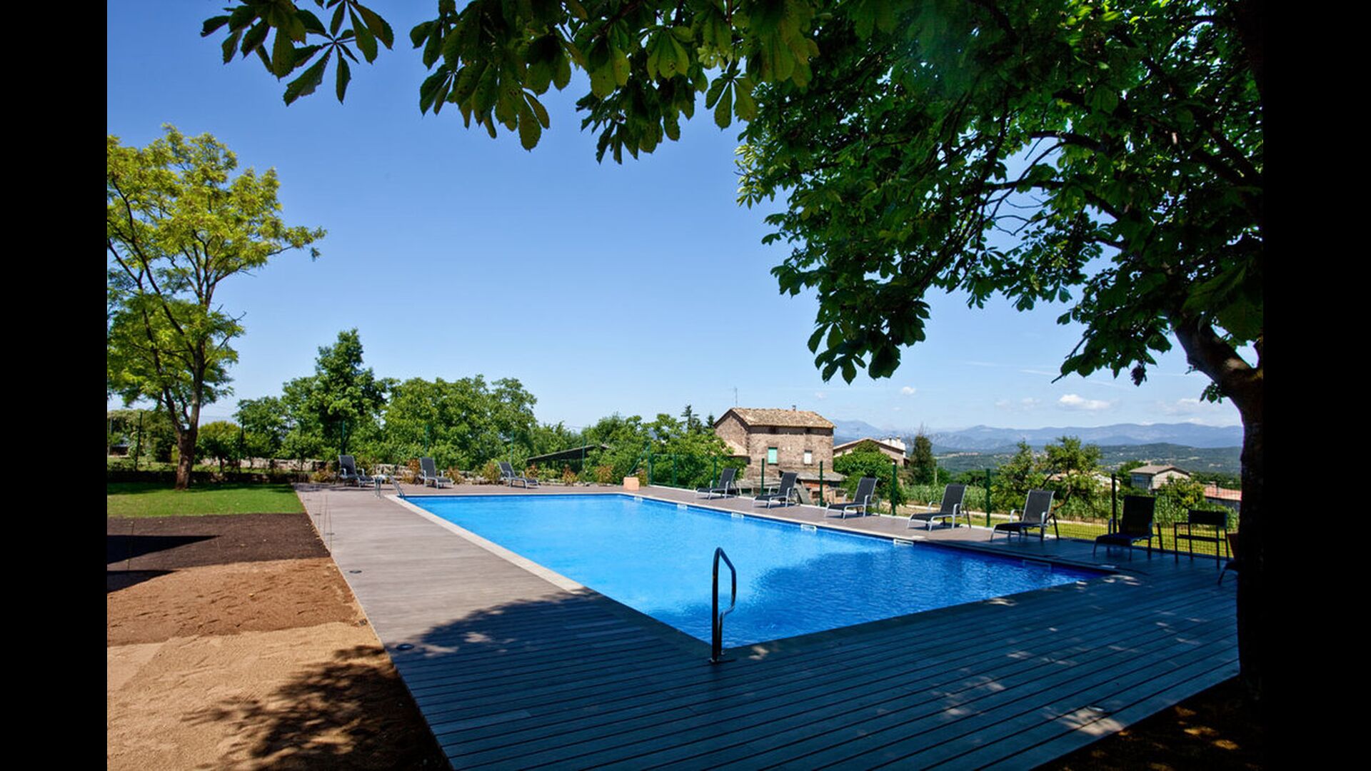 In addition, the back of the house was turned into the fantastic swimming pool area with the big swimming pool (17 x 5 meters), café tables, toilets and changing rooms, and shady corners and sunny spots. The view is stunning, directly to the Pyrenees.