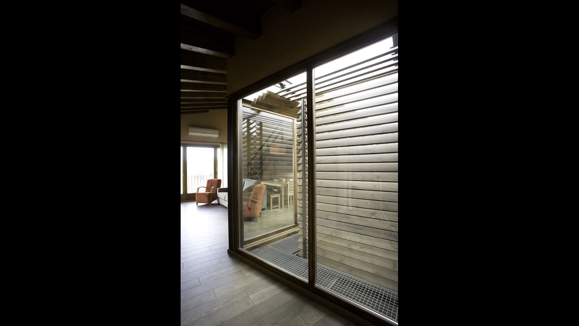 The common areas are perfectly integrated, with the living area with sofa corner and dining area, gives a natural connection between the kitchen and the terrace. The kitchen is fully equipped with oven, ceramic hot plates, dishwasher, Nespresso and table ware.