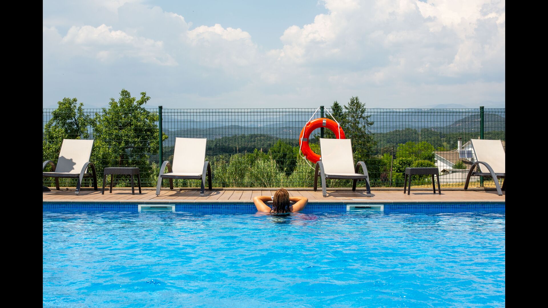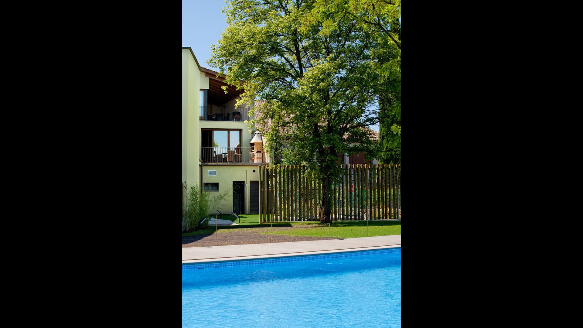 In addition, the back of the house was turned into the fantastic swimming pool area with the big swimming pool (17 x 5 meters), café tables, toilets and changing rooms, and shady corners and sunny spots. The view is stunning, directly to the Pyrenees.