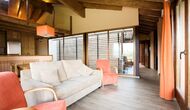 Its layout with two double bedrooms and then a loft with 3 futon single beds makes it ideal for group of 7-9 persons with children, as two extra beds can be allocated where you prefer (a bit tight but possible).