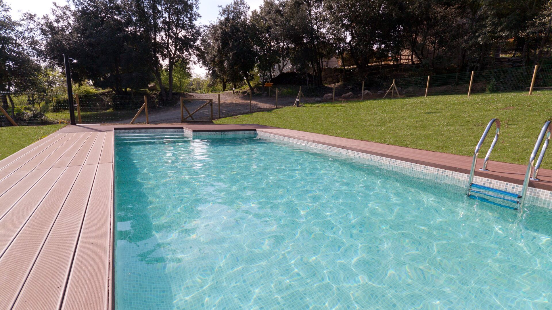 Just below the house, is the lovely swimming pool area, perfect for children of all ages. One level below the pool area, there is a large lawn where there is the opportunity to play football, volleyball, badminton or basketball.