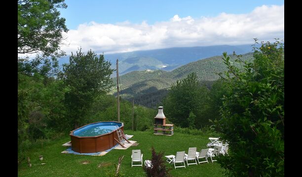 With the house able to accommodate up to 22 people, the house is an nice base to rest and relaxation is on the agenda. The swimming pool is fenced and situated behind the house, away from the more steep parts of the property. In front of the house, you will have the fantastic view of the valley.