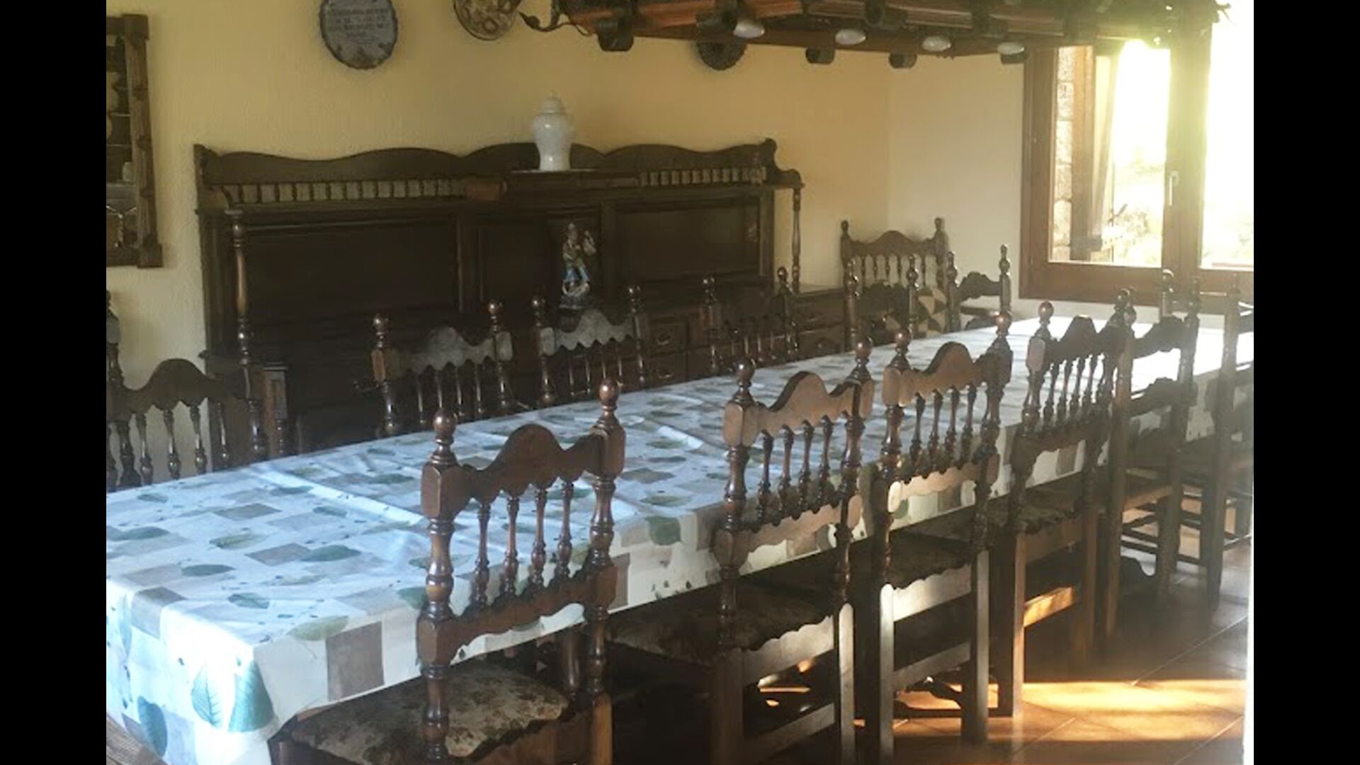 There is a big area with a view on the other side of the house, facing the valley, but at the moment no terrace or barbecue (partly because the danger). The dining room inside will be the natural space for the meals.
