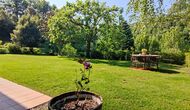 The central point in the holiday home is the large sitting room on the lower floor. Here is a large dining table accommodating 12 persons and in continuation of this, a sofa corner with a nice fireplace and TV. The room has very large panorama windows, which can be opened as sliding doors to the large lawn. In the other end there is access to the aforementioned terrace with BBQ.