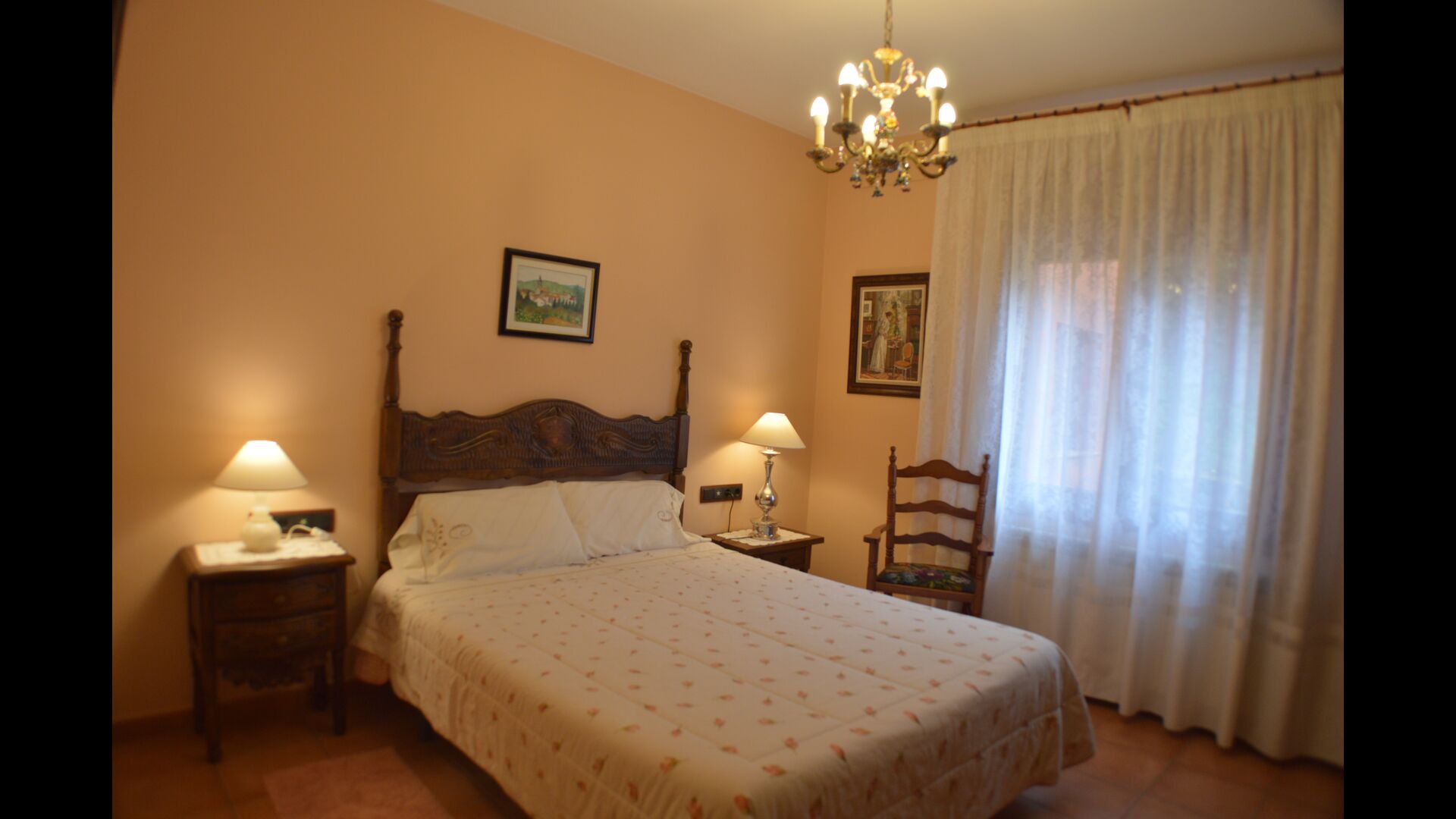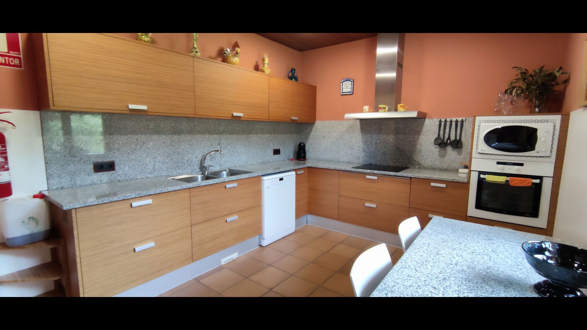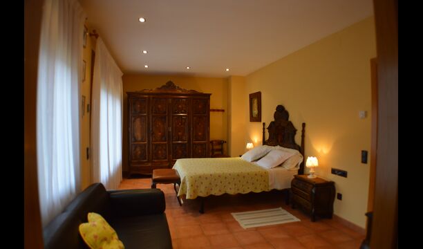 Finally there is a door to the kitchen, which is well furnished with oven, coffee machine, big double fridge with freezer, microwave and other necessary facilities and tools. On this ground floor you also find a double room and a bathroom.