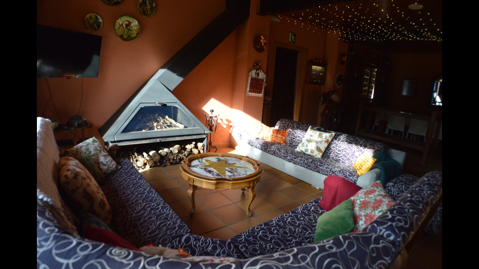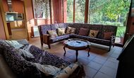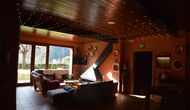 The second (and upper) floor has a bedroom with double bed and a bathroom with shower. In addition there is a sofa areawith TV and exit to anotherterrace with a smaller sitting area andan impressive view over the tree clad hills. If you are a bigger group, it is possible for 3-4 children to sleep up here on the sofa beds.