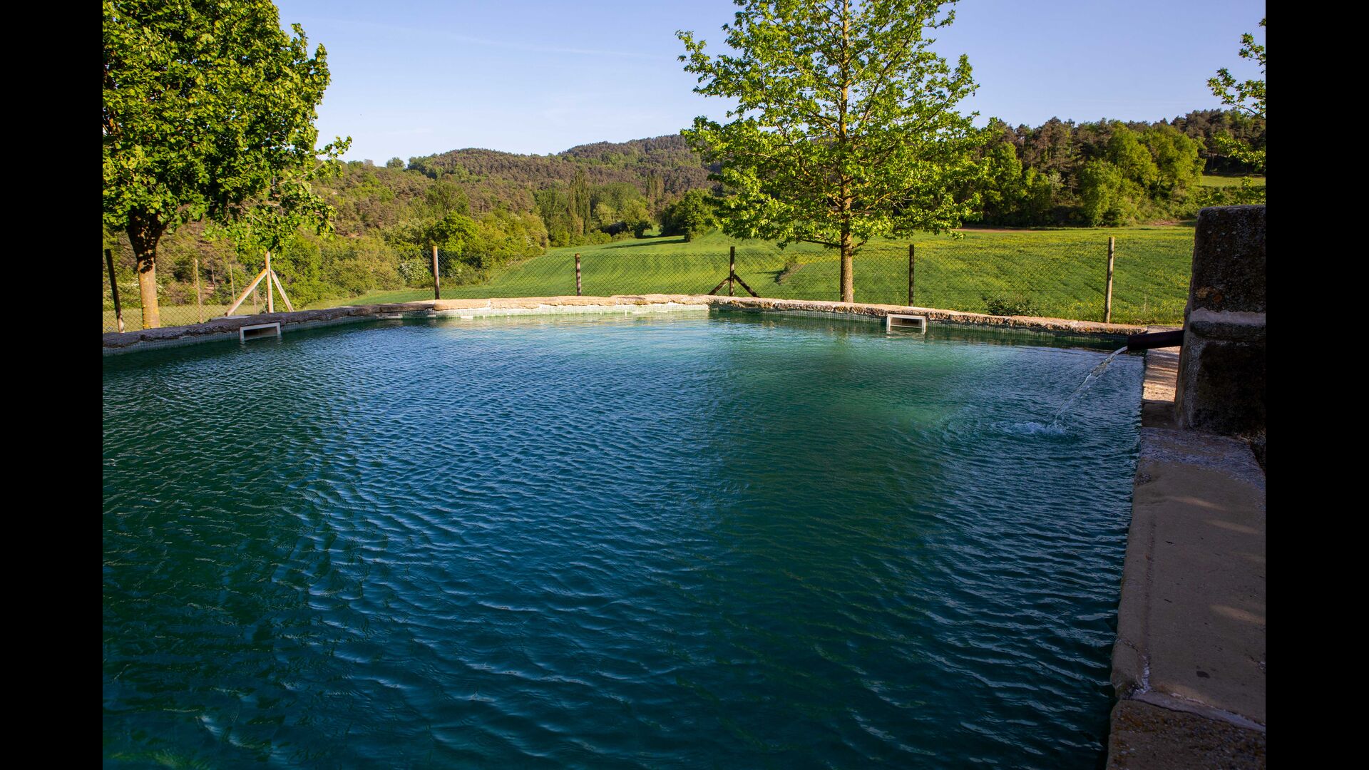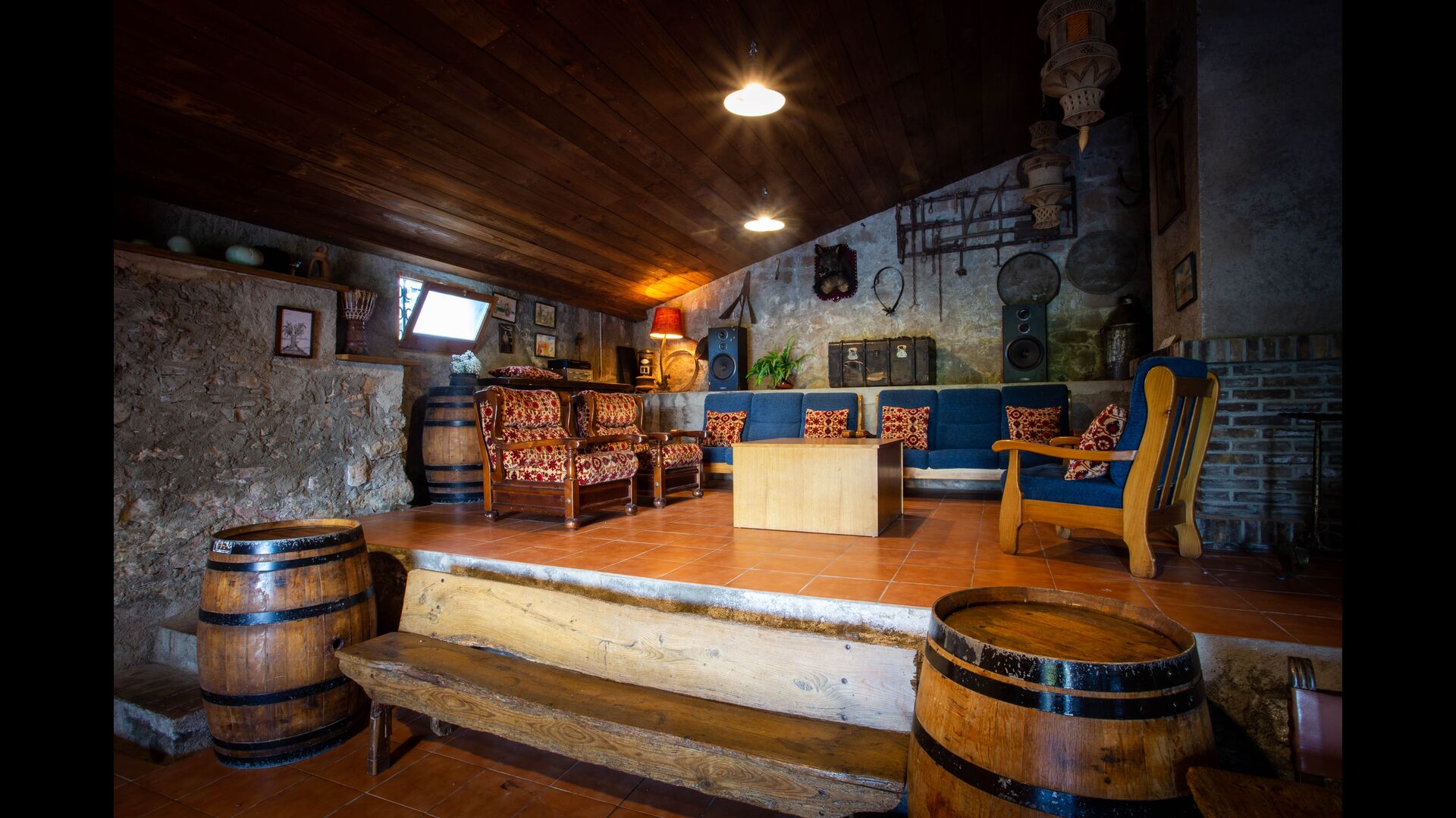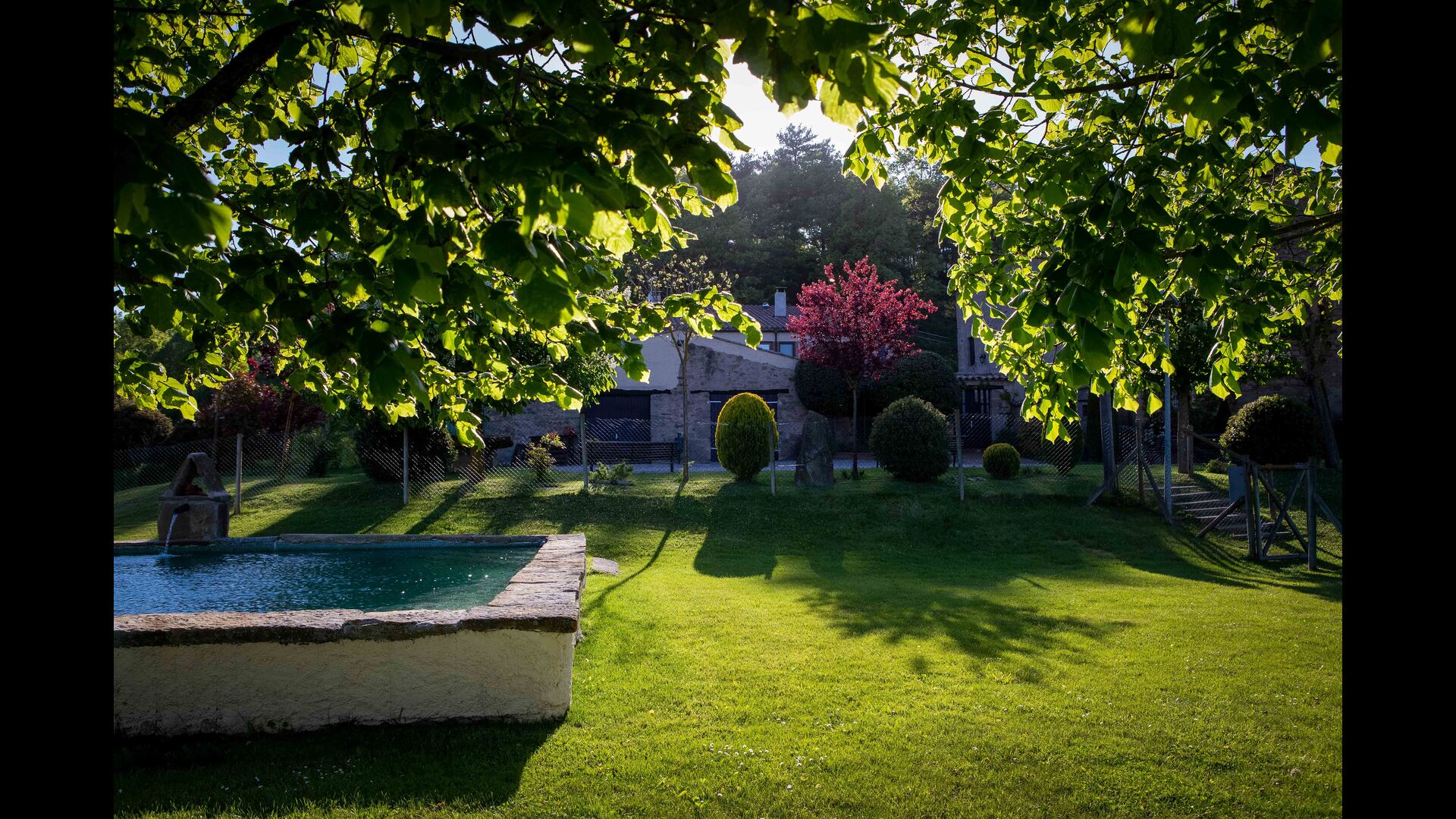 Outside, there is a court yard with barbecue, perfect for outside dining. Also there is a terrace in level with the upper floor, if you prefer to dine with a view. The swimming pool is very special. Instead of building a traditional swimming pool, Joan and Alicia decided to make a swimming pool, which to a greater extend matches the house and the history. Therefore, the swimming pool has been made with rocks and with a small fountain circulating the water. It is very big (9 x 8 meters), and works like a usual swimming pool.