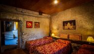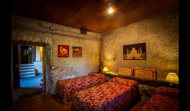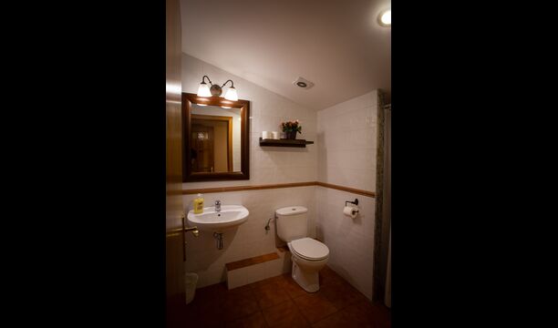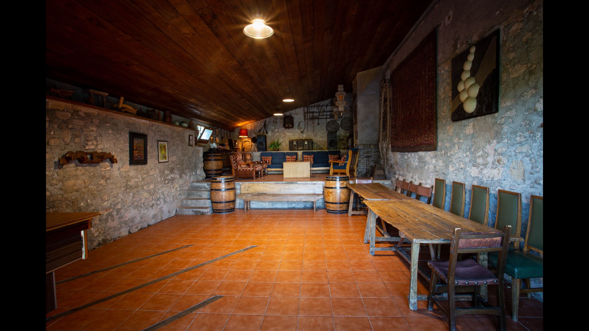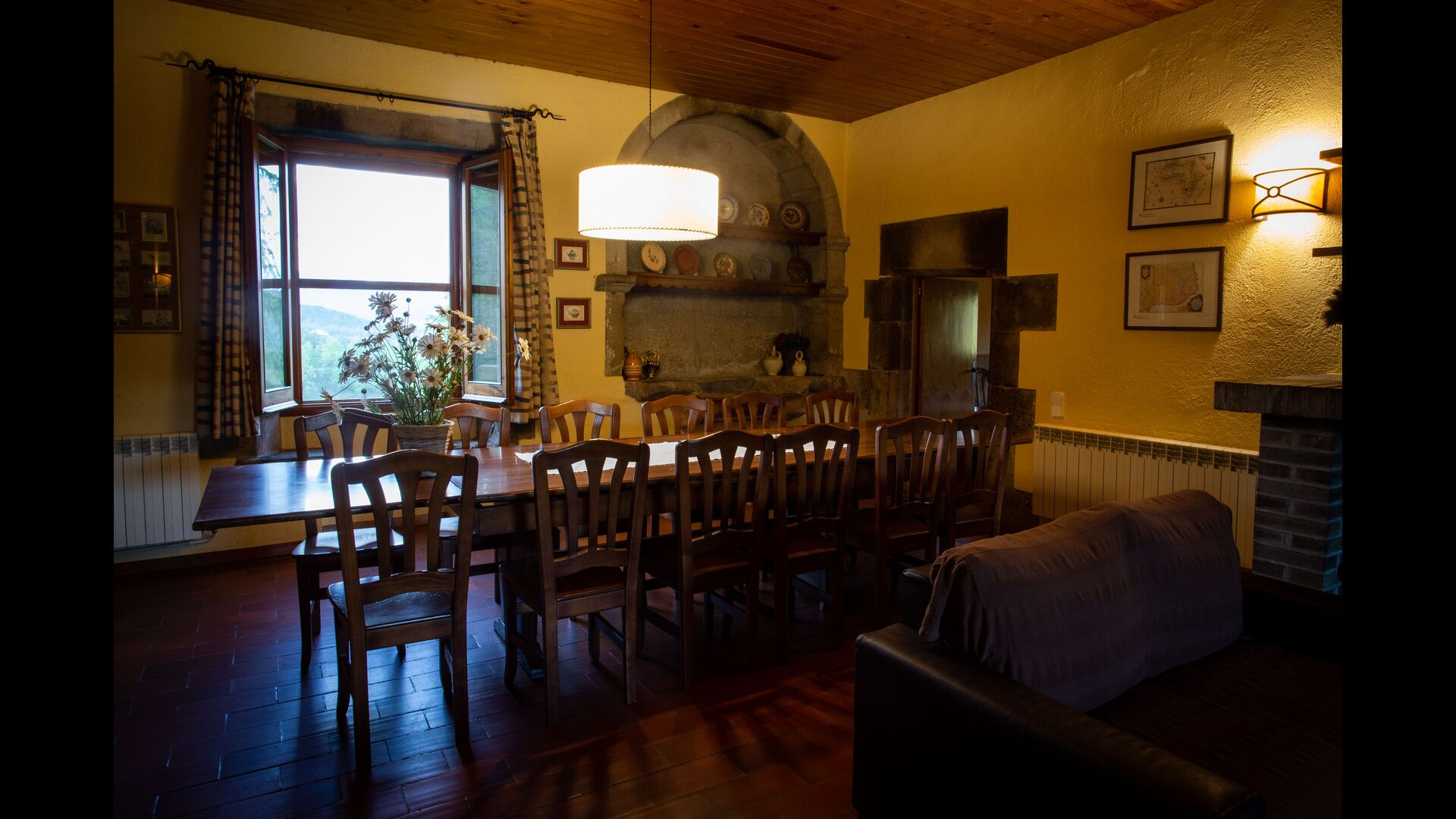 Outside, there is a court yard with barbecue, perfect for outside dining. Also there is a terrace in level with the upper floor, if you prefer to dine with a view. The swimming pool is very special. Instead of building a traditional swimming pool, Joan and Alicia decided to make a swimming pool, which to a greater extend matches the house and the history. Therefore, the swimming pool has been made with rocks and with a small fountain circulating the water. It is very big (9 x 8 meters), and works like a usual swimming pool.