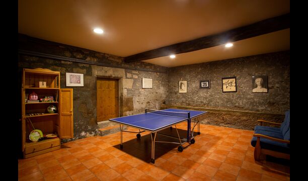 The house has two floors. On the lower floor, you will find a fully equipped kitchen with dishwasher and microwave, a nice living room with TV and fireplace and an activity room with table tennis. There are four bedrooms sharing two bathrooms. There are two double room and two triple rooms and two extra beds possible. On the upper floor, there is another fully equipped kitchen, another living room and four double rooms sharing 2 bathrooms and with two extra beds possible.