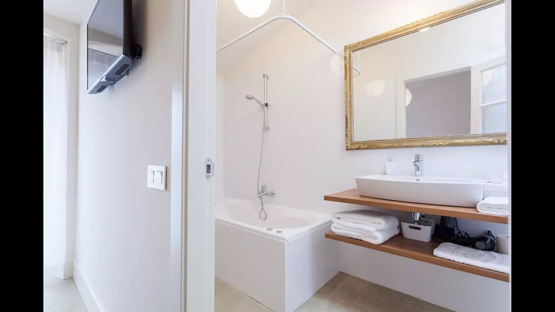 The apartment also has the luxury of having a laundry room with a washing machine, a tumble dryer, an iron etc. which is also shared with the other apartment.