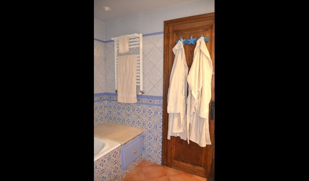 On the next floor in this beautifully decorated house with an authentic atmosphere, you find the three double bedrooms, two of them with French balconies. Two of the rooms have double beds, and one is equipped with two big single beds. Additionally, there is space for 1-2 beds if necessary. On this floor, you also find the second bathroom of the house.