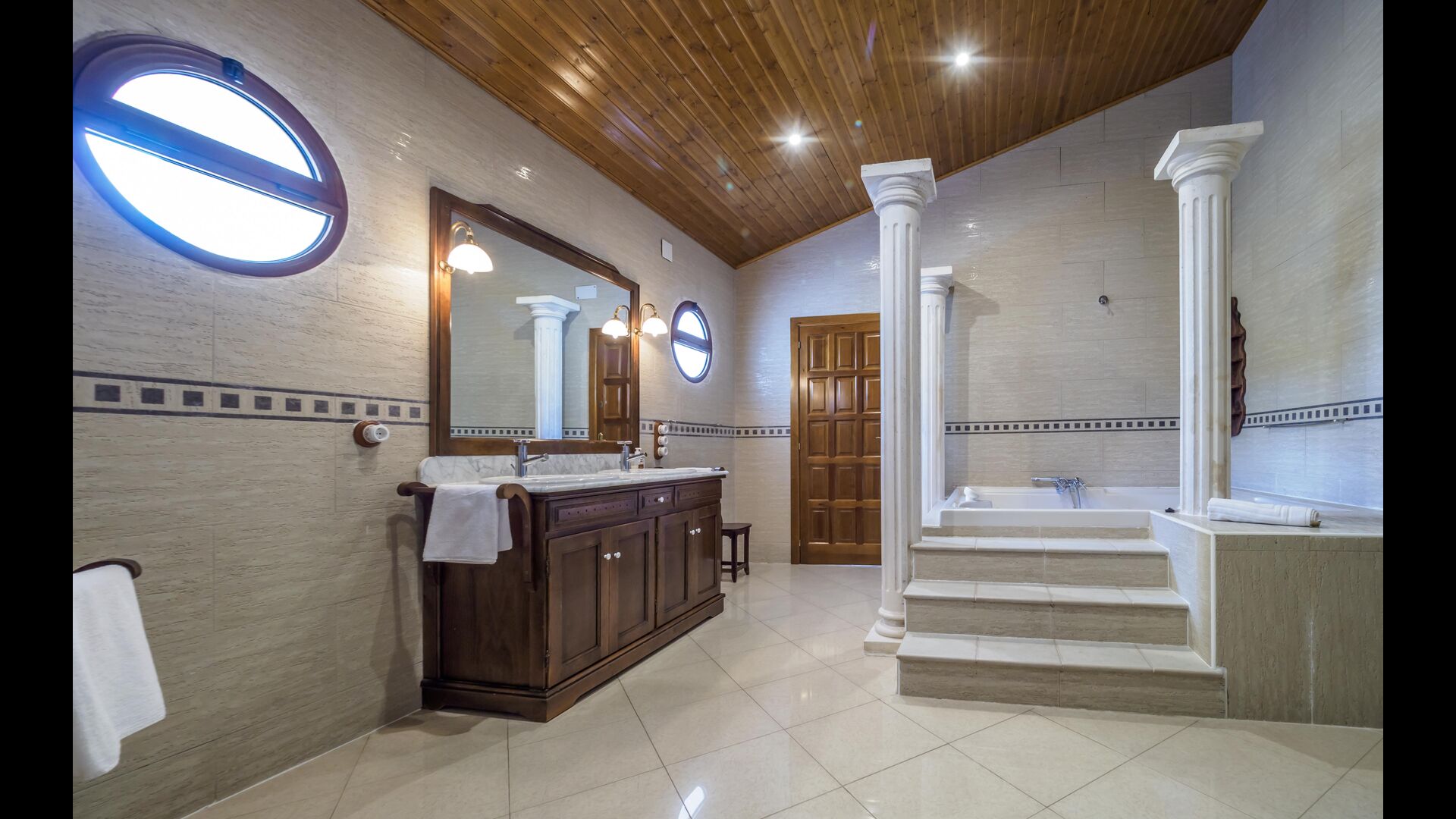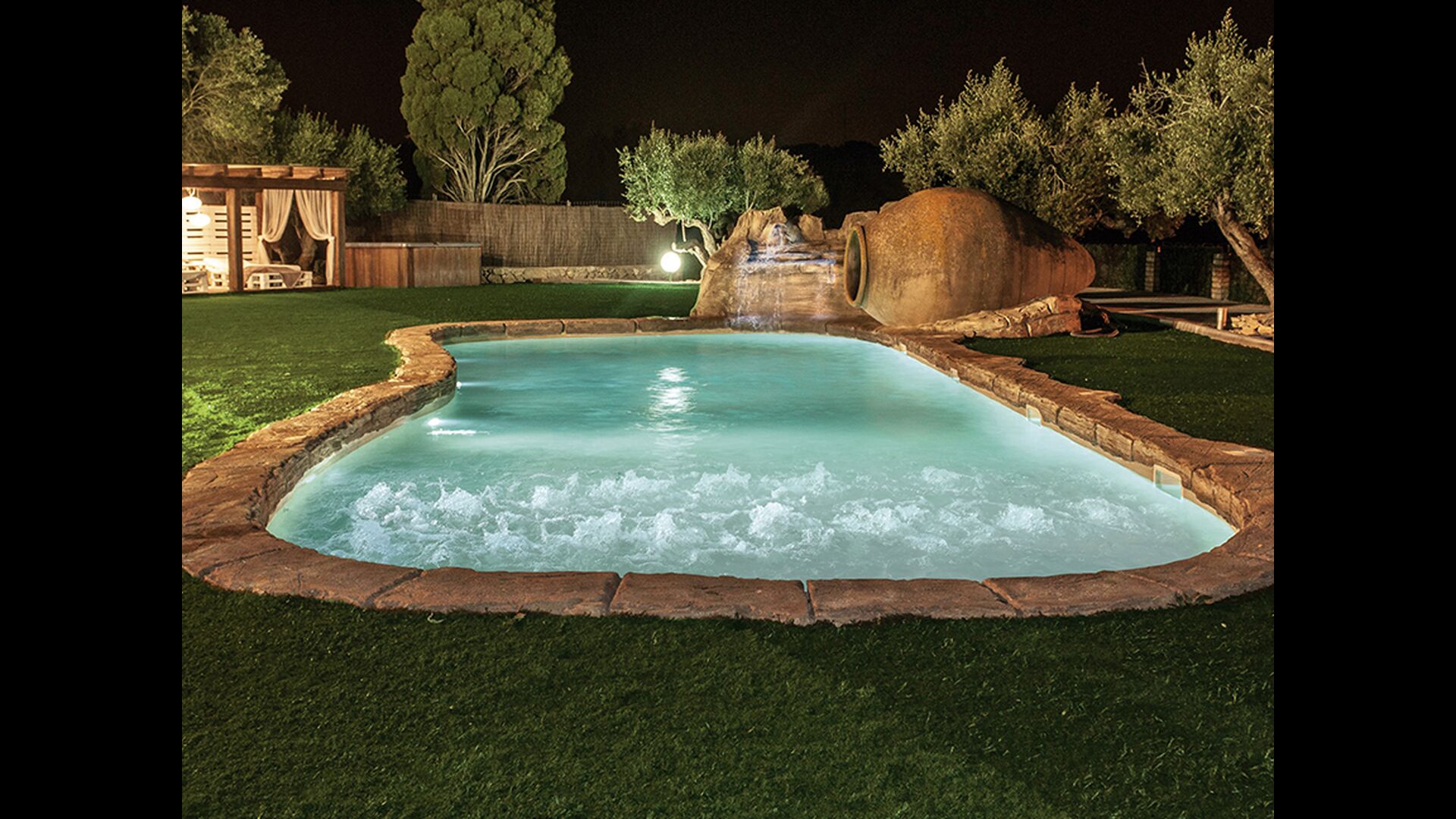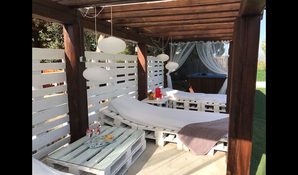 The holiday home’s outdoor area is made up of more than 4000 square meters and includes a rooftop terrace of 120 square meters. The rooftop terrace has a stunning panoramic view of the area, with the Garraf mountain range peeking in the far background. It is the perfect place to enjoy the warm evenings with a glass of local wine. You will also find the cozy outdoor chill-out area, located just by the pool. The area has shaded sunbeds and tables, where you can lie and relax in the warm weather. There is also a wooden porch with a jacuzzi with room enough for up to 4 adults! We imagine that you will spend plenty of your time here.