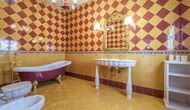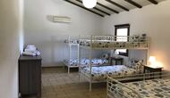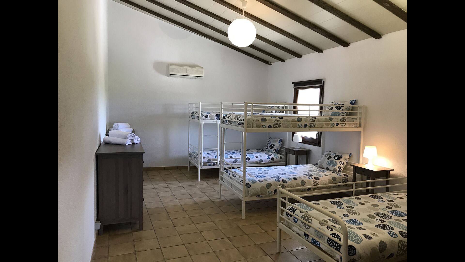 The house has a charming living room, with lounges and a television and even an original fireplace. The living room is connected to the dining room which has a large table with space for 26 people. There is a charming and fully equipped kitchen, which even has an extra fridge and freezer for large groups so that all supplies can be stored. The house has a total of 9 bedrooms, with 8 of the bedrooms being double rooms, and last but not least the childrens room located in the attic. This bedroom has 4 bunk beds and 2 single beds, and is the perfect room for children. Right outside this room you will find the amazing game room, which is the perfect place for hanging out and having some fun with the family. The room is set up for darts, pool, cards, and board games.