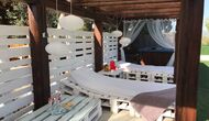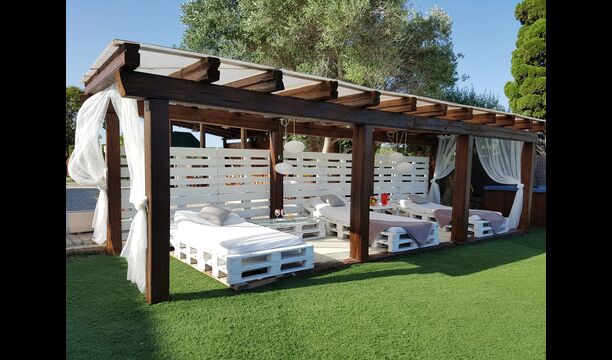 The large BBQ area is another great feature of the outdoor area, where you can enjoy outdoor cooking. Right by the BBQ area there is a covered outdoor porch with a long table and seats all 26 guests - the perfect place to enjoy your home cooked meals with the entire group. There is also a second porch, which can be fully covered for shade. Here you will find plenty of sofas and lounge chairs, where you can really get comfortable and relax.