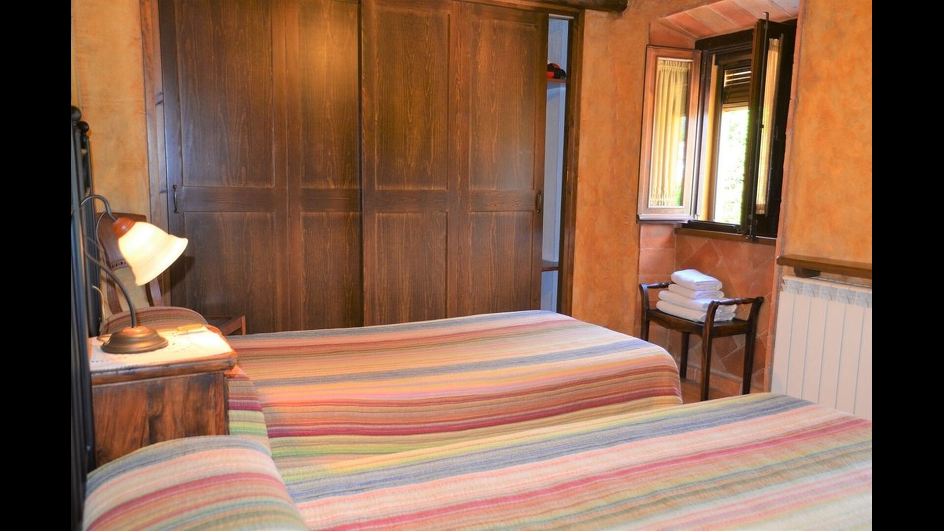 The house has two floors. On the ground floor, you come from the entrance hall into the large living room with dining table and sofa corner, as well as access to the open kitchen. There is also a bathroom and access to the terrace and garden. Upstairs there are two double rooms, one with a double bed and the other with two single beds, as well as a room with room for three people, divided into a double bed and a single bed.