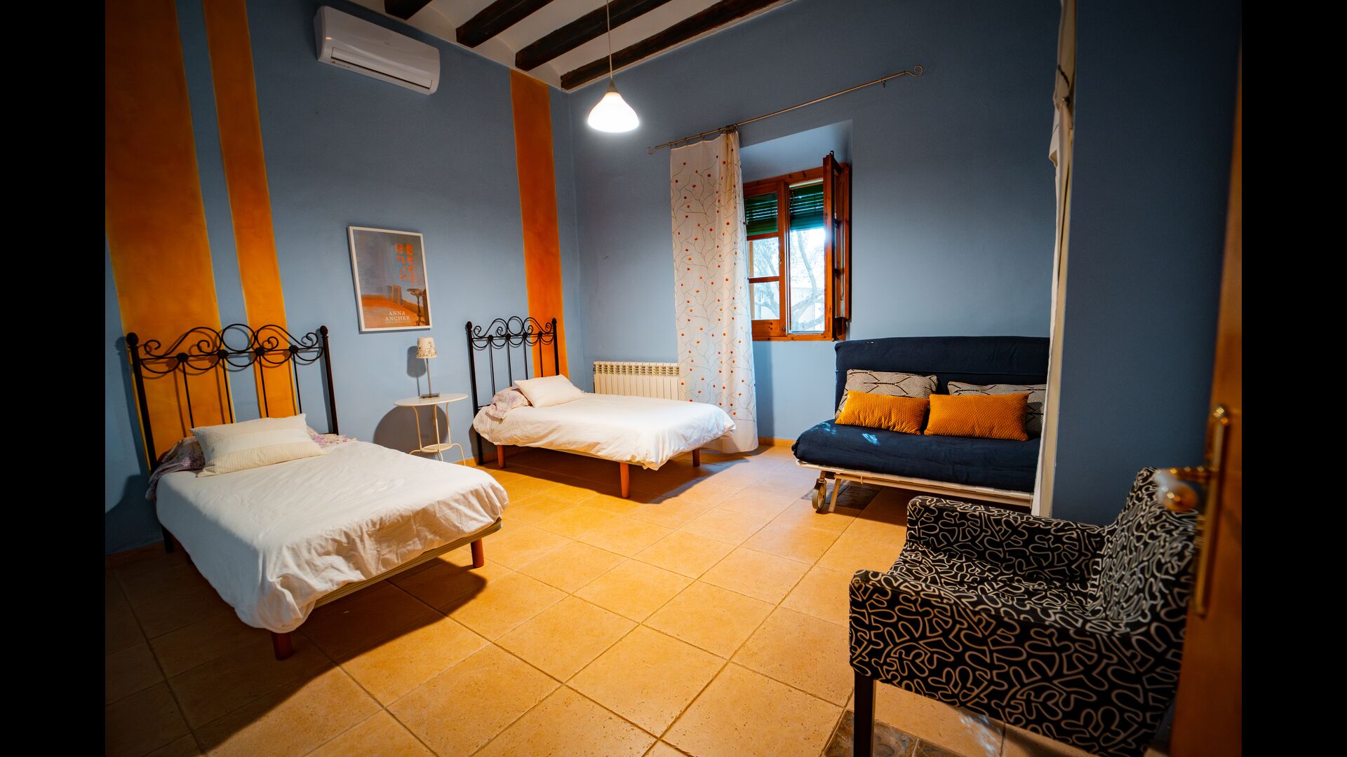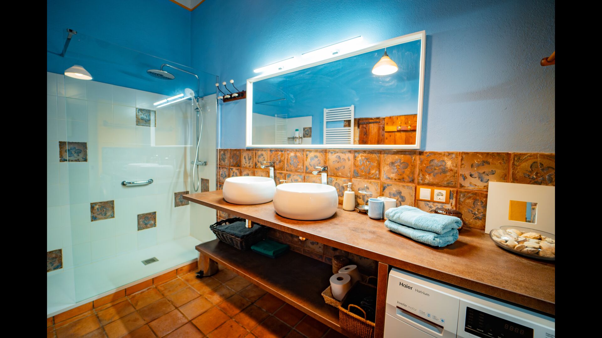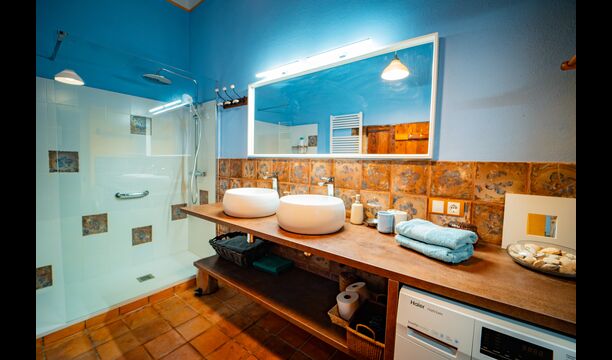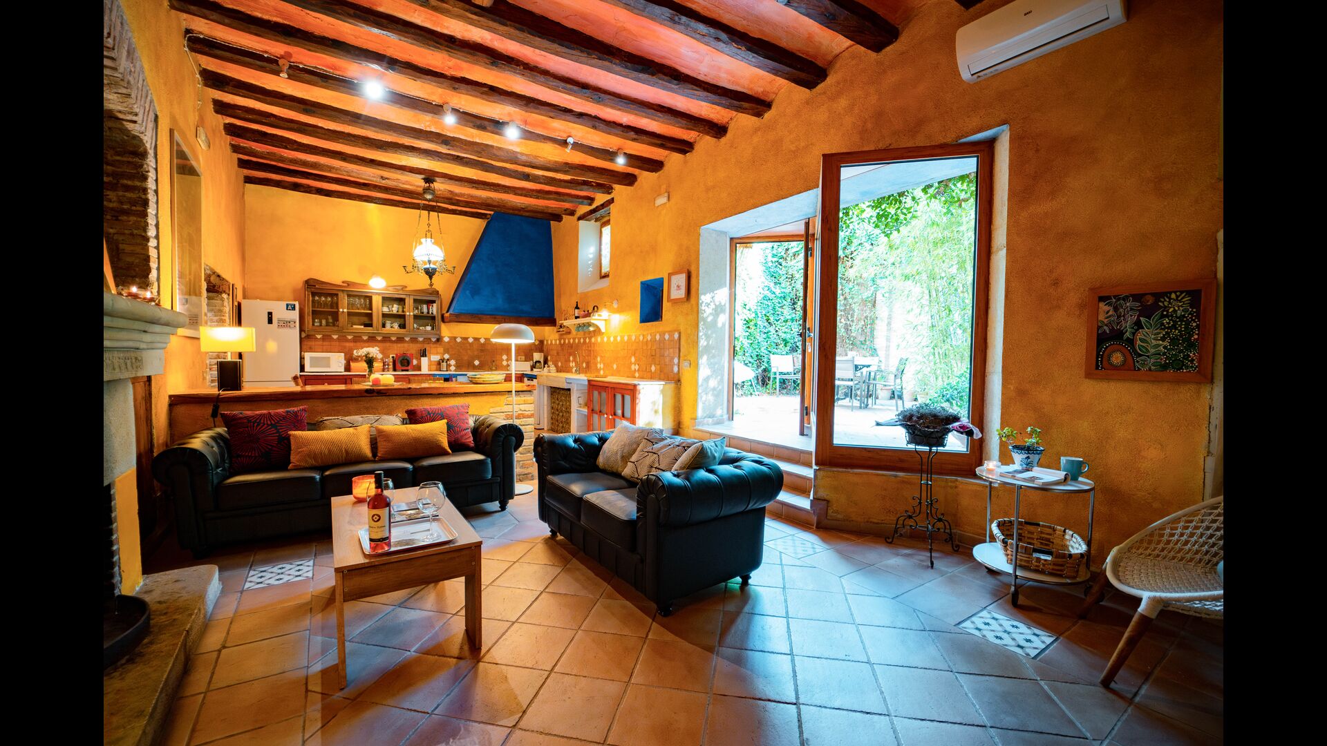 The holiday home is 110m2 and has its own entrance with a cosy terrace just outside the entrance door, providing easy access to the kitchen, in case you prefer to eat outside in the warm Catalan summer.