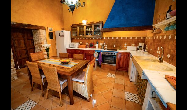 The holiday home consists of a very big common room with open kitchen, sofa corner with fireplace as well as TV and DVD, also you can access internet by the wireless internet connection. There is a beautiful dining table, with seating for everyone. From the common room, there is access bathroom with shower cabinet. In the other end of the common room, and aisle leads to the two very spacious bedrooms, one with a big double bed, the other with a double bed and two single beds. As it emerges from the photos, this house has a very authentic atmosphere with a lot of beautiful details. For your convenience, there is an additional bed, a cot and a high chair available with no extra charge.
