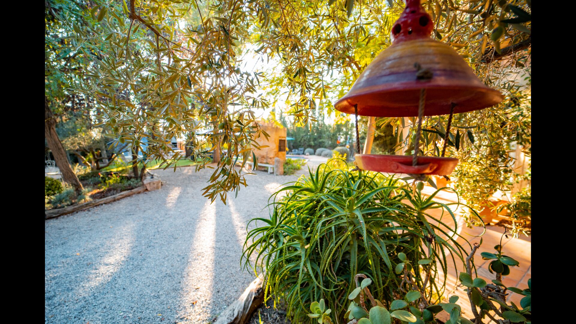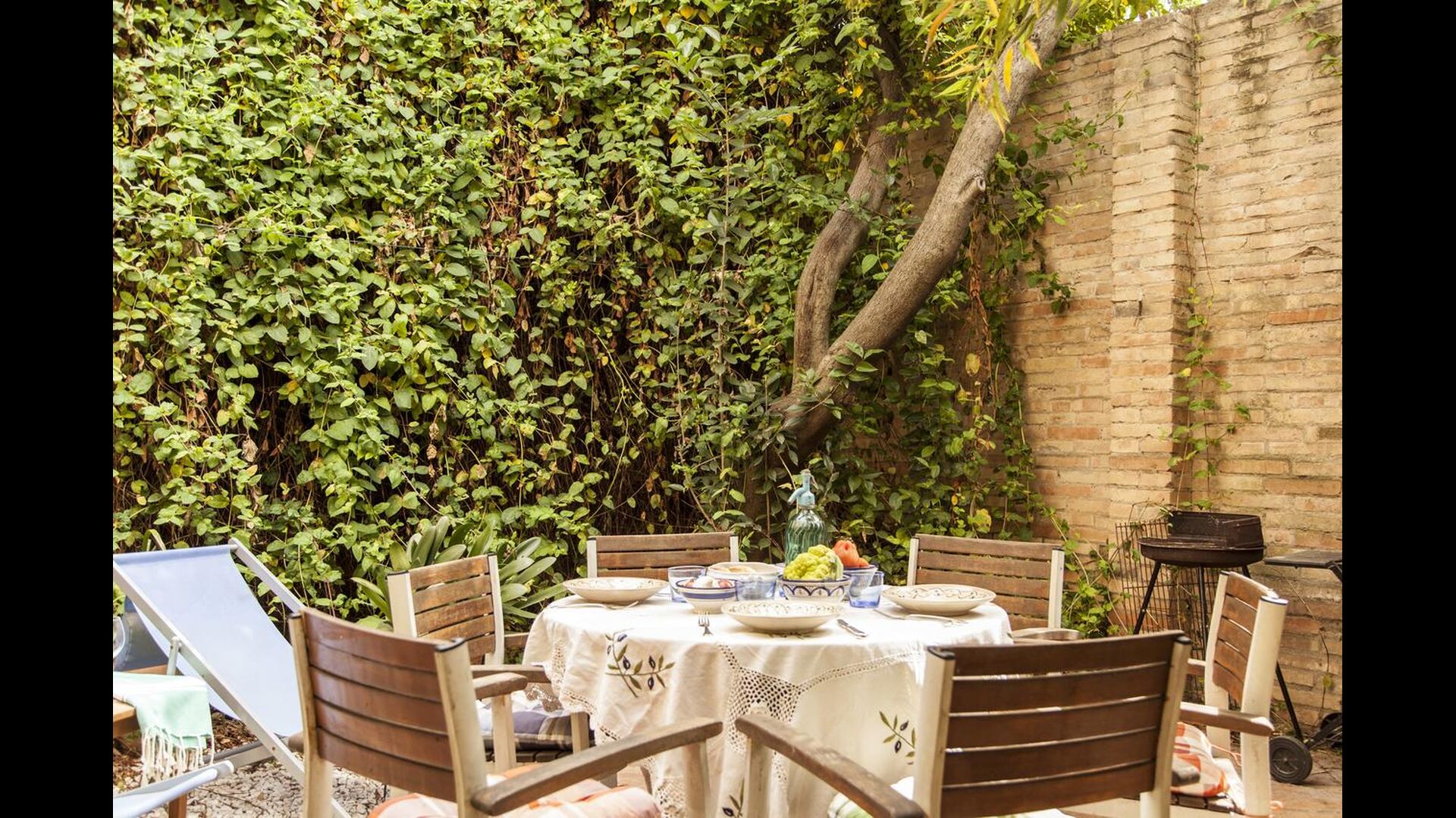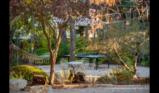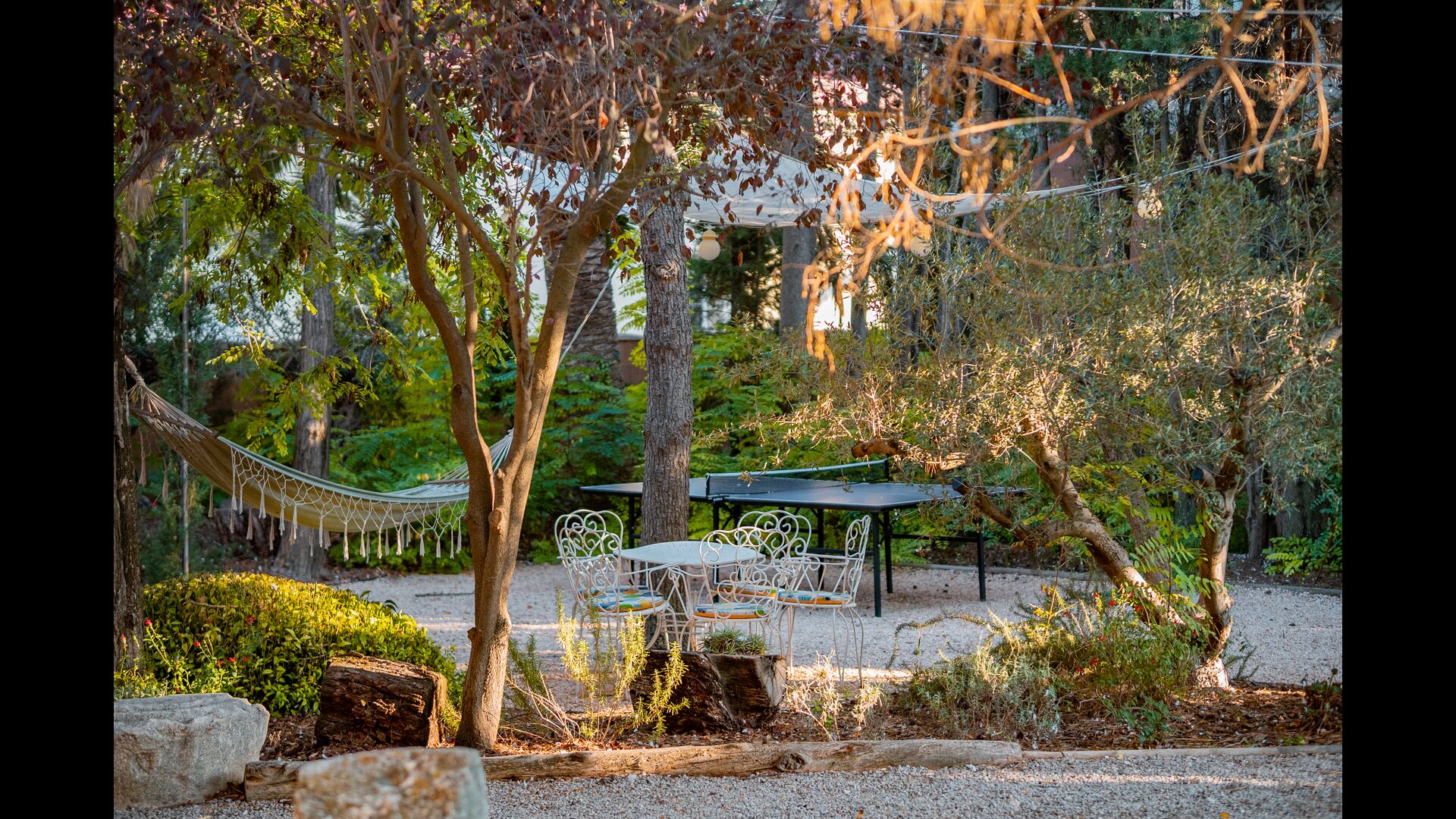 Outside, you have a terrace next to the kitchen and the large natural garden with shady corners and sunny spots, where the trees and plants are not controlled much, so some corners might seem a bit disorganized.