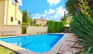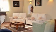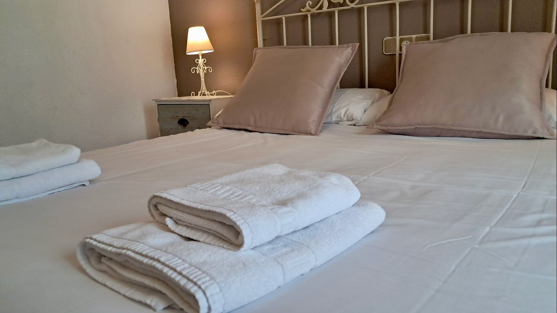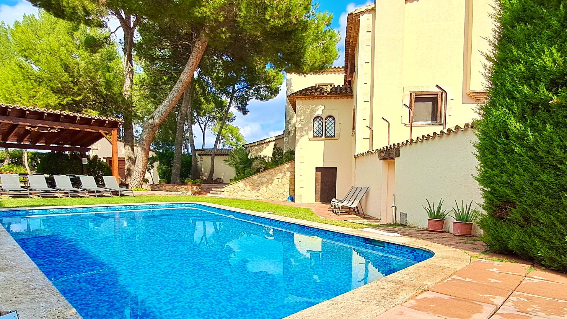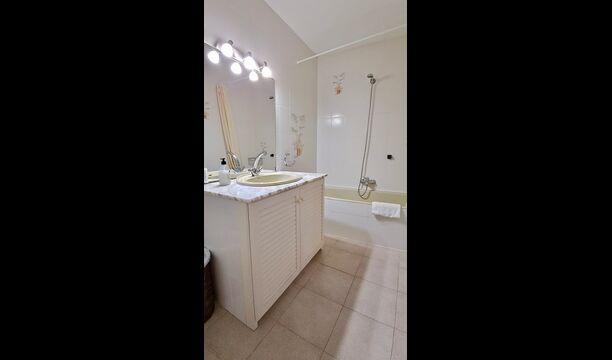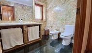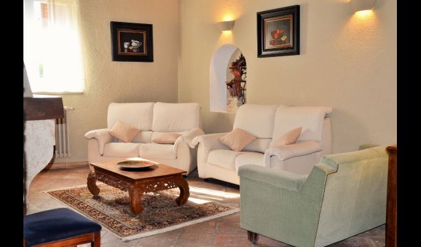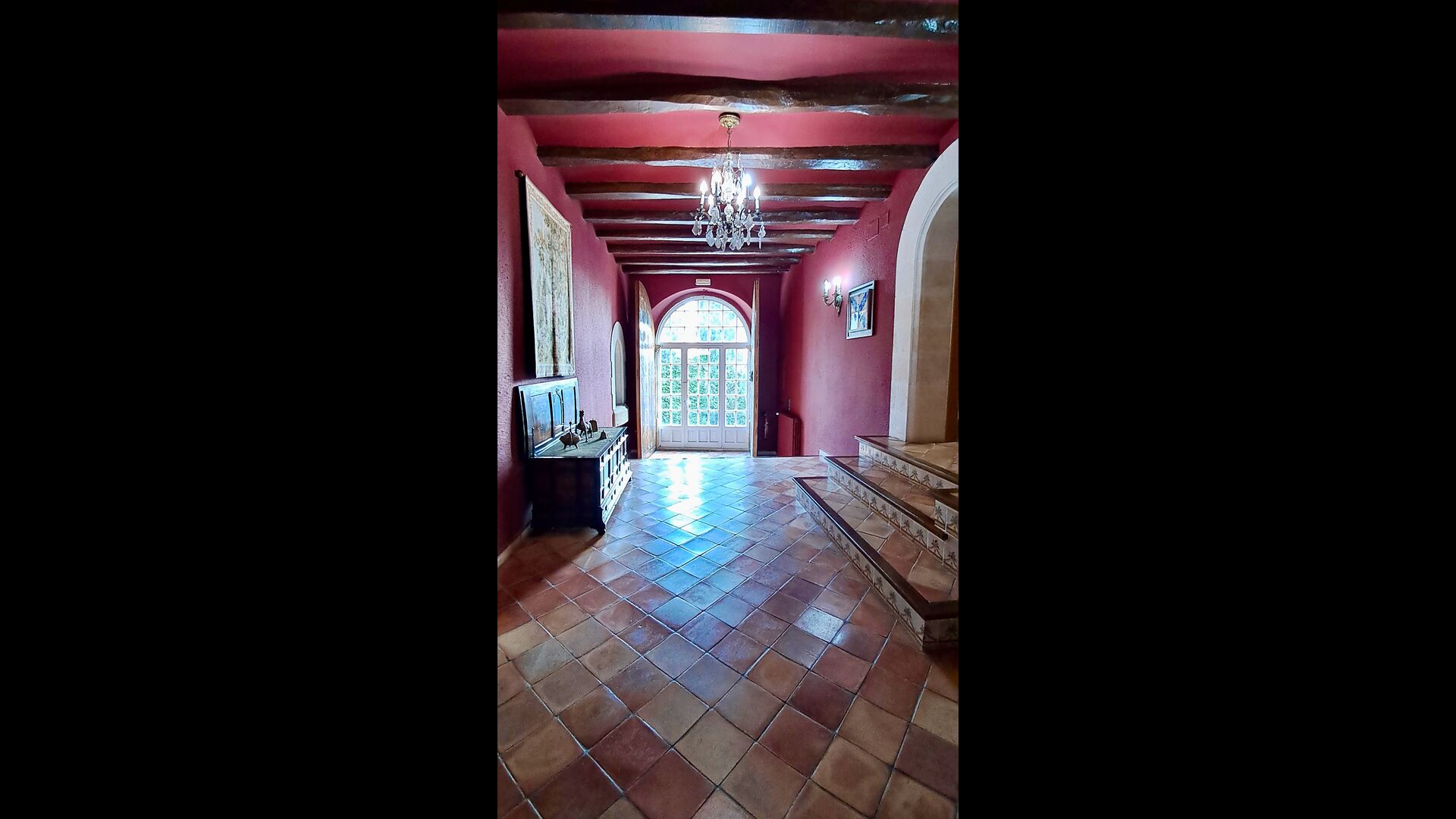 As additional facilities, two of the bedrooms have a balcony with pool view and a third bedroom has a big terrace. In addition there is on this floor a small sitting area, and 2 extra bathrooms (1 downstairs) to be shared between the rooms without bathrooms, hence in total 5 bathrooms. Finally, there is a room with washing machine, so you can do your laundry during your stay,