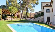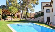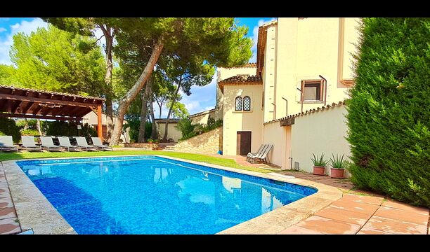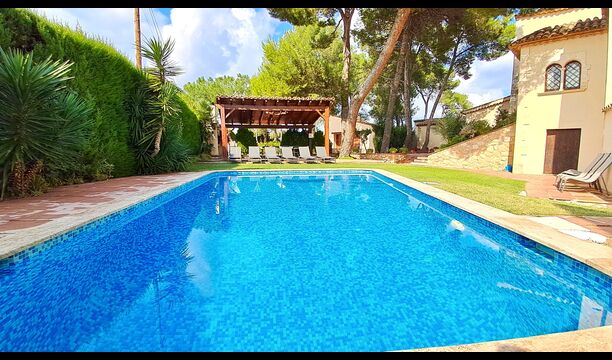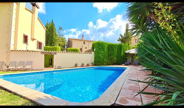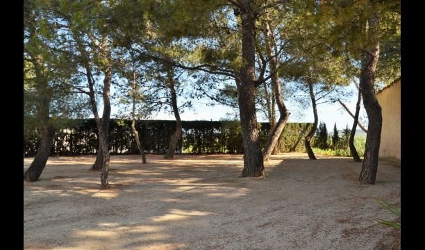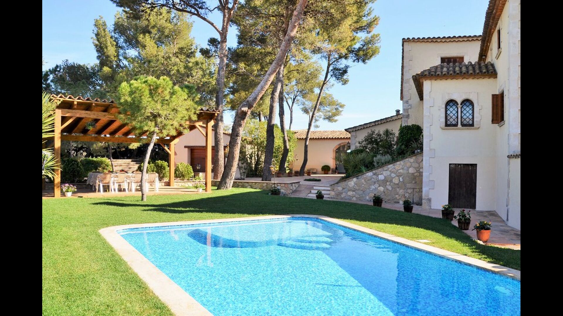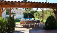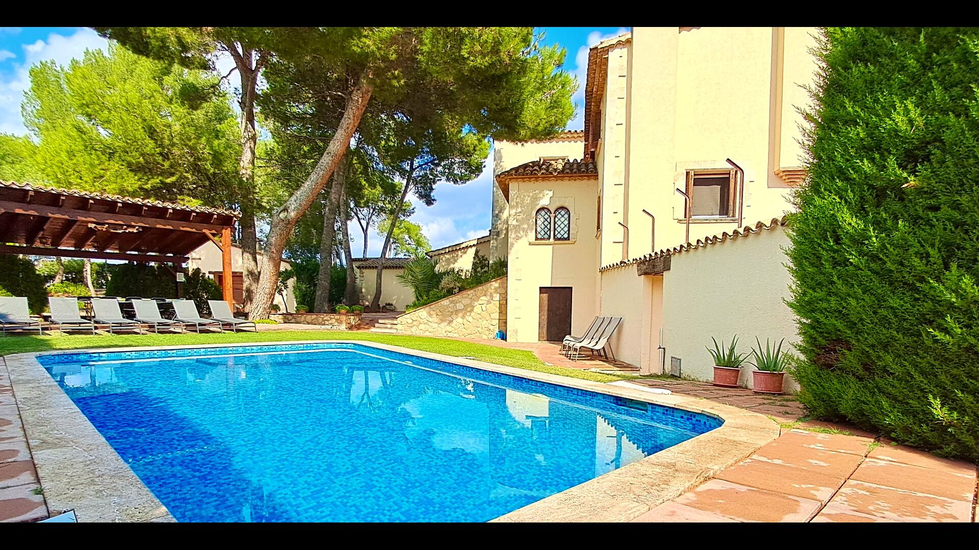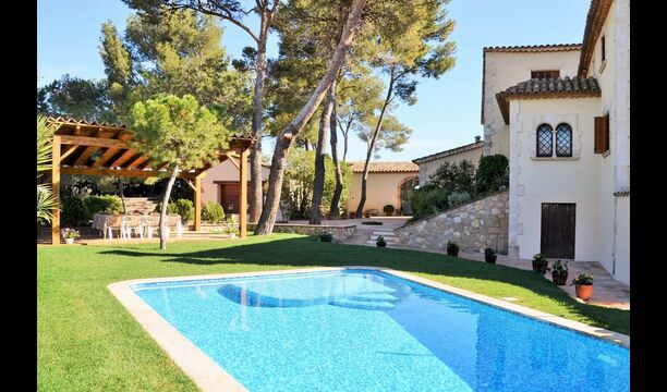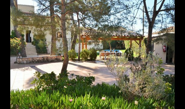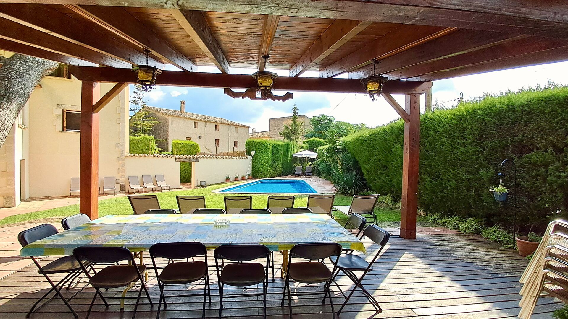 The garden on the other side of the house, is very spacious. Closest to the house, you will have the pool area with a covered terrace area. The swimming pool is 8 x 4 meters and with low part for small children. In the other end, some beautiful pine trees provide shade and excellent view over the vineyards and the MontserratMountain. A game of petanque between the trees might prove a good idea.