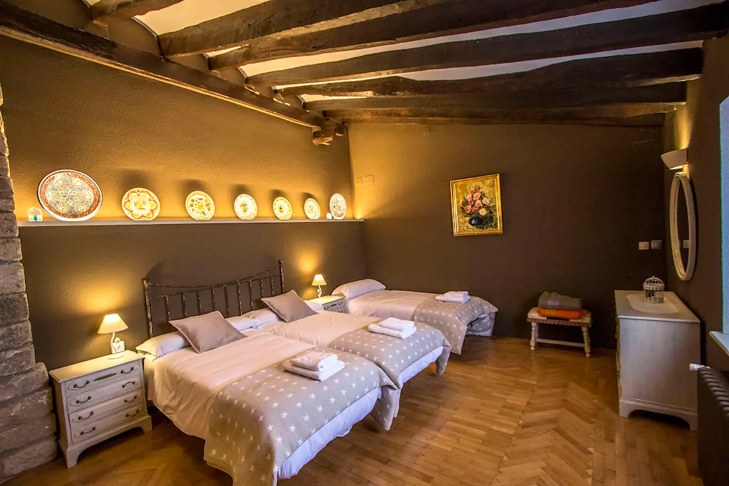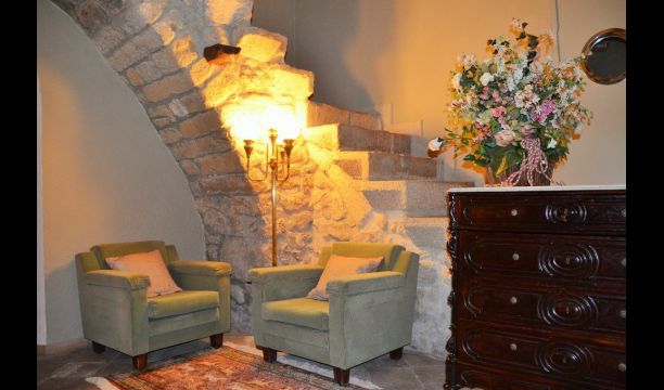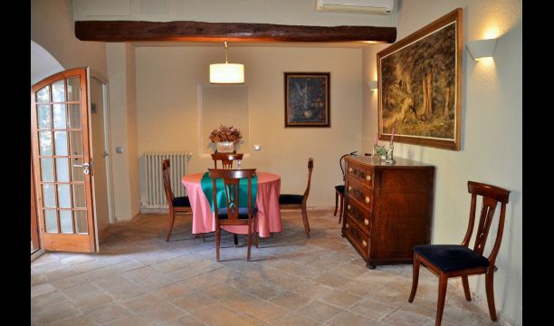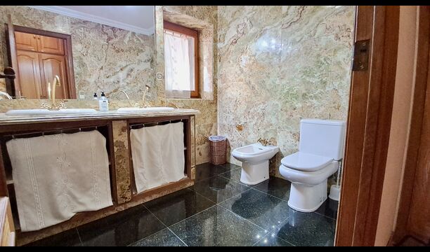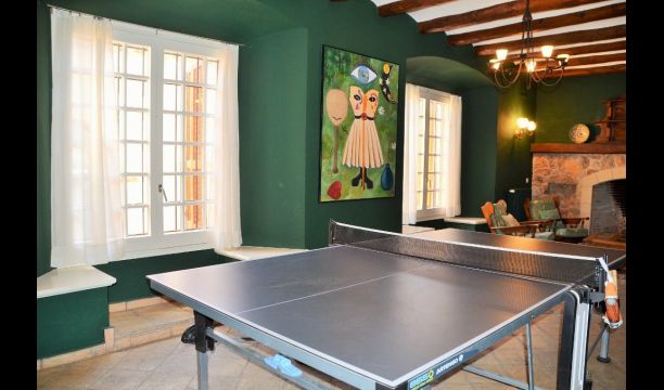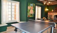 The house itself is 600 square meters, with 7 beautiful bedrooms and has room for 13+1 guests. The left part is the most antique, and where the noble people once lived. It has very high ceilings and a lot of space. The many different spaces have been used for a sofa corner with TV, a place for playing cards and a room with table tennis and armchairs in front of the fire place. The house is equipped with WIFI Internet. There are also some toilets next to the garden exit, perfect as you will probably spend a lot of time outside.