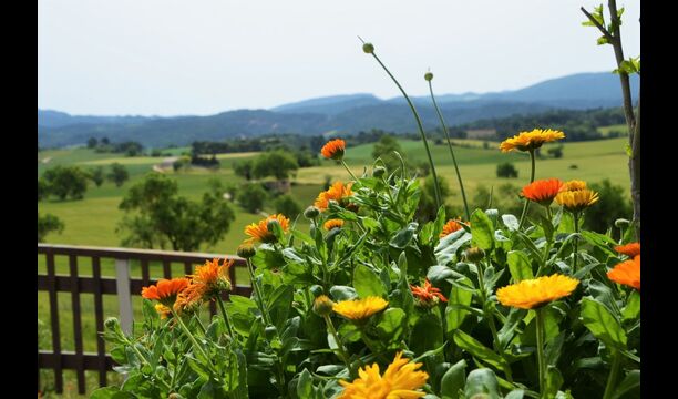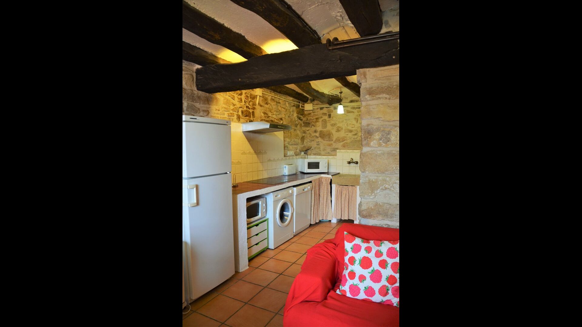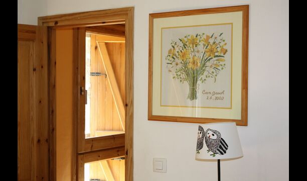 Centrally placed in the holiday home there is a large, spacious living room. The room has a large dining table, sofa area with TV and DVD and french doors overlooking the beautiful landscape. In addition, there is direct access to a terrace. There is a small kitchen with all necessary tools and facilities - including a washing machine.