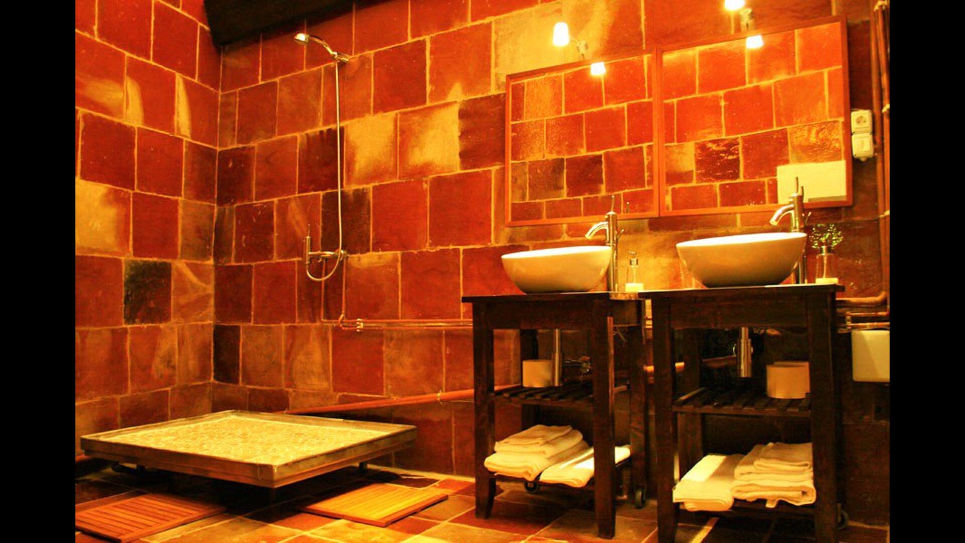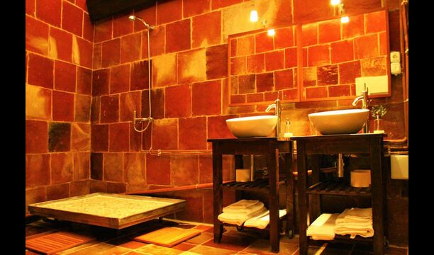 There are eight double rooms in the holiday home. They are all spaciously furnished in bright, fresh colours – for the most part with charming wooden beams in the ceilings. There are either rooms with twin beds or a double bed, so there is something for everyone in the holiday group. Likewise, there are seven bathrooms in the cottage.
